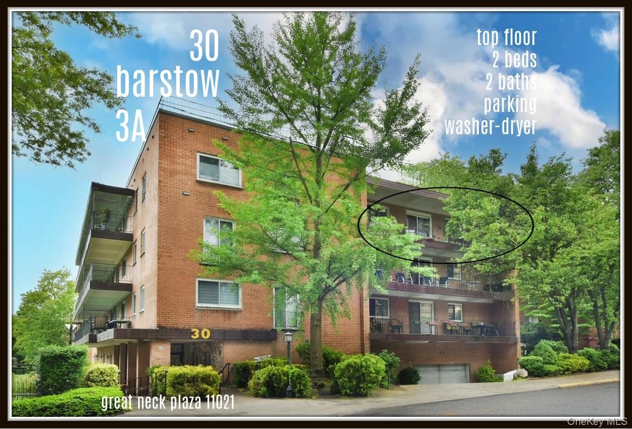 *washer-dryer in unit / top floor / new price* GREAT NECK PLAZA 11021 - "Park Point", aka 30 Barstow Road is a gem of a special place to call Home // Rarely Available this large co-op apartment #3-A has all the easy living amenities everyone asks for: TOP FLOOR - WASHER/DRYER - LARGE TERRACE - INDOOR PARKING // This stellar location, is just 1 short block to the LIRR with direct routes to PENN + Grand Central Madison // Situated Right on the pubic Park, {but quietly not overlooking it}, this well kept building has an Elevator, helpful Super + no step access: all the features desired for those who want to luxuriously reside in the center of Great Neck Plaza // 2 Beds-2 Baths // Feline Friendly // Monthly of only $1590 plus $75 indoor parking, covers most // Great Neck South SD or Optional Zone // Close to the Social + Child Care Center // Up the Street from Town which is filled with restaurants featuring International Cuisines, that deliver right to your door // Enjoy the Summer Concert Series, Parkwood Pool Complex + Stepping Stone Park complete with Boating Facilities // The Great Neck Library System is extensive featuring all types of Lectures + Classes // Plenty of Continuing Ed opportunities for advanced learning + socialization // World Class Culture in a Historic home town setting:)