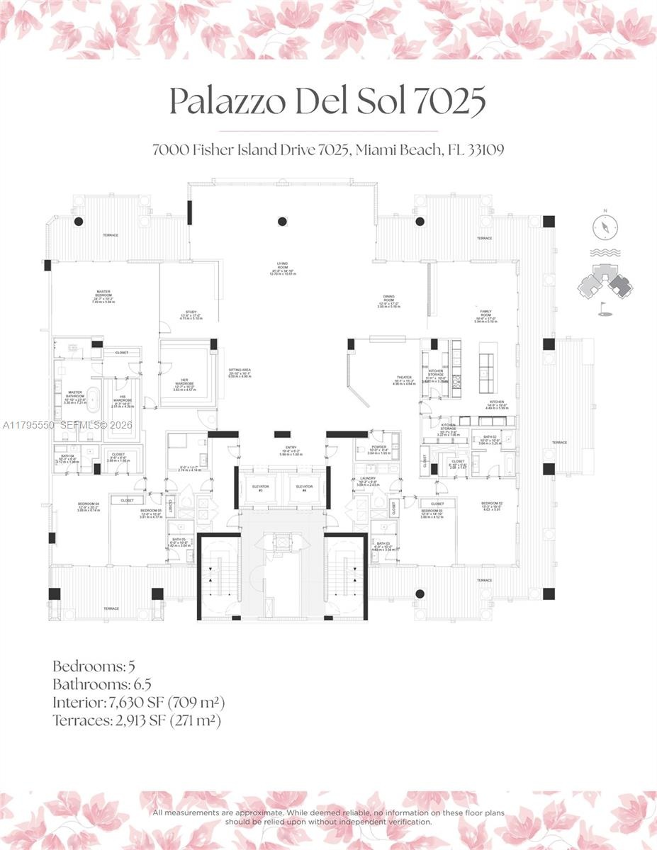 LUXURY IN MINIMALISM DESIGNED IN ELEGANT HUES OF GRAY & TAUPES IN THIS PALATIAL CORNER RESIDENCE WITH BAY VIEWS ON FISHER ISLAND’S PALAZZO DEL SOL! Oversized 7,630 SF of Pristine Interiors in an Armani Casa Vibe with Nearly 3,000 SF of Deep Wraparound Terraces. This 5 Bedroom + Study & 6.5 Bathroom Home is Exceptionally Maintained like New. 2 Private Elevators lead you to your Mammoth Bayfront Great Room with Elegant Formal Dining & Lounging Areas—Media Room with Sculptural Oak Louvers. Elegant White Boffi Kitchen showcases a stone Eat-in Island + Gaggenau Appliances & Temp-Controlled Wine Room & Pantry—adjacent Family Room with a Massive Terrace perfect for Entertaining. The Massive Primary Suite with Ocean-Facing Terrace features its own Office, Clad in Oak Millwork. Two Luxurious Custom Walk-in Closets. Primary Bathroom wrapped in Bookmatched Carrara Marble, Double Vanity Sink, & Boffi Soaking Tub & Rainshower. All Bedrooms feature En-suite Baths + Terraces with Lush Tropical Views. 2 Parking + 2 Golf Cart Spaces + Storage Unit. Palazzo Del Sol is an Award-Winning Building by Kobi Karp, Antrobus Design, & ASR Construction. Building Amenities & Services include Butler-Serviced Aperitivo Bar & Lounge, Theater, Hair & Makeup Salon, Private Massage Rooms, Business Center, Gym & Cardio Room, Kidville Playroom, Concierge, Valet, Zero-Edge Pool & Spa with Attendant.