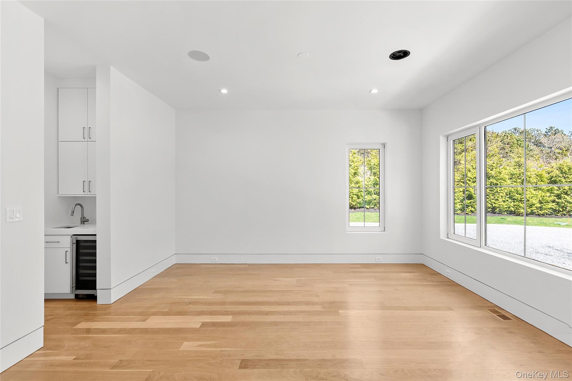 - Spare room featuring light wood finished floors, a wealth of natural light, indoor wet bar, and wine cooler