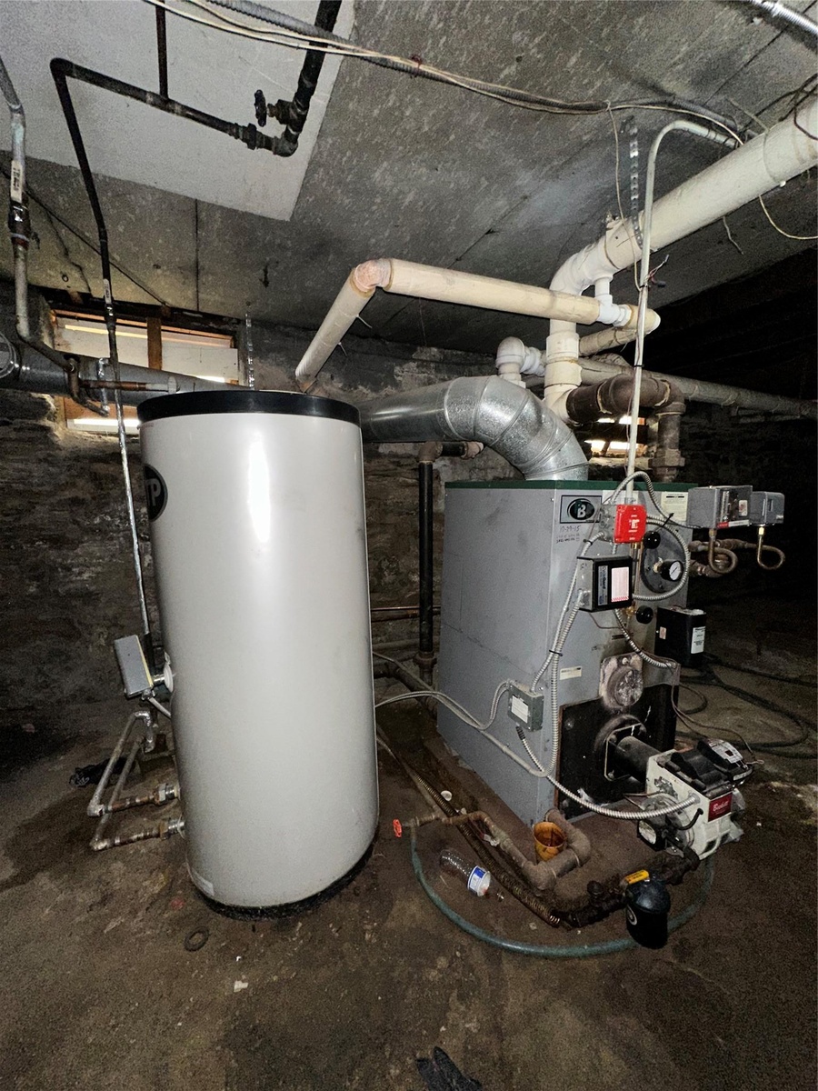 - Utility room with a heating unit and water heater