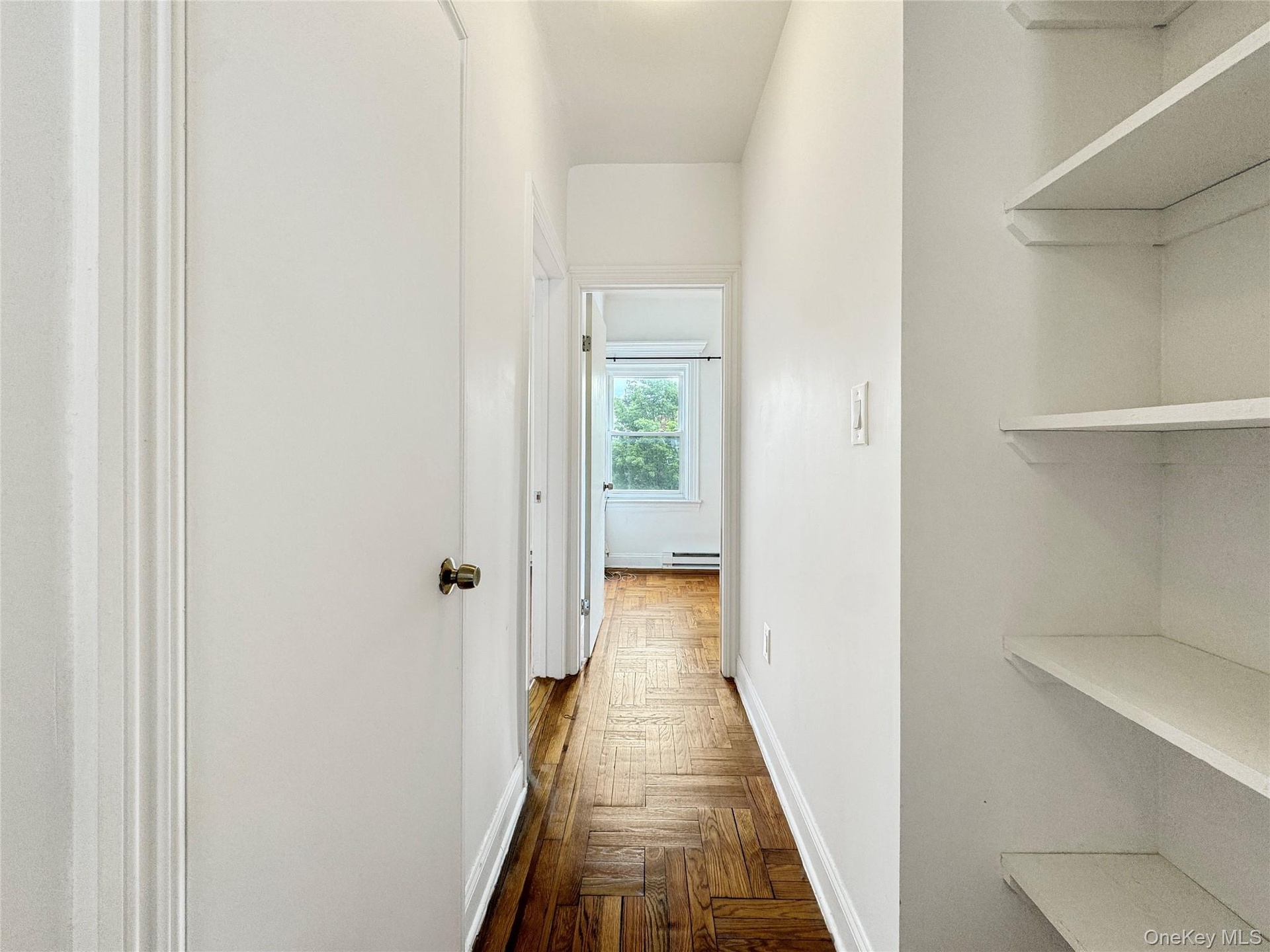 - Spare room featuring light wood-style floors, baseboards, and a baseboard radiator