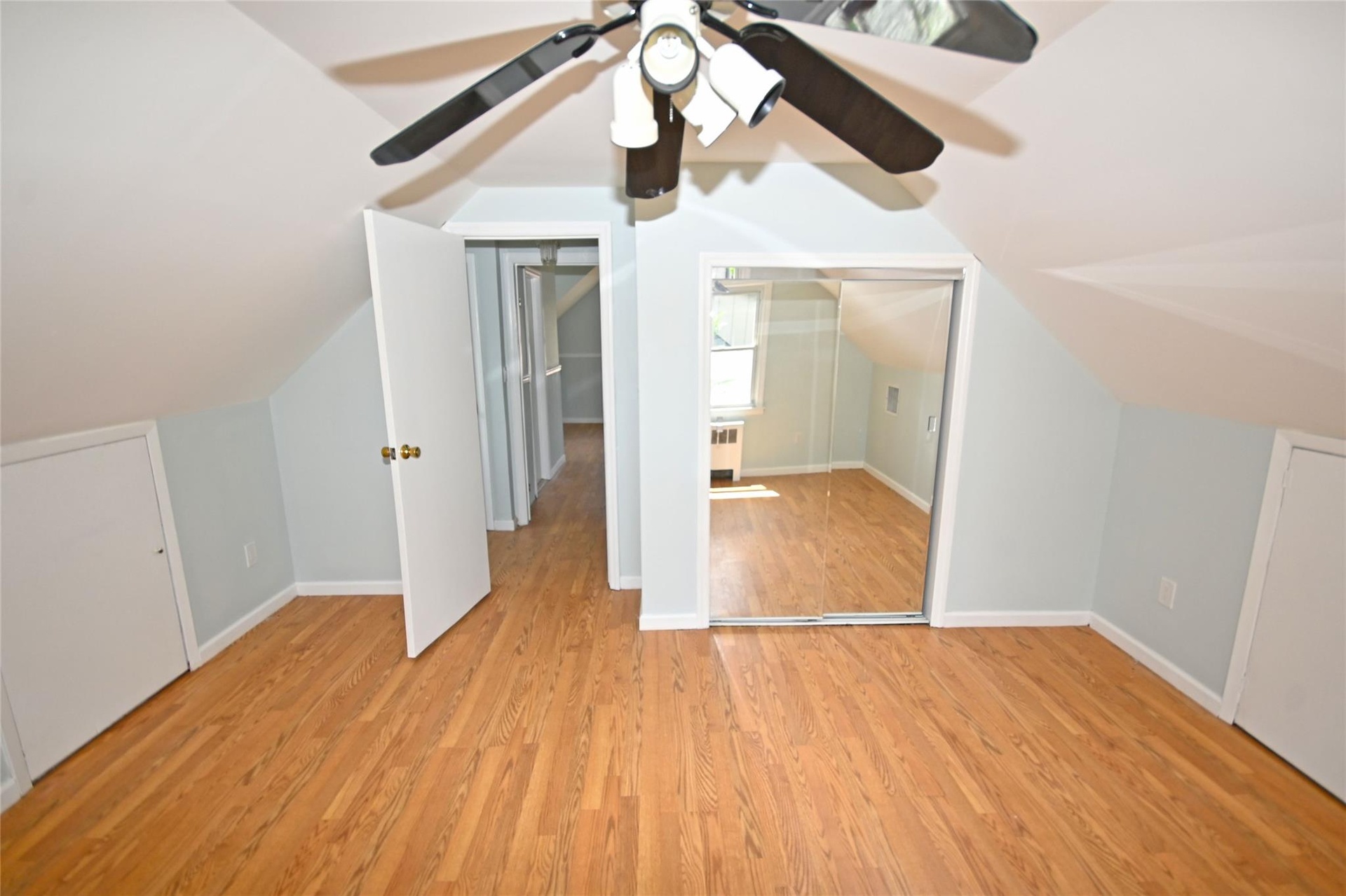 - Bonus room with radiator heating unit, wood finished floors, baseboards, and vaulted ceiling