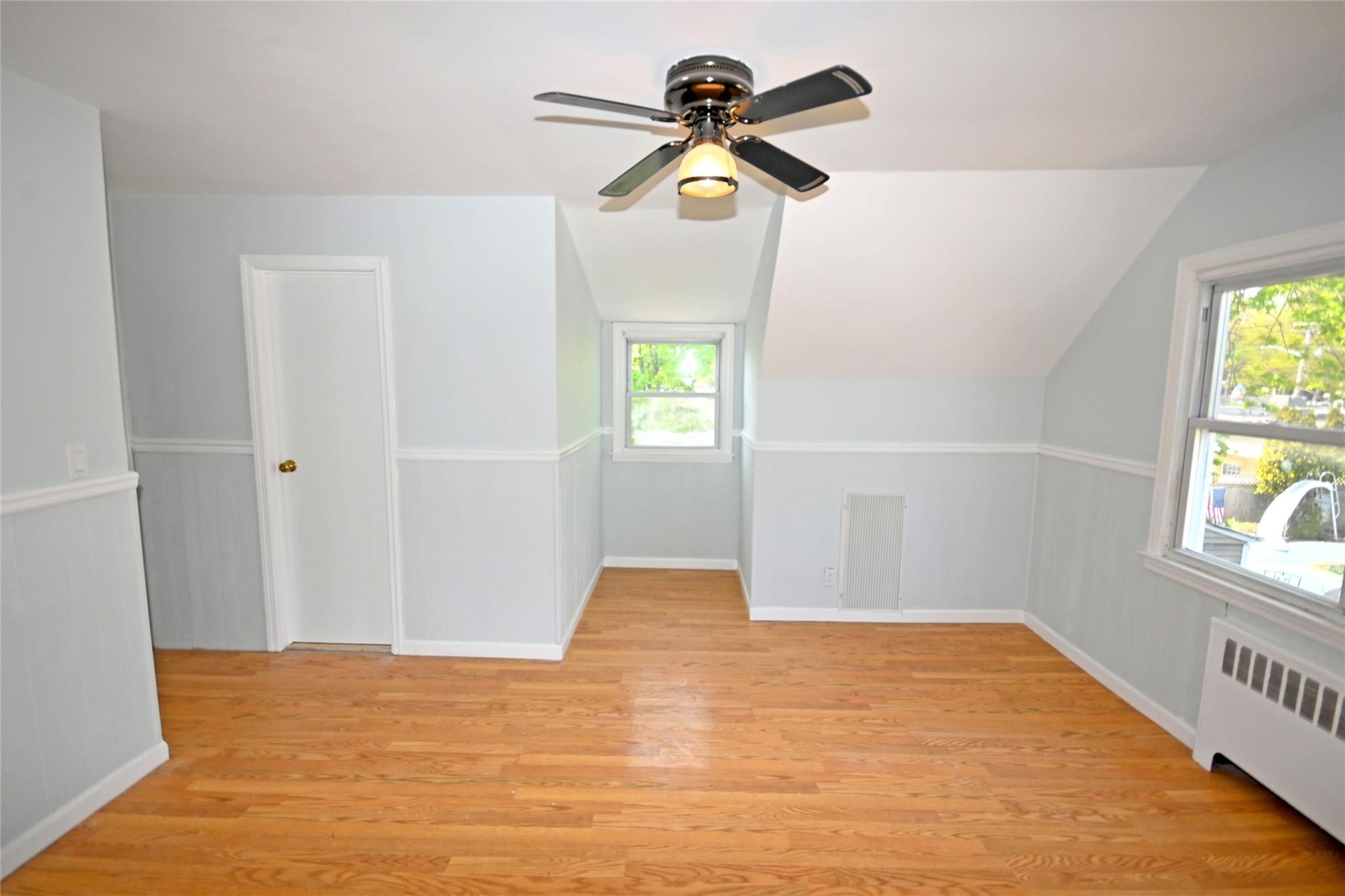 - Bonus room with radiator, plenty of natural light, light wood finished floors, and lofted ceiling