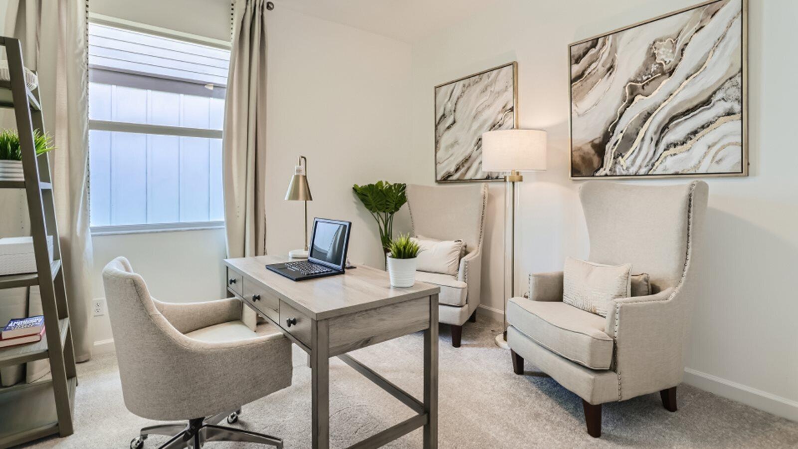 This new single-level home features a convenient bedroom and full bathroom off the foyer, leading to a versatile flex space ready to be used to meet the evolving needs of the home. The inviting open-concept layout is designed for seamless entertaining and multitasking, complete with access to an outdoor lanai. Three bedrooms are tucked away to the side of the home, including the luxe owner's suite in a private back corner, offering direct access to a spa-inspired bathroom and walk-in closet.Prices, dimensions and features may vary and are subject to change. Photos are for illustrative purposes only.