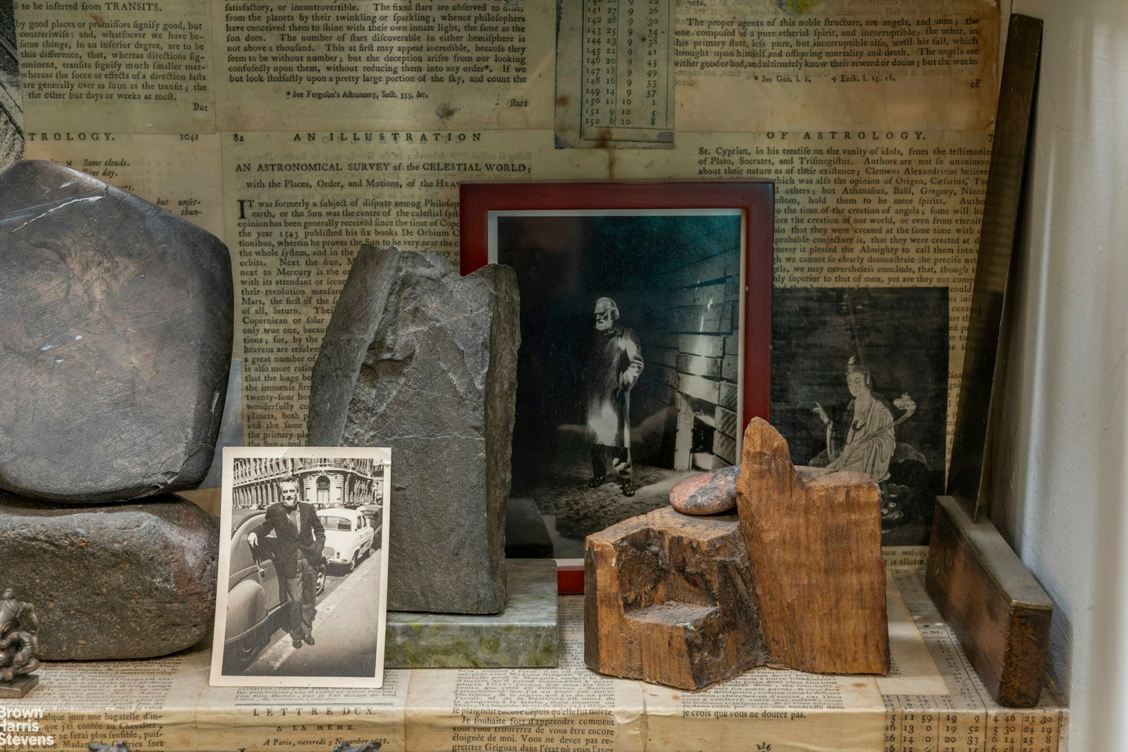 Previously owned and occupied by a world renowned abstract impressionist artist, the house is a living museum with many of the walls, doors and cabinetry covered and collaged with Japanese prints, calligraphy on rice paper, placards and other quirky drawings and objects found in the shops and streets of Paris. A permanent part of the house, these thought provoking images provide a glimpse into the mind of an artistic genius and can either be preserved by the new owner, or donated to the artist's foundation. Beyond its artistic provenance, this unique property is primed for restoration and offers an additional 4,222 square feet of FAR allowing one to expand for a total of 7,678 square feet!