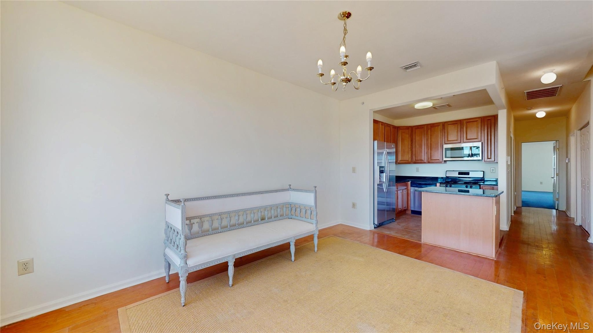 - Living room featuring a chandelier and light wood-style floors