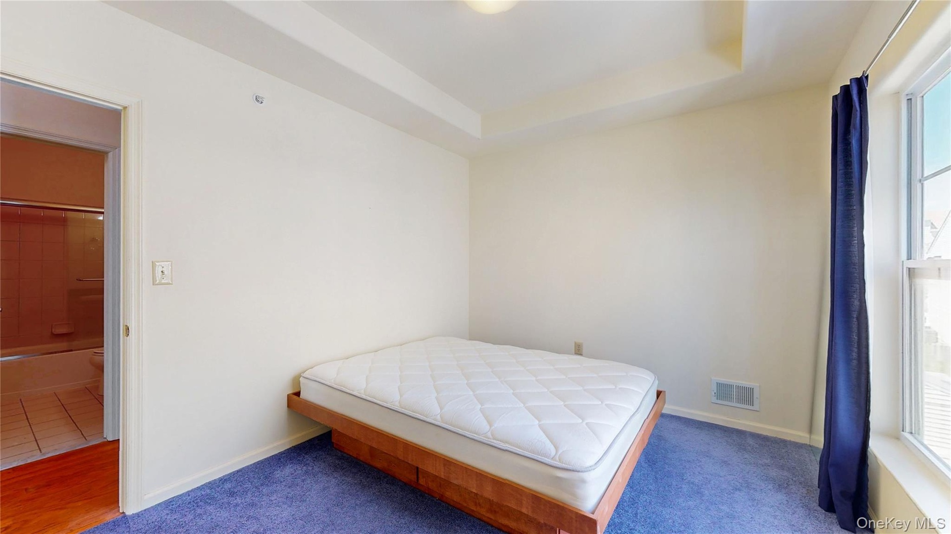 - Bedroom with a raised ceiling, carpet, and baseboards