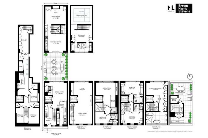 This approximately 20-foot-wide, 6,000-square-foot residence is crowned by a new landscaped roof deck with open city views and anchored by a tranquil courtyard. As part of a comprehensive renovation, a skylit cellar gallery now connects the two structures, while an interior elevator ensures seamless access across all levels. Exceptional horizontal and vertical flow-including a dramatic double-height living room with a sculptural fireplace-creates a rare sense of privacy and flexibility. The restored fa ade is clad in stucco, scored to recall limestone in harmony with the surrounding Treadwell Farm Historic District. Oversized casement windows, and multiple skylights bring sunlight and softness to this thoughtfully modernized home.