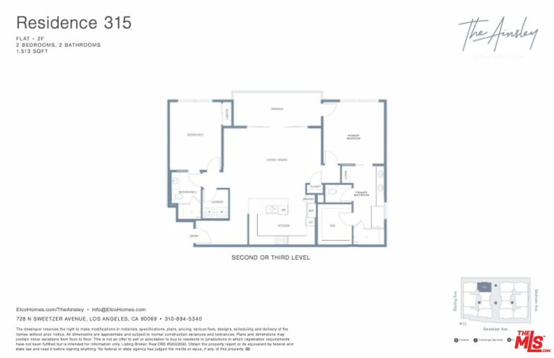 DescriptionWelcome to The Ainsley, nestled on a highly walkable, tree-lined street just steps from the best of Melrose. Residence 315 is a 2-bedroom, 2-bath single-level home offering 1,513 SF of refined living space, with an open floor plan that seamlessly connects the gourmet kitchen to the spacious great room. Premium interior finishes include Sub-Zero and Wolf appliances, Gessi plumbing fixtures, a Hydro Systems soaking tub, and Snaidero Italian cabinetry, all complete with Caesarstone countertops throughout. Additional features include an entry corridor, dedicated laundry room, outdoor terrace accessible from both the living room and primary bedroom, and two side-by-side parking spaces in the subterranean garage. The primary bedroom features an expansive walk-in closet and dual vanity. Community amenities include on-site concierge services, a resident lounge, fitness center, yoga and training rooms, and more.Amenities- Balcony