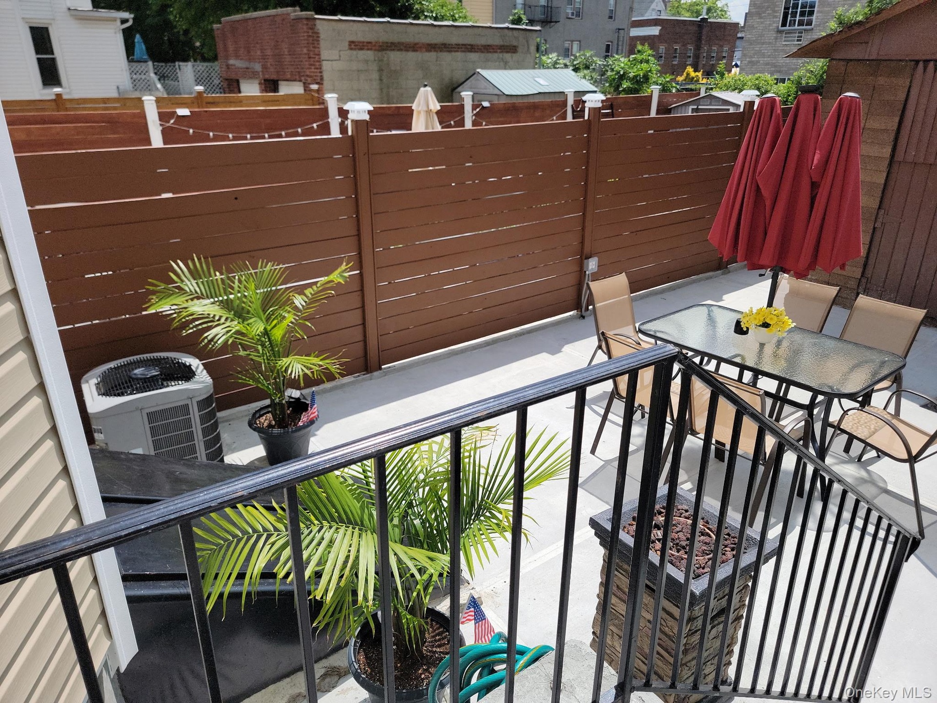 - View of patio / terrace featuring entry steps, cooling unit, and outdoor dining area