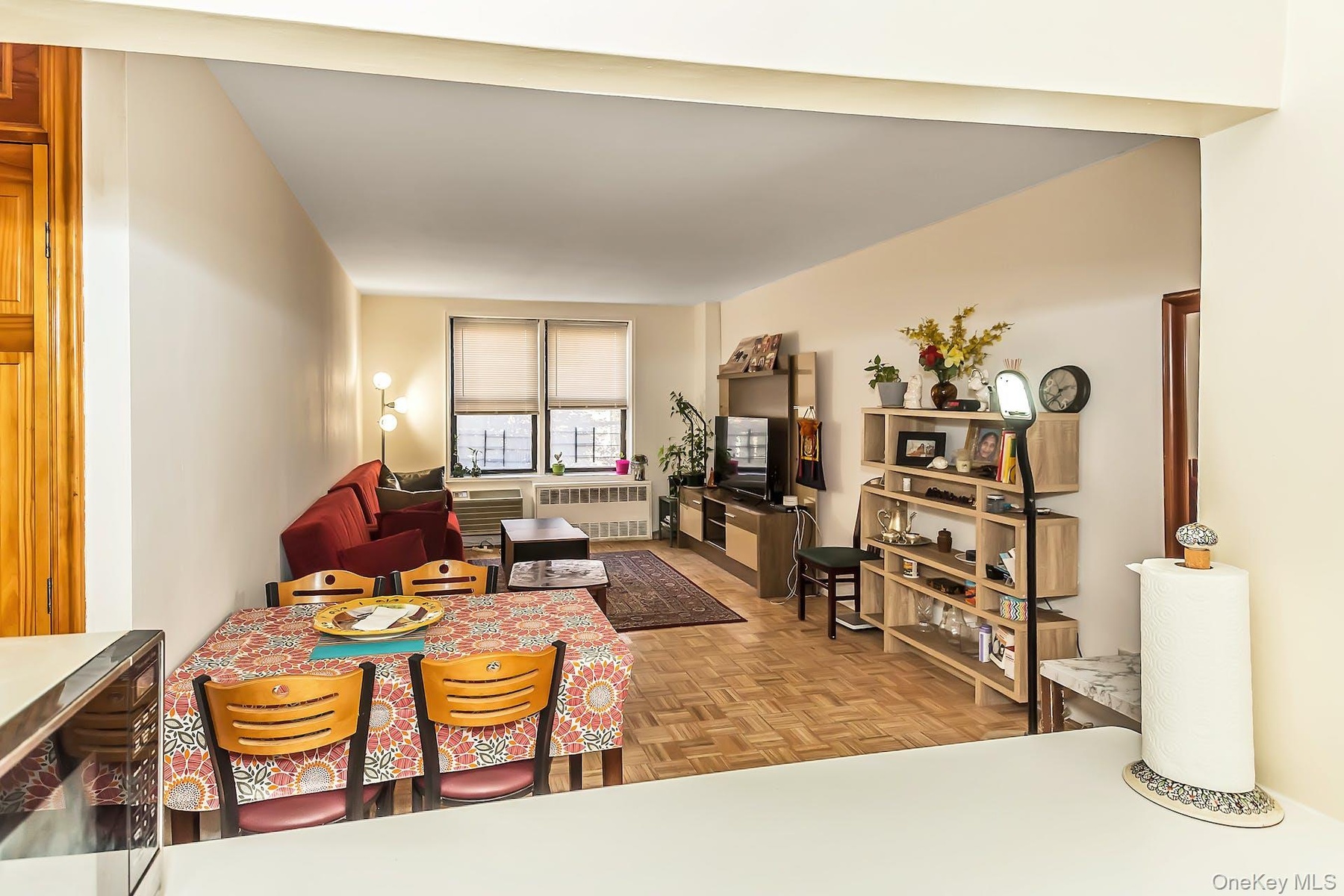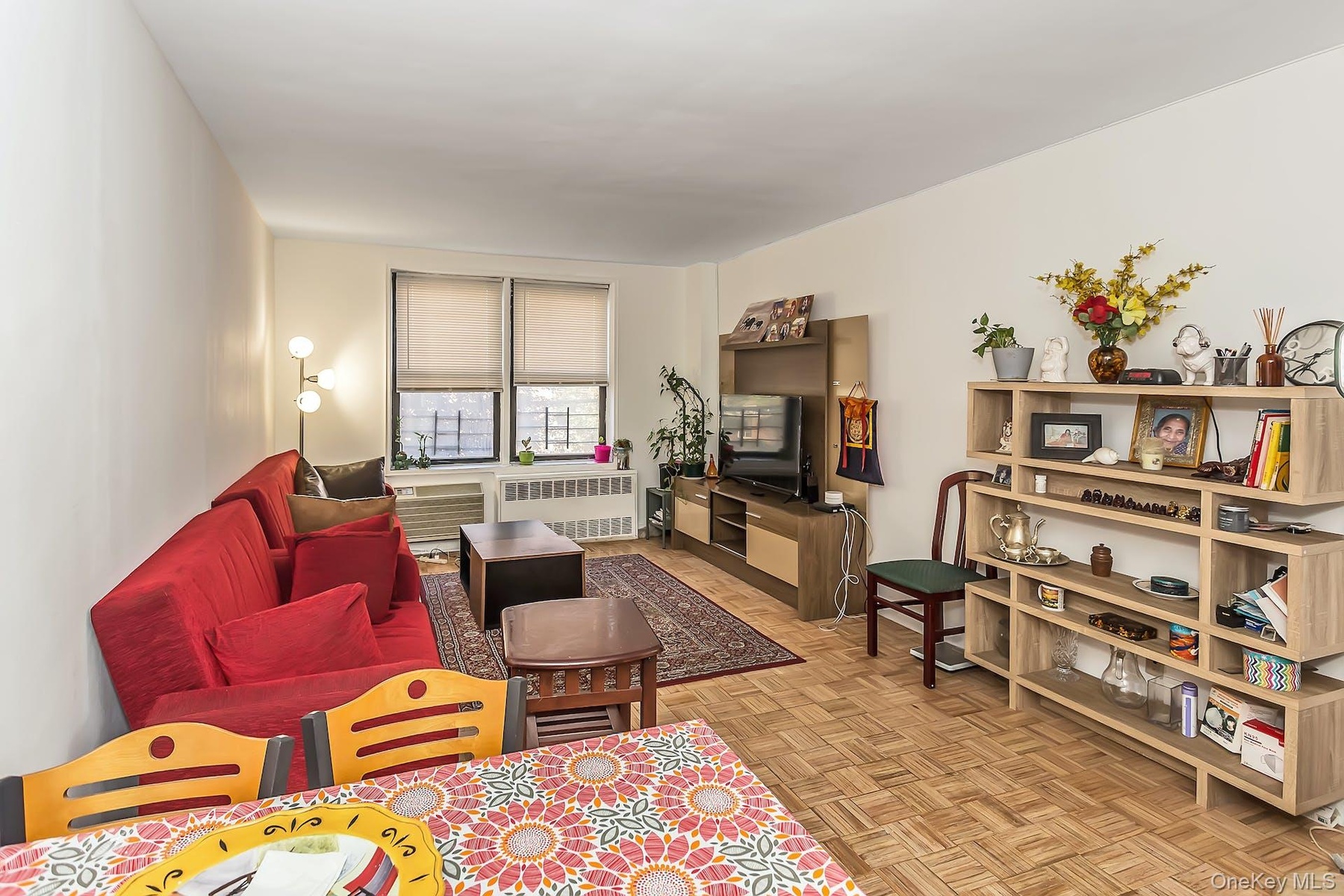 Largest 2 Bedroom in the Andrew Jackson! Luxurious Building with a . 24 Hour Manned Security, 24-hour surveillance cameras, outdoor pool with a lifeguard, Laundry on each floor, storage, in-door garage (waiting list) parking, Parquet floors, renovated kitchen, quartz counters in the kitchen, Updated Bath, Close To Shopping, Restaurants, Subway E, F, M, R, 7 Trains., Excellent Condition!