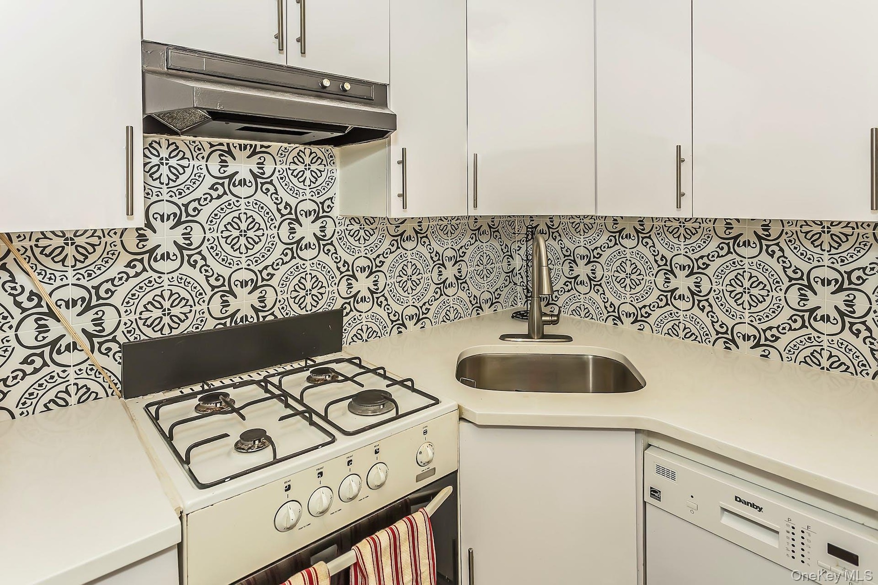 - Kitchen with dishwasher, gas stove, under cabinet range hood, a sink, and light countertops