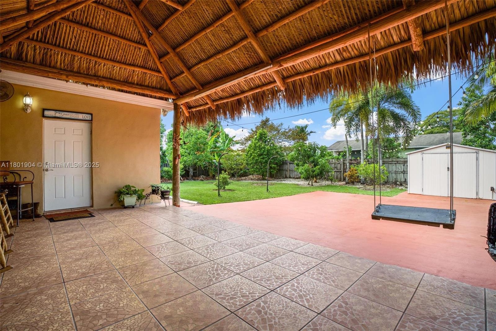 Step into this beautifully renovated, turnkey 3-bedroom, 3-bathroom home designed for comfort and peace of mind, with two master bedrooms. Featuring an newly installed roof, hurricane impact windows, and new appliances, every detail has been thoughtfully upgraded. Cook in style in the modern granite kitchen and unwind in sleek, brand-new modern bathrooms. Outside, enjoy a spacious fenced yard filled with lush mature fruit trees in both the front and back. A welcoming tiki provides much needed shade and highlights the perfect entertaining space. Build your dream pool with space to spare. For extra comfort and extra security, a backyard shed is included as well as a security camera system. Move right into this turnkey oasis and immediately enjoy your new home!
