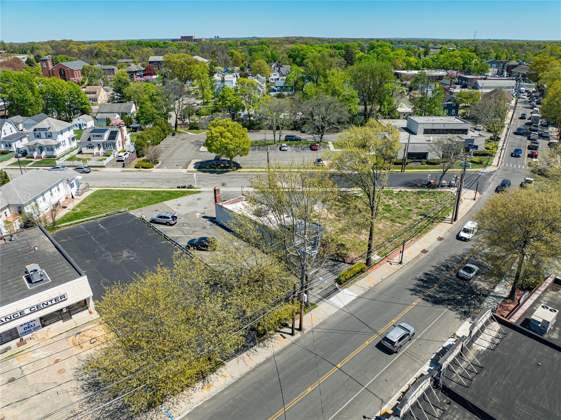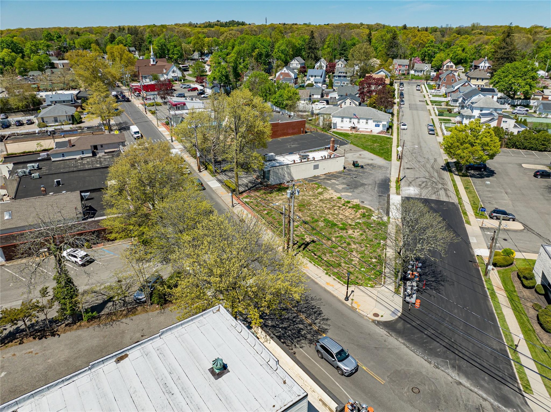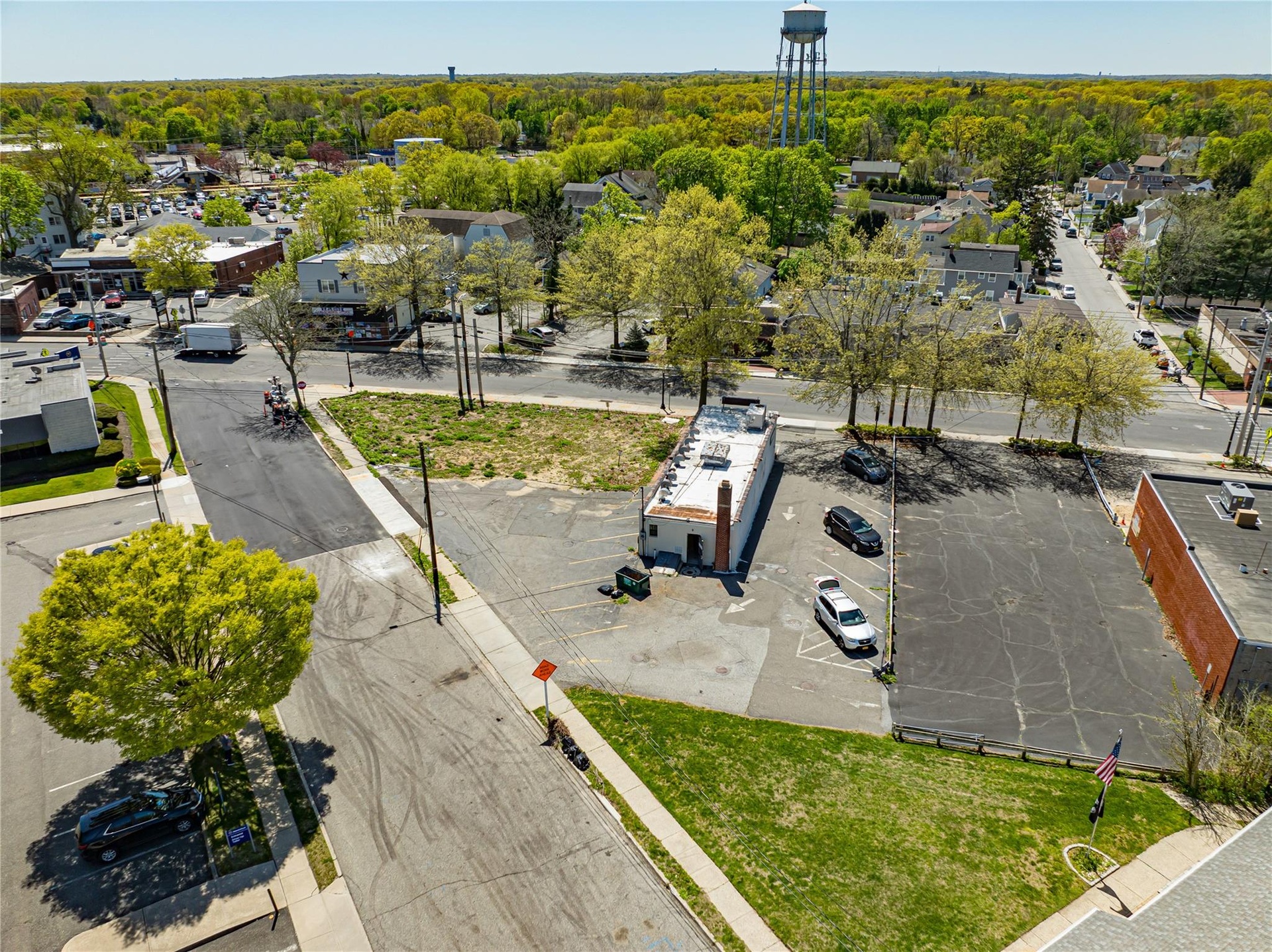 Property consists of 2 areas spot for building and seperate parking lot along side of laundromat for parking located on Main street .