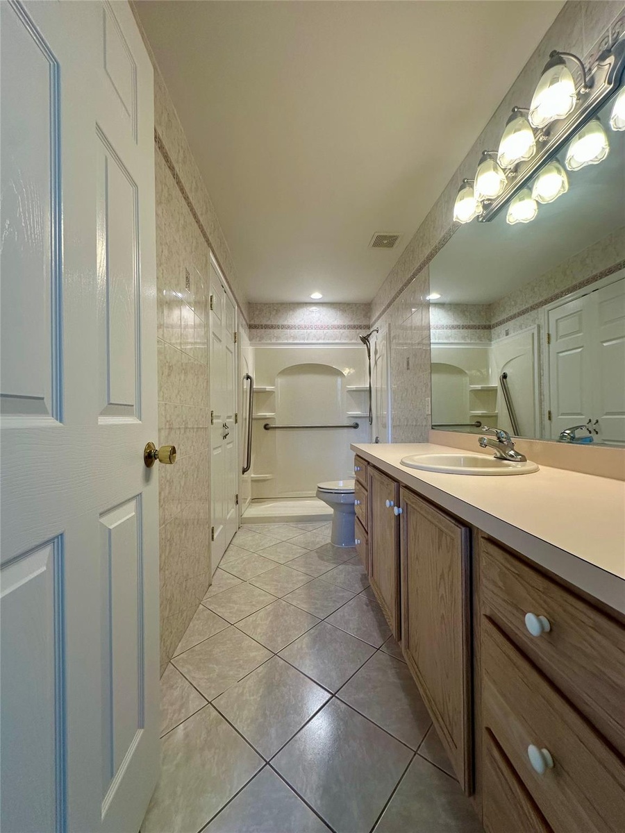 - Primary bedroom featuring walk in closet, and large primary bathroom.