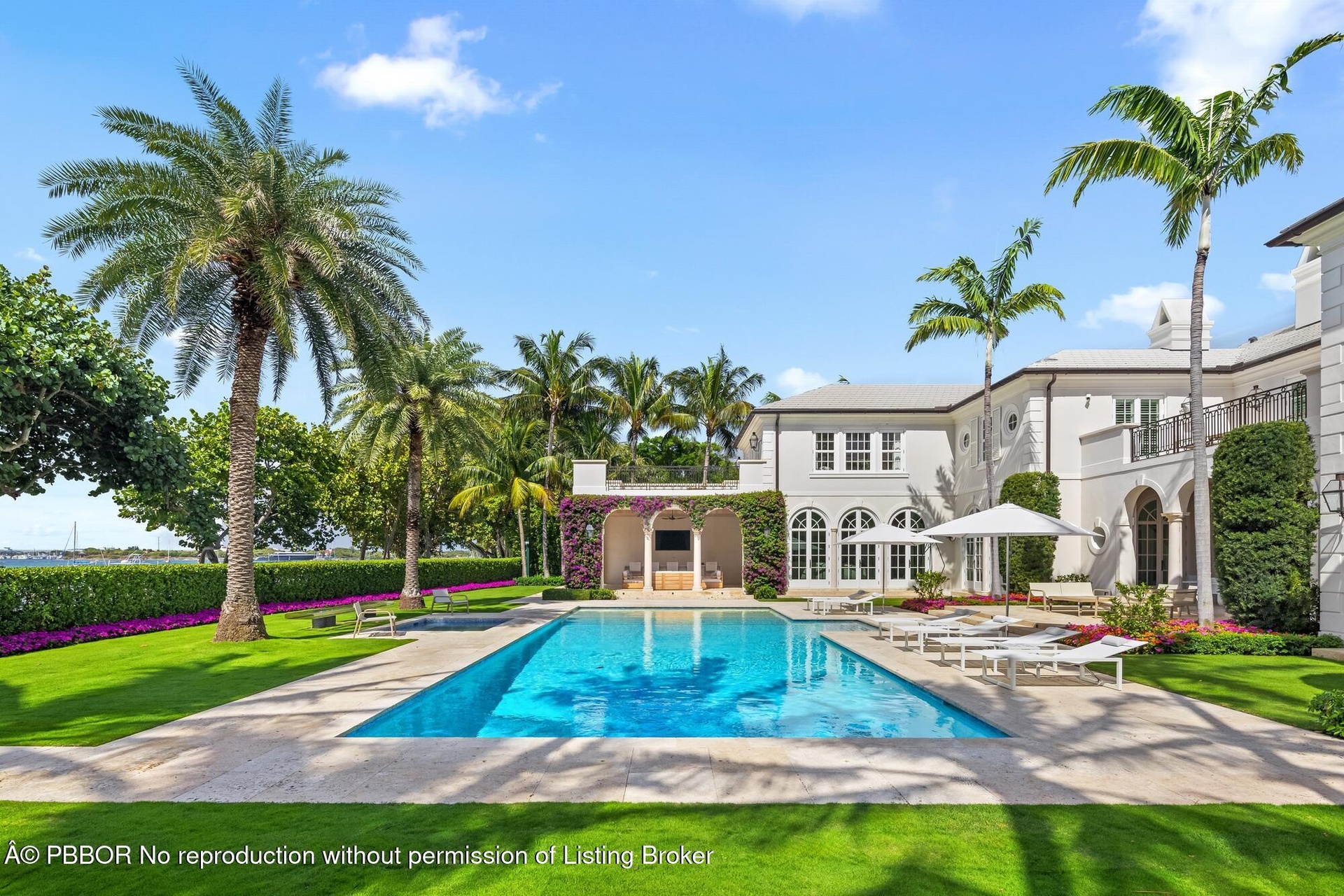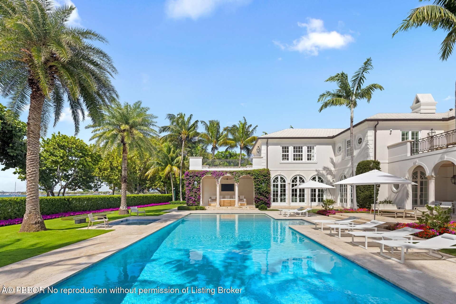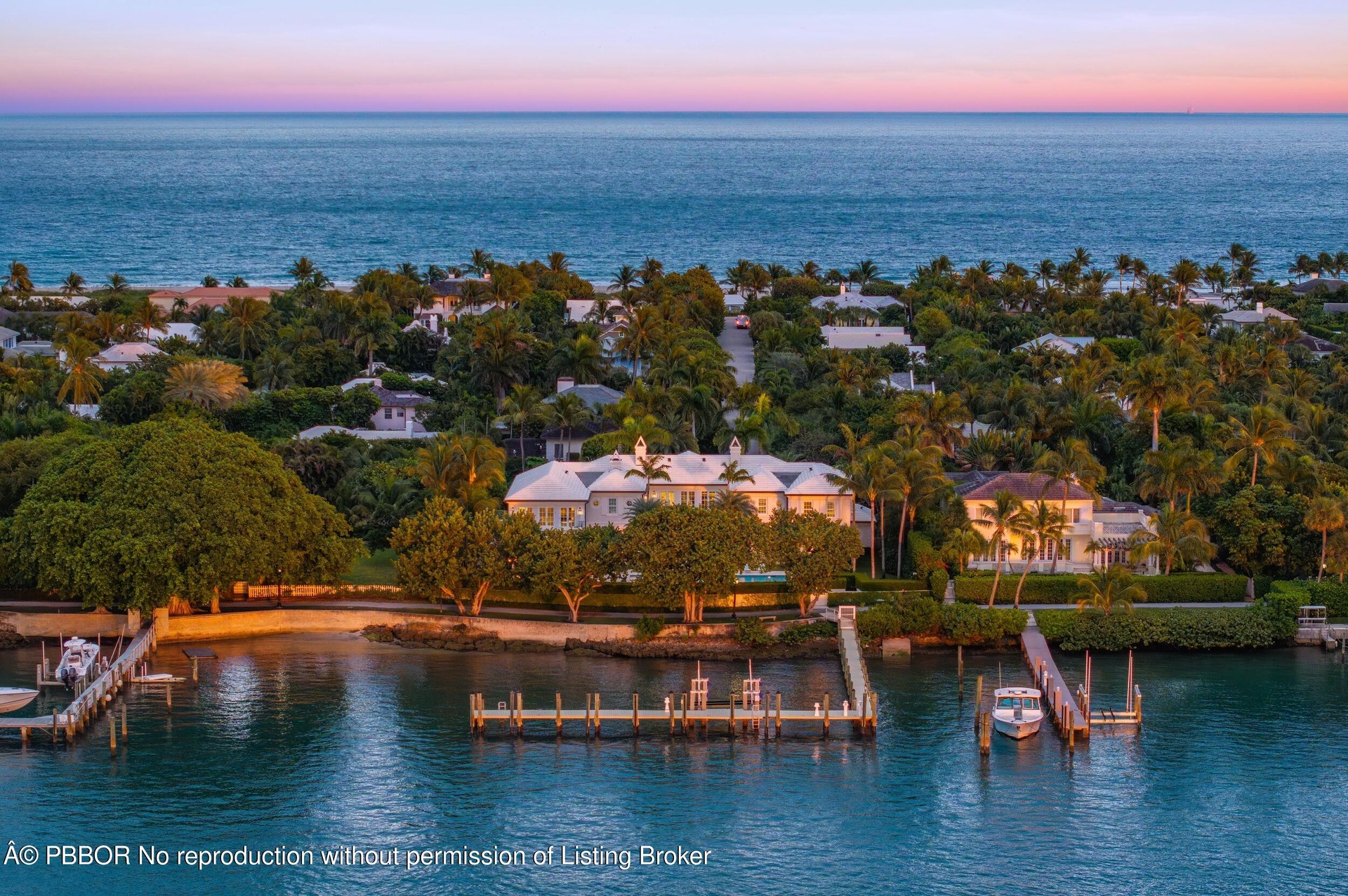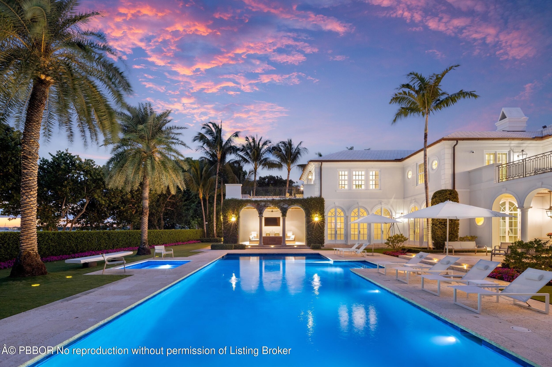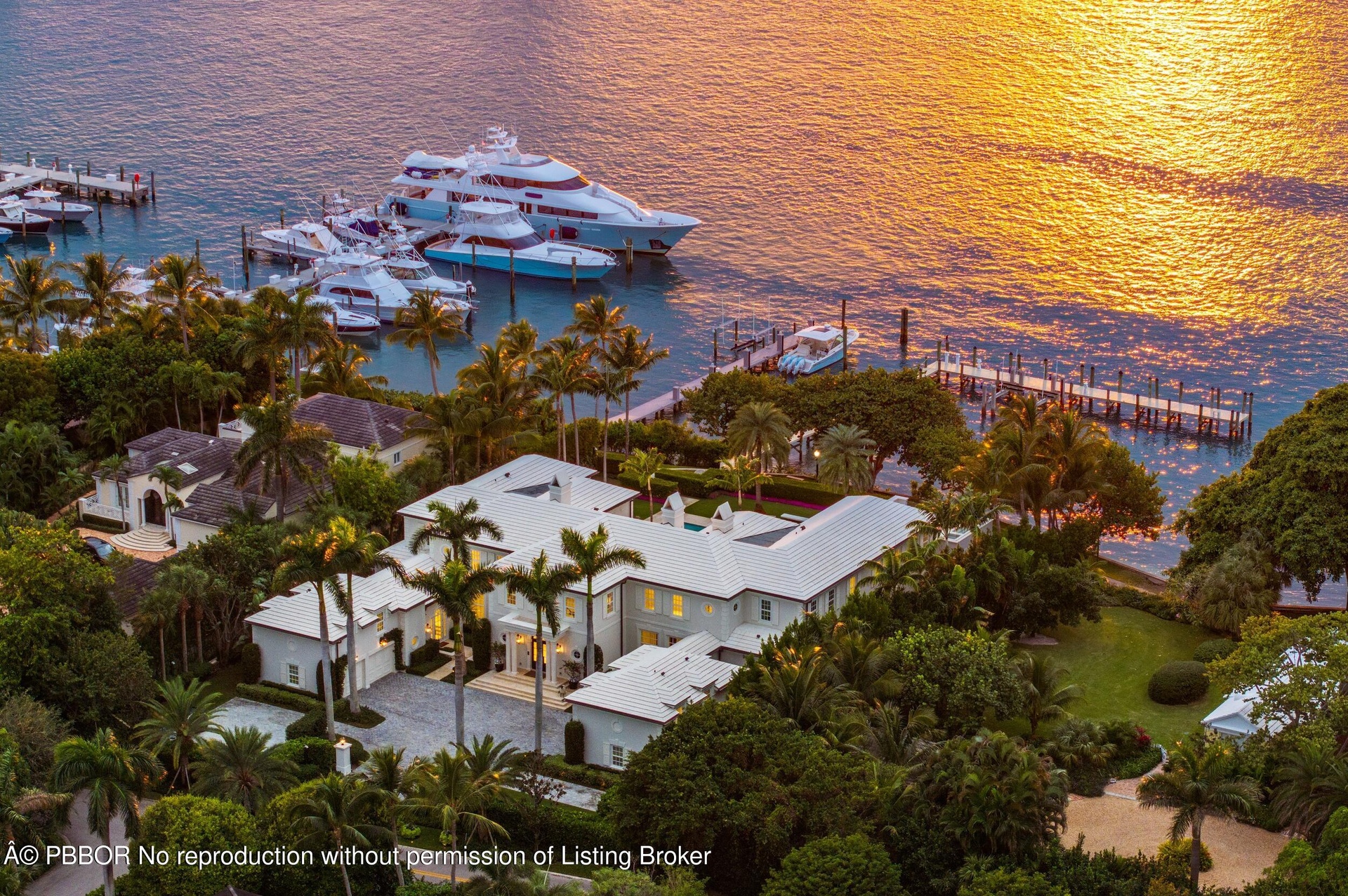 Pristine and rarely available Intracoastal front estate located in Palm Beach's serene North End. Highlights include 7BR/9.3BA, 150+/- feet of Intracoastal frontage, deep-water dock with boat lift, and over 17,000 total square feet. This rare and luxurious home boasts breathtaking lake and sunset views from all principal rooms. Gorgeous Island Colonial with stunning stone and hardwood flooring, high ceilings, and great natural light. First and second floor Primary Suites with dual baths and closets. Formal living room with fireplace and French doors leading to covered loggia. Stunning library with built-ins, formal dining room with butler's pantry, and light-filled family room. Eat-in entertaining kitchen and professional chef's kitchen both equipped with top-of-the-line appliances. The second floor Primary Wing features a large open terrace with built-in cold plunge and spa. Atop the North and South Garages are two fabulous flex spaces each with a full bath and closet - one currently set up as a staff room and the other as an exercise room. Additional highlights include two laundry rooms, elevator, and ample storage space. This home is perfect for both indoor and outdoor entertaining with multiple covered loggias and spacious terraces. Large swimming pool with sun shelf and spa are surrounded by beautifully landscaped grounds.