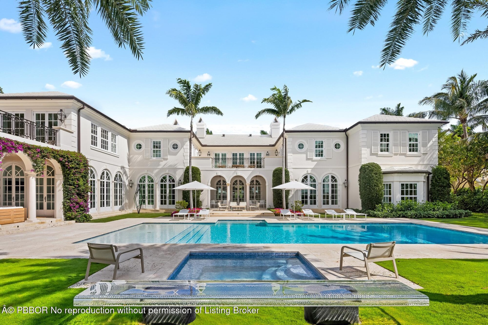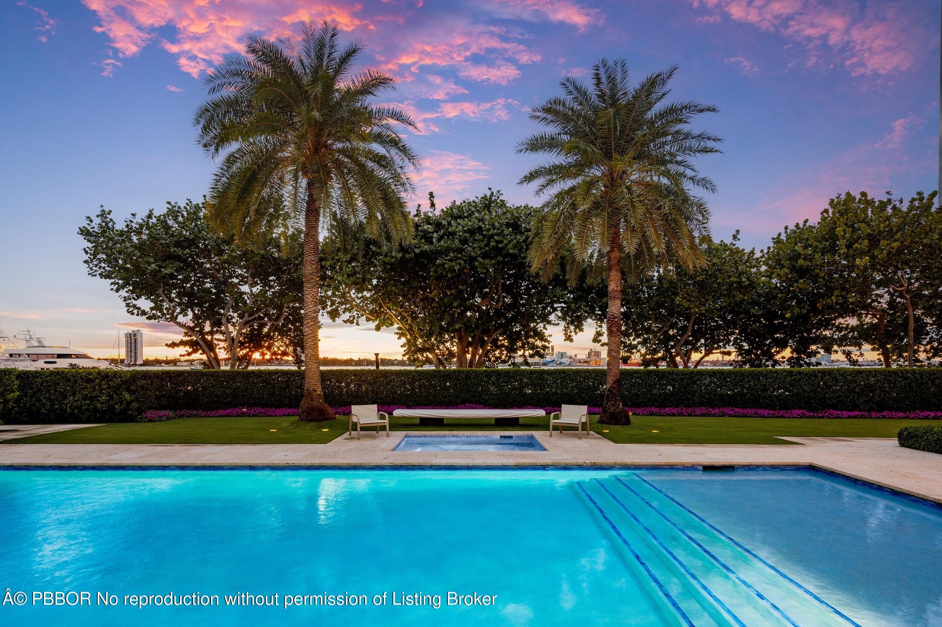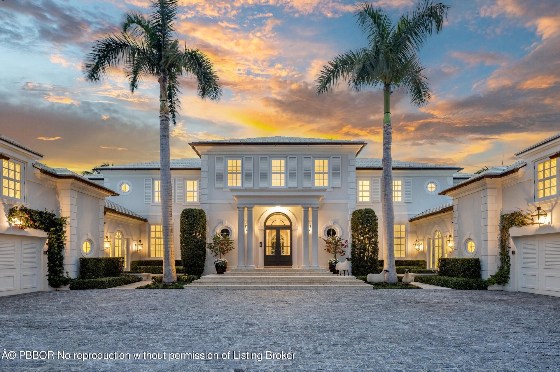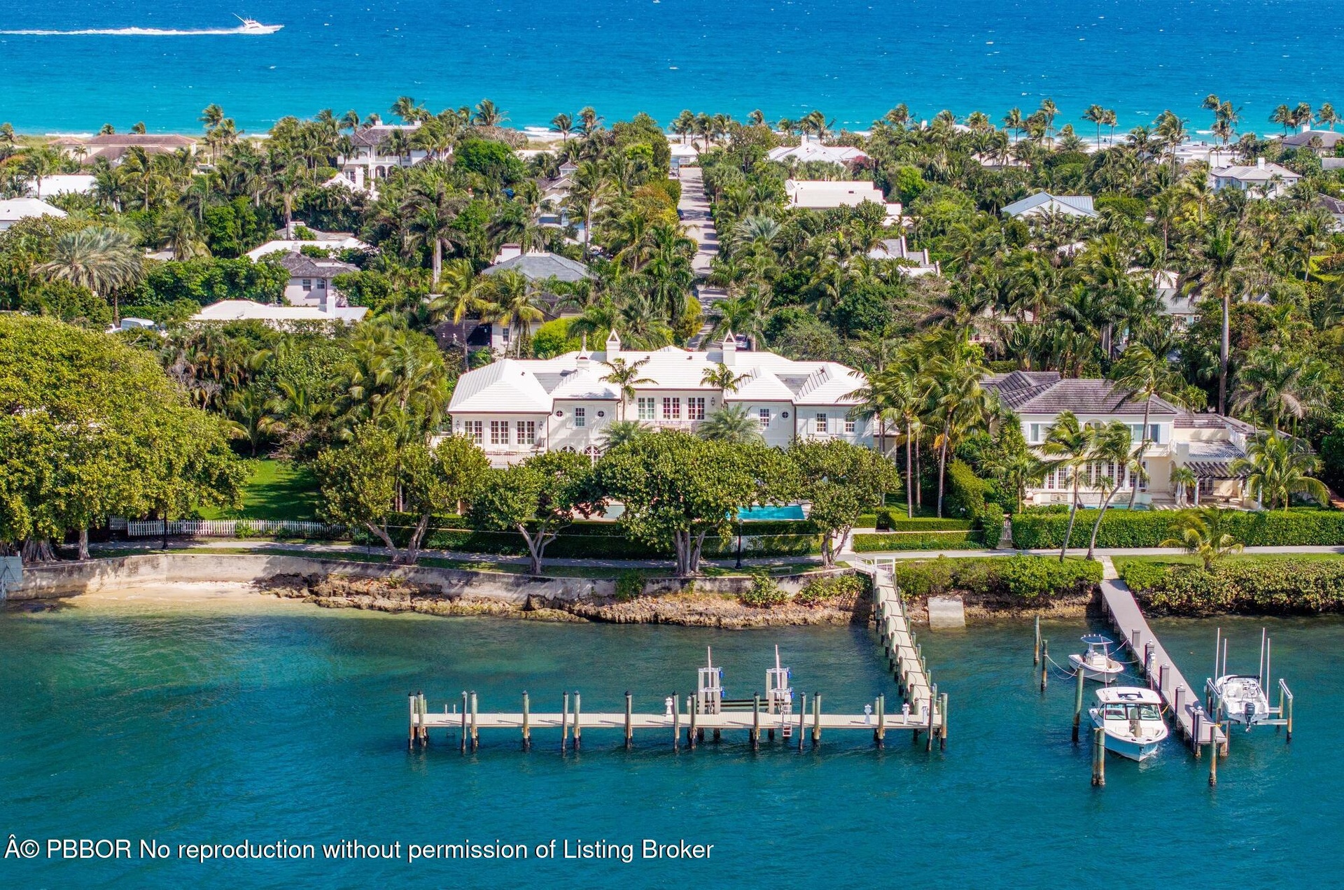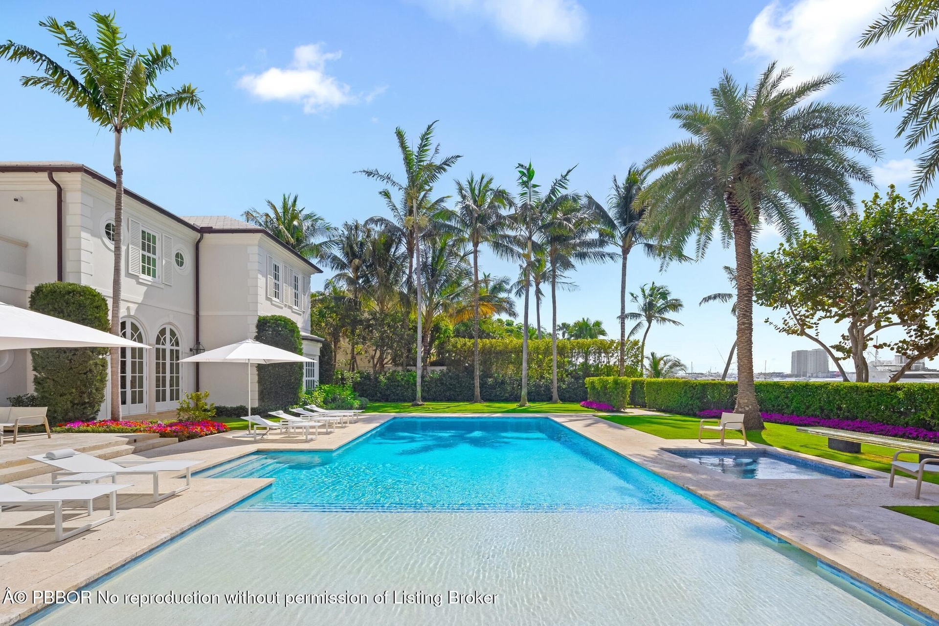 Pristine and rarely available Intracoastal front estate located in Palm Beach's serene North End. Highlights include 7BR/9.3BA, 150+/- feet of Intracoastal frontage, deep-water dock with boat lift, and over 17,000 total square feet. This rare and luxurious home boasts breathtaking lake and sunset views from all principal rooms. Gorgeous Island Colonial with stunning stone and hardwood flooring, high ceilings, and great natural light. First and second floor Primary Suites with dual baths and closets. Formal living room with fireplace and French doors leading to covered loggia. Stunning library with built-ins, formal dining room with butler's pantry, and light-filled family room. Eat-in entertaining kitchen and professional chef's kitchen both equipped with top-of-the-line appliances. The second floor Primary Wing features a large open terrace with built-in cold plunge and spa. Atop the North and South Garages are two fabulous flex spaces each with a full bath and closet - one currently set up as a staff room and the other as an exercise room. Additional highlights include two laundry rooms, elevator, and ample storage space. This home is perfect for both indoor and outdoor entertaining with multiple covered loggias and spacious terraces. Large swimming pool with sun shelf and spa are surrounded by beautifully landscaped grounds.
