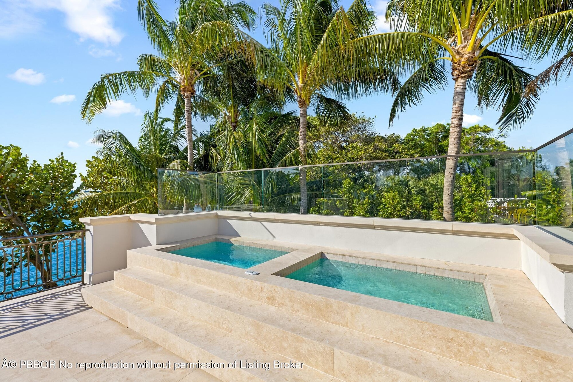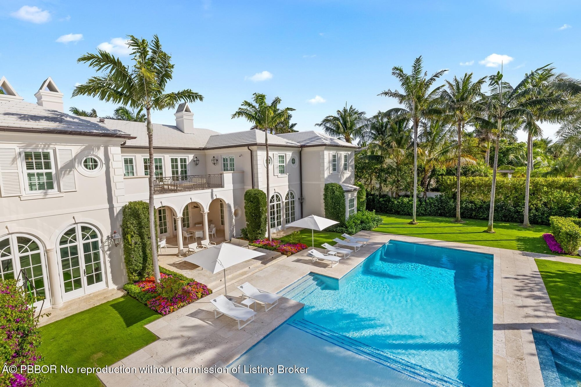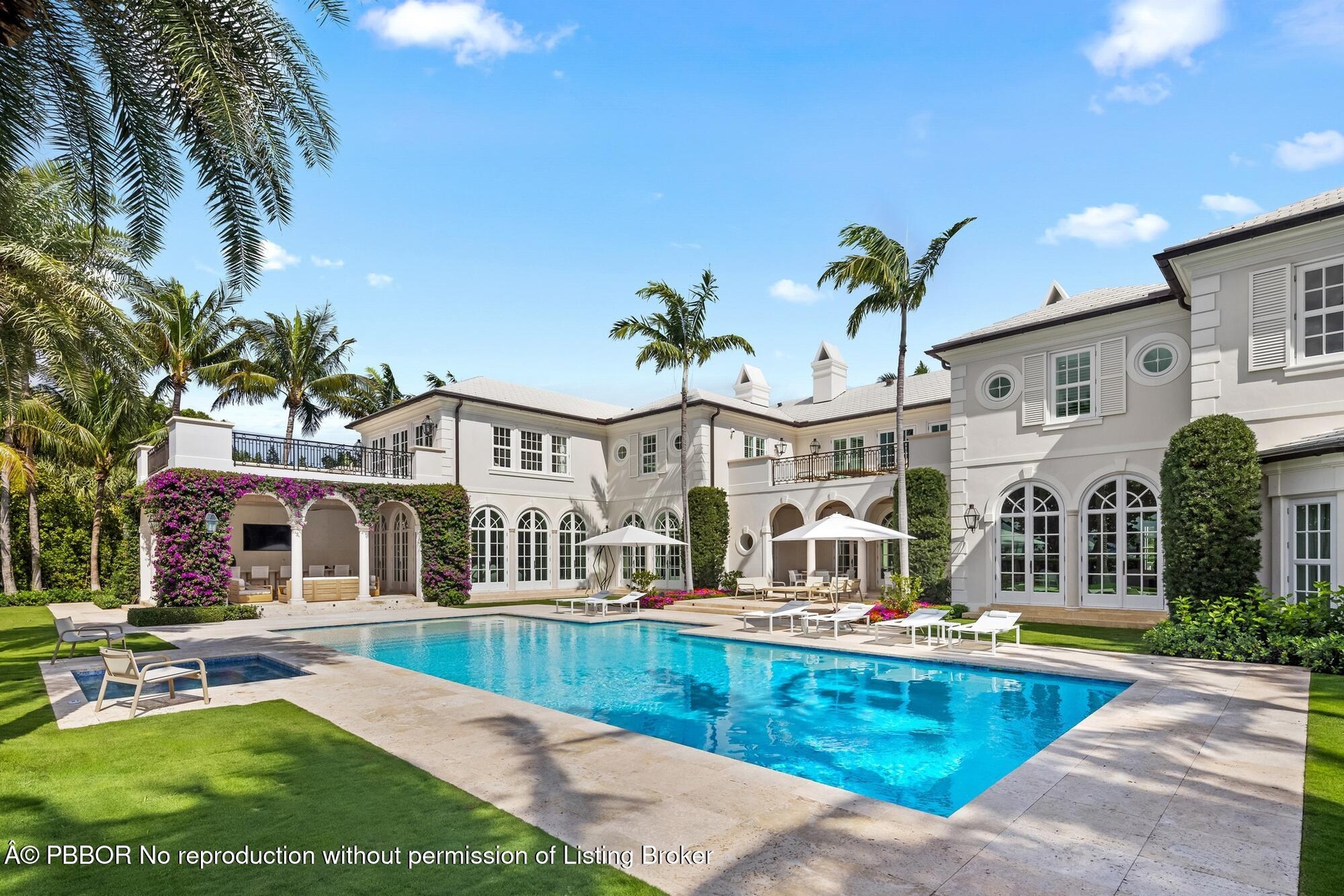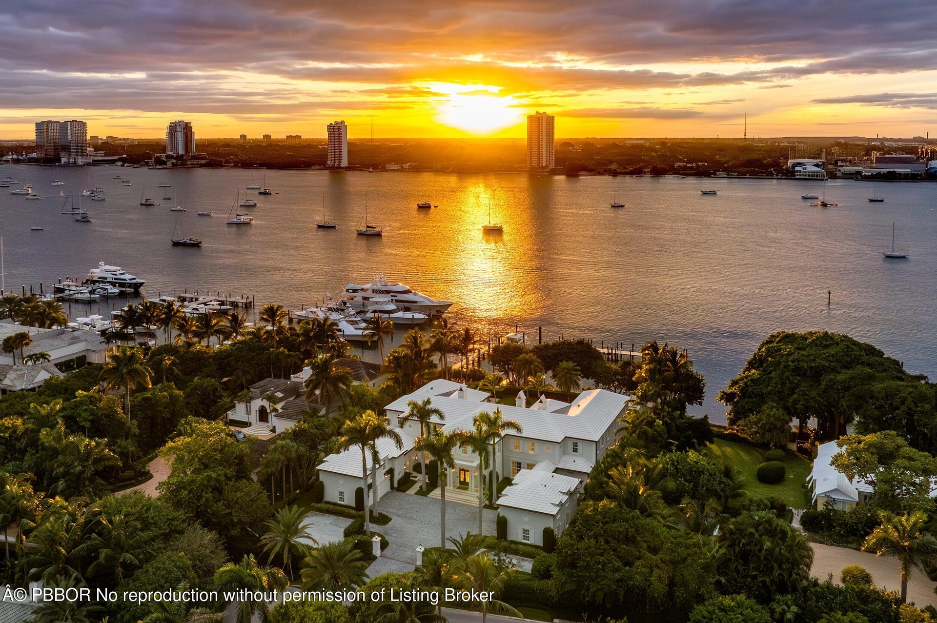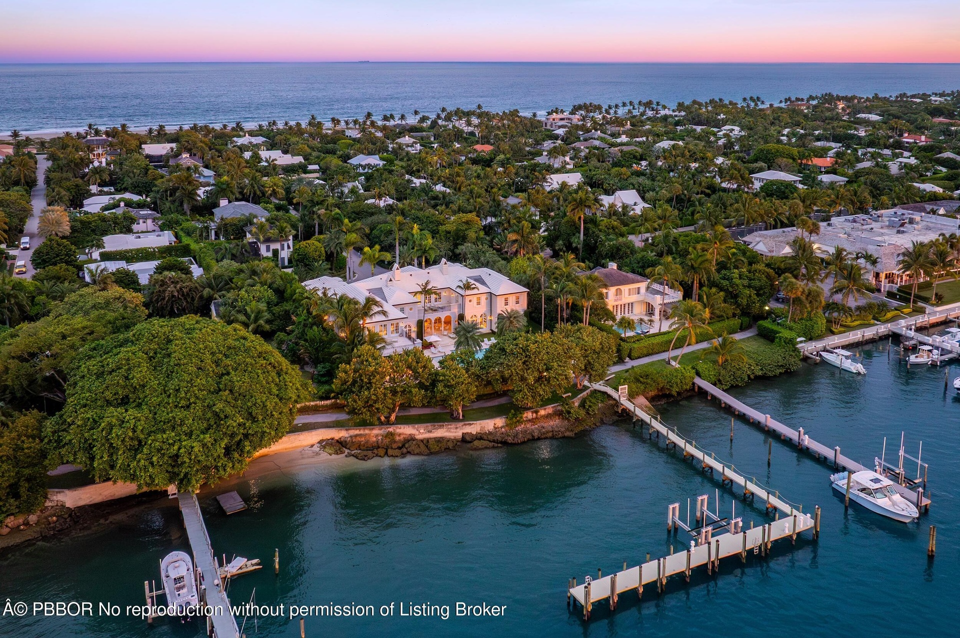 Pristine and rarely available Intracoastal front estate located in Palm Beach's serene North End. Highlights include 7BR/9.3BA, 150+/- feet of Intracoastal frontage, deep-water dock with boat lift, and over 17,000 total square feet. This rare and luxurious home boasts breathtaking lake and sunset views from all principal rooms. Gorgeous Island Colonial with stunning stone and hardwood flooring, high ceilings, and great natural light. First and second floor Primary Suites with dual baths and closets. Formal living room with fireplace and French doors leading to covered loggia. Stunning library with built-ins, formal dining room with butler's pantry, and light-filled family room. Eat-in entertaining kitchen and professional chef's kitchen both equipped with top-of-the-line appliances. The second floor Primary Wing features a large open terrace with built-in cold plunge and spa. Atop the North and South Garages are two fabulous flex spaces each with a full bath and closet - one currently set up as a staff room and the other as an exercise room. Additional highlights include two laundry rooms, elevator, and ample storage space. This home is perfect for both indoor and outdoor entertaining with multiple covered loggias and spacious terraces. Large swimming pool with sun shelf and spa are surrounded by beautifully landscaped grounds.