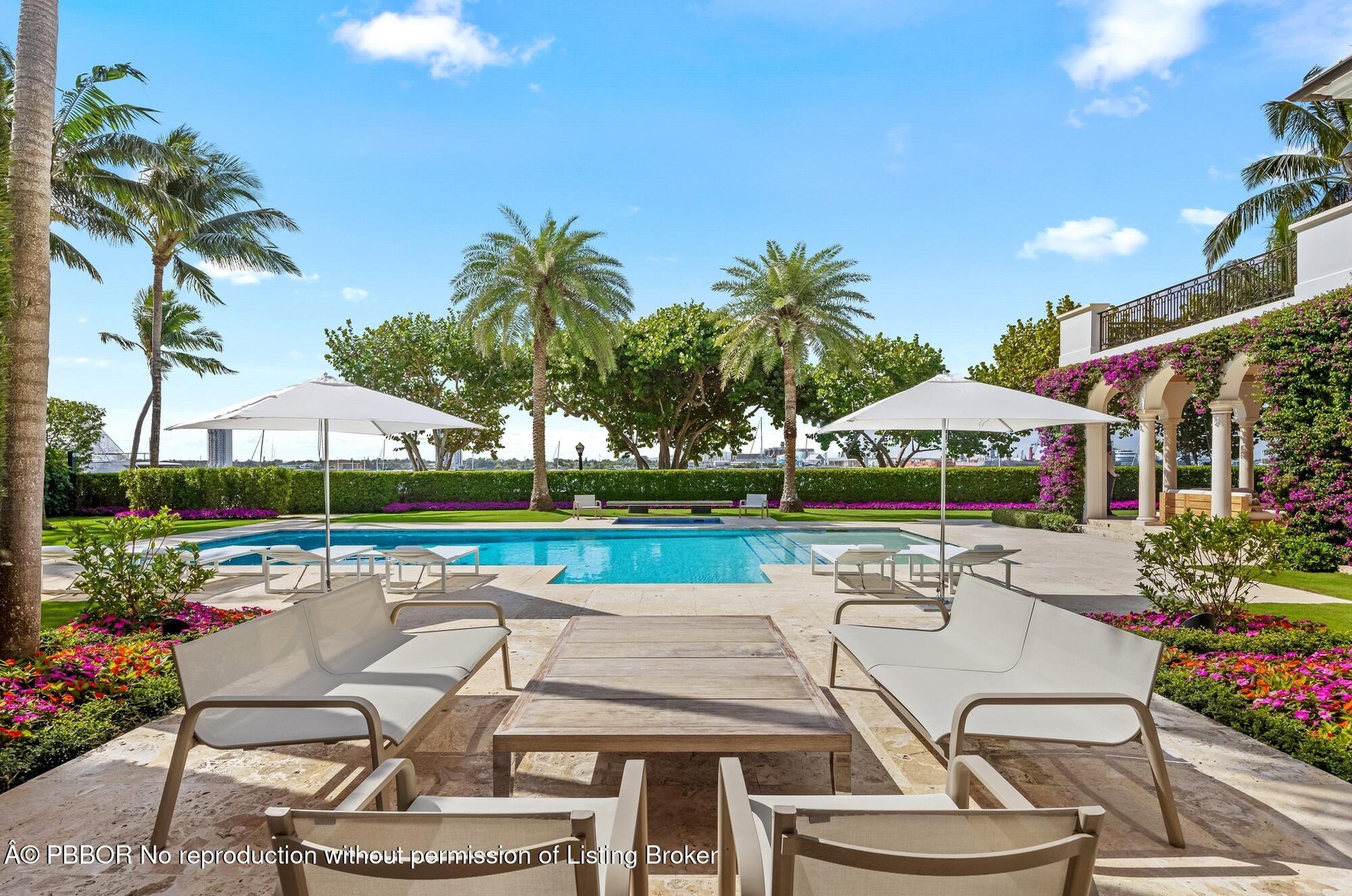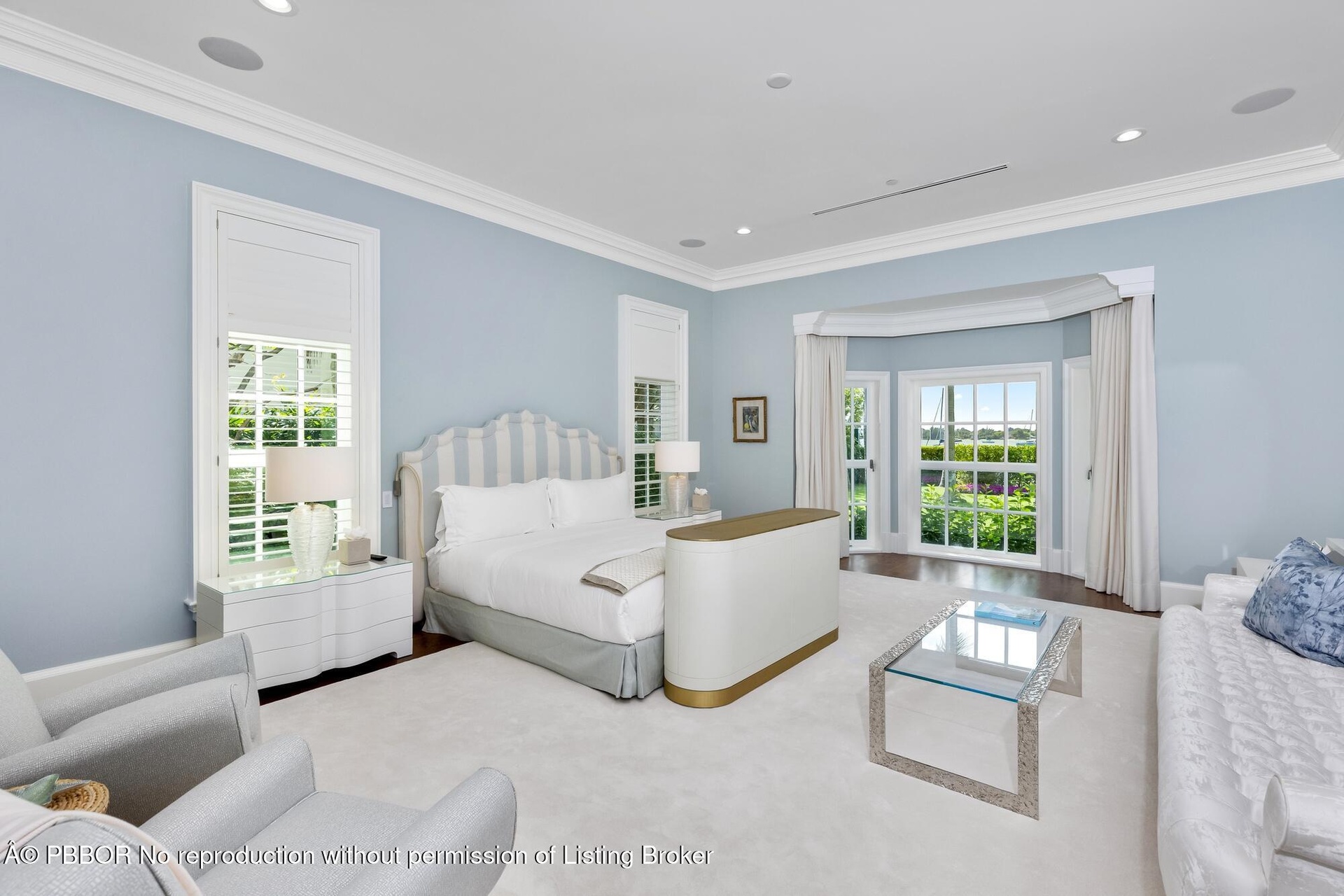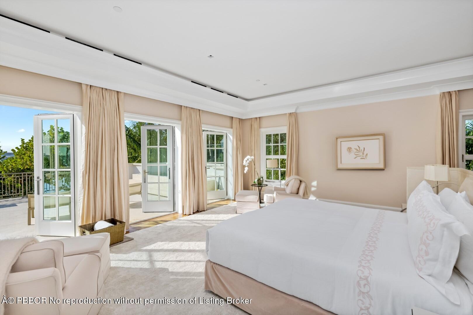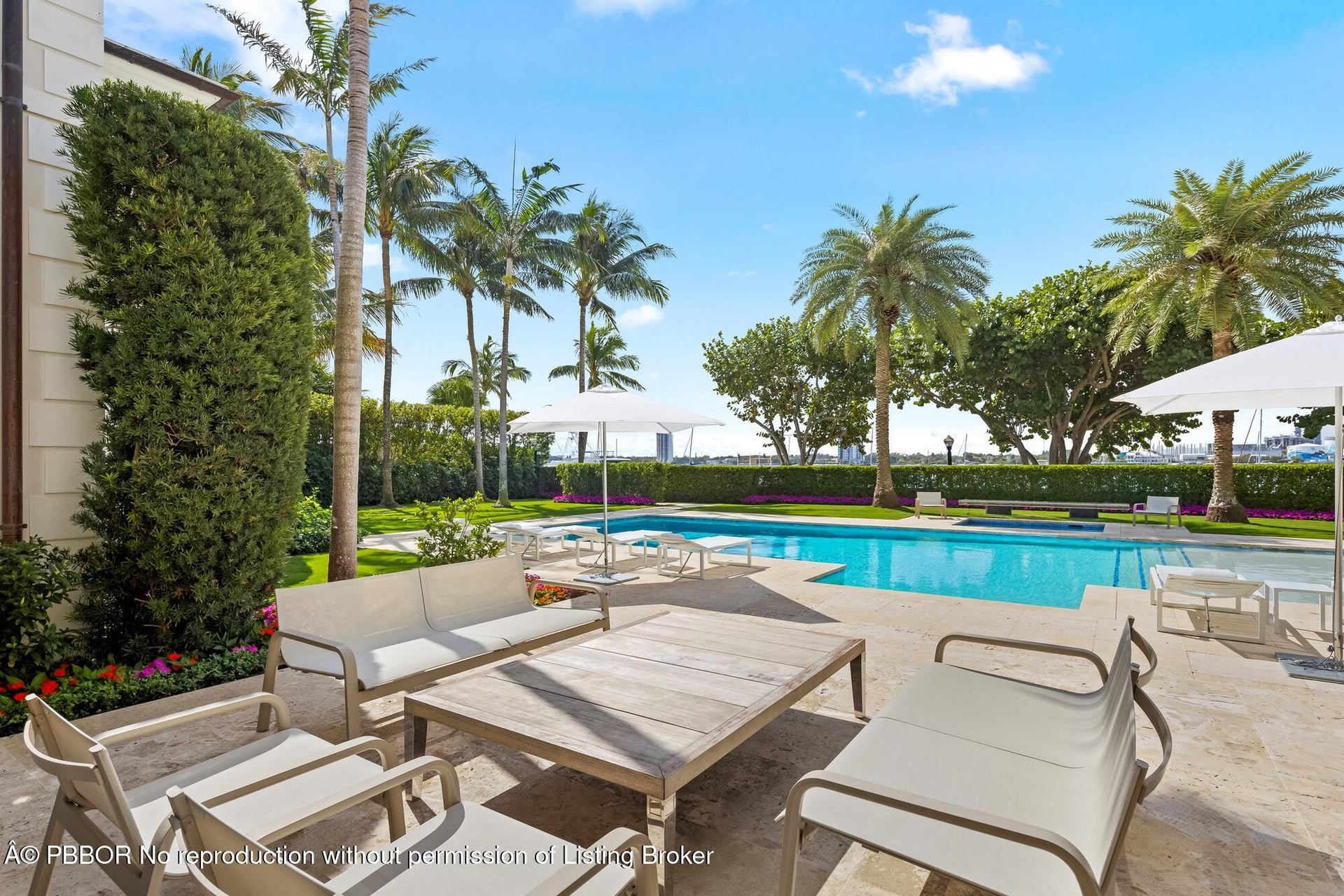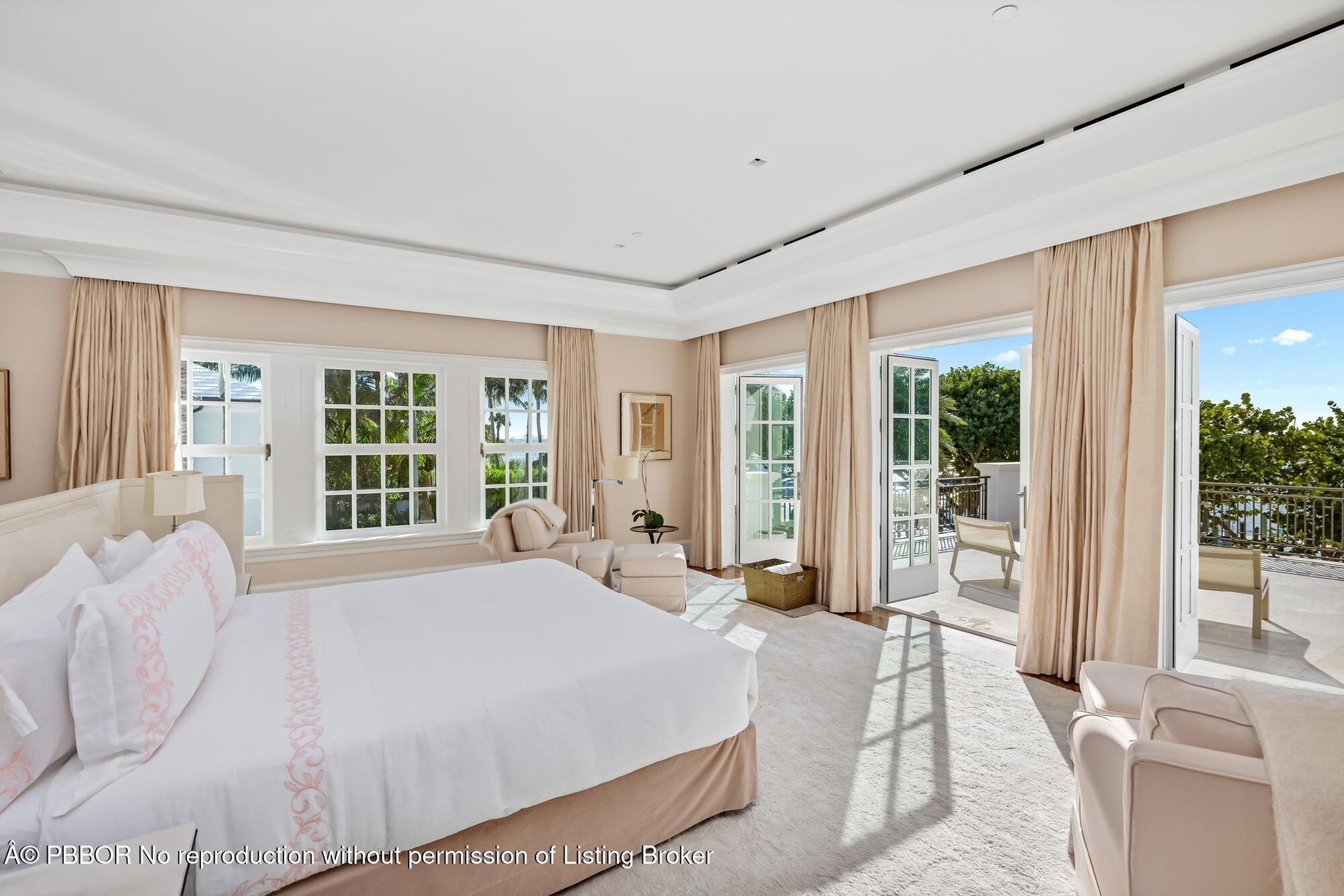 Pristine and rarely available Intracoastal front estate located in Palm Beach's serene North End. Highlights include 7BR/9.3BA, 150+/- feet of Intracoastal frontage, deep-water dock with boat lift, and over 17,000 total square feet. This rare and luxurious home boasts breathtaking lake and sunset views from all principal rooms. Gorgeous Island Colonial with stunning stone and hardwood flooring, high ceilings, and great natural light. First and second floor Primary Suites with dual baths and closets. Formal living room with fireplace and French doors leading to covered loggia. Stunning library with built-ins, formal dining room with butler's pantry, and light-filled family room. Eat-in entertaining kitchen and professional chef's kitchen both equipped with top-of-the-line appliances. The second floor Primary Wing features a large open terrace with built-in cold plunge and spa. Atop the North and South Garages are two fabulous flex spaces each with a full bath and closet - one currently set up as a staff room and the other as an exercise room. Additional highlights include two laundry rooms, elevator, and ample storage space. This home is perfect for both indoor and outdoor entertaining with multiple covered loggias and spacious terraces. Large swimming pool with sun shelf and spa are surrounded by beautifully landscaped grounds.