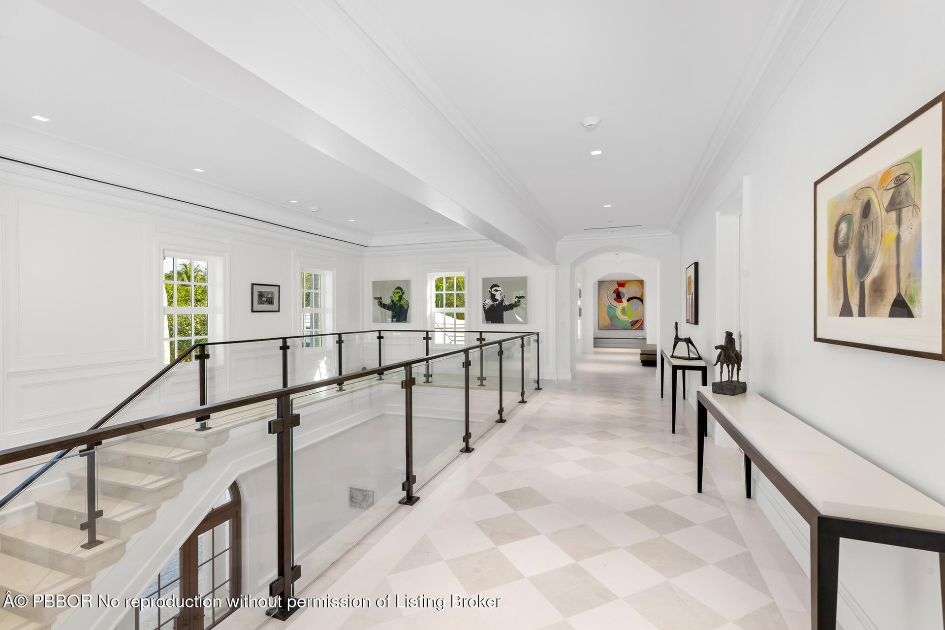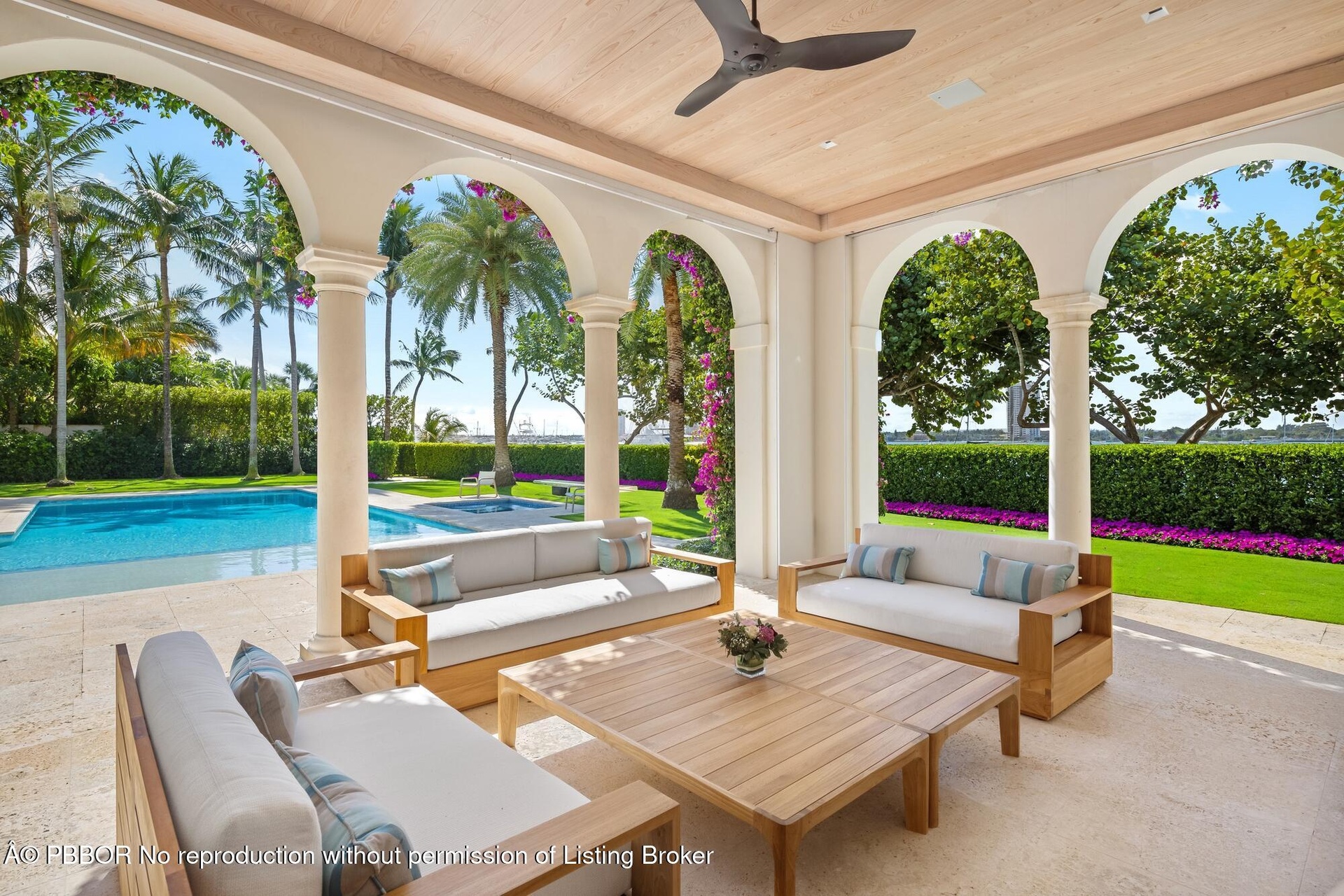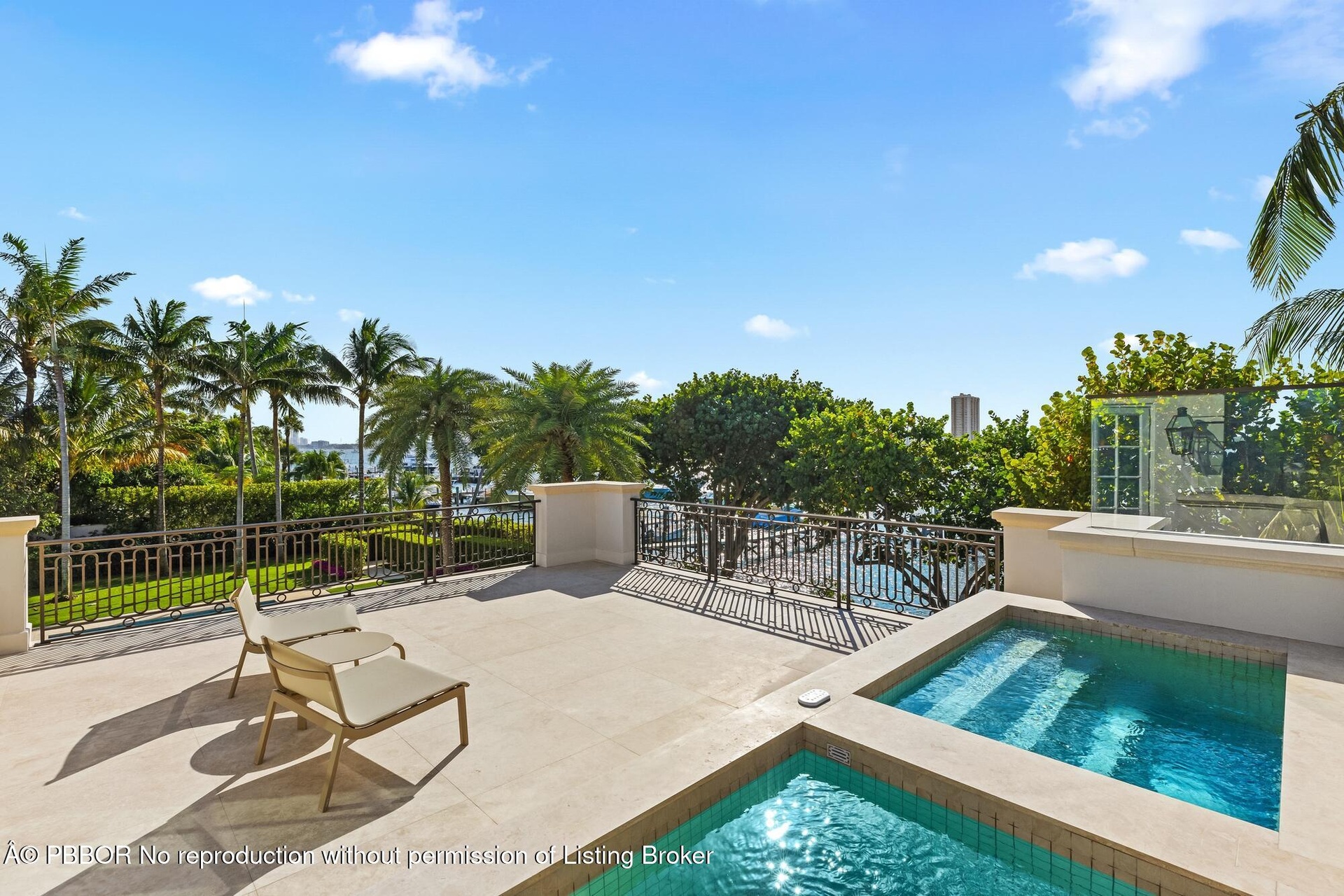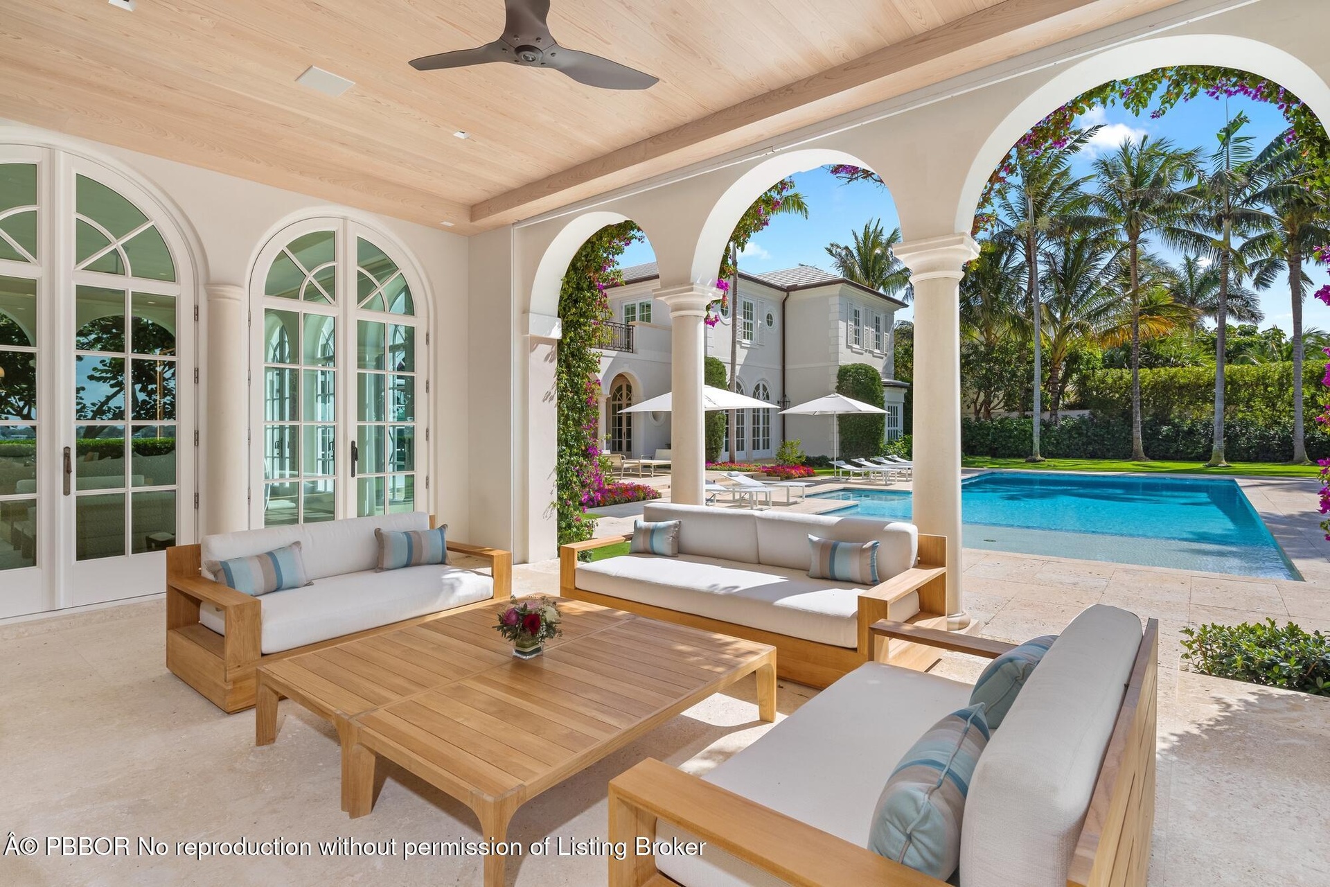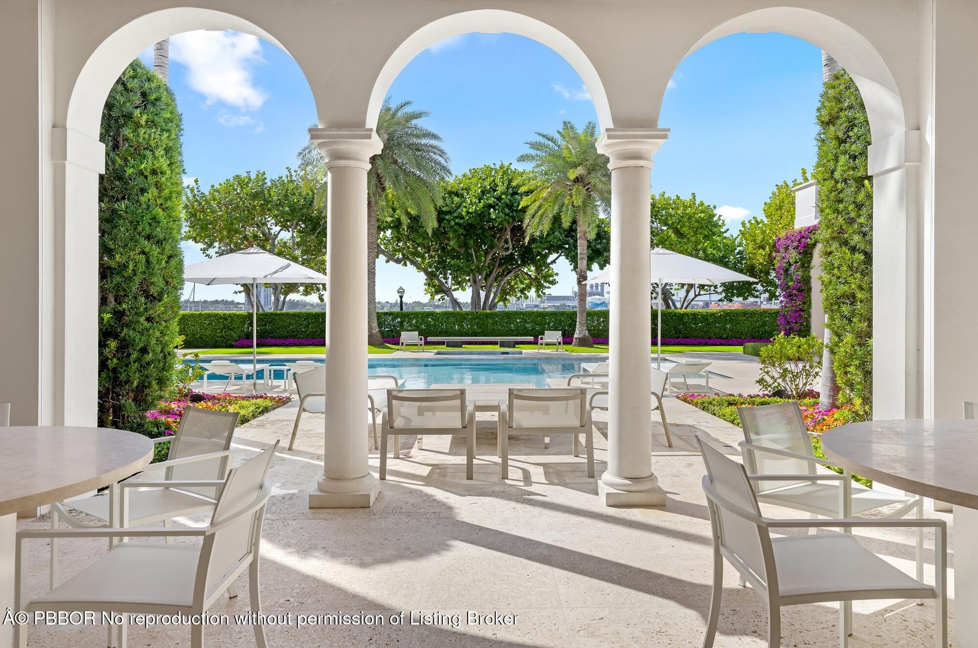 Pristine and rarely available Intracoastal front estate located in Palm Beach's serene North End. Highlights include 7BR/9.3BA, 150+/- feet of Intracoastal frontage, deep-water dock with boat lift, and over 17,000 total square feet. This rare and luxurious home boasts breathtaking lake and sunset views from all principal rooms. Gorgeous Island Colonial with stunning stone and hardwood flooring, high ceilings, and great natural light. First and second floor Primary Suites with dual baths and closets. Formal living room with fireplace and French doors leading to covered loggia. Stunning library with built-ins, formal dining room with butler's pantry, and light-filled family room. Eat-in entertaining kitchen and professional chef's kitchen both equipped with top-of-the-line appliances. The second floor Primary Wing features a large open terrace with built-in cold plunge and spa. Atop the North and South Garages are two fabulous flex spaces each with a full bath and closet - one currently set up as a staff room and the other as an exercise room. Additional highlights include two laundry rooms, elevator, and ample storage space. This home is perfect for both indoor and outdoor entertaining with multiple covered loggias and spacious terraces. Large swimming pool with sun shelf and spa are surrounded by beautifully landscaped grounds.