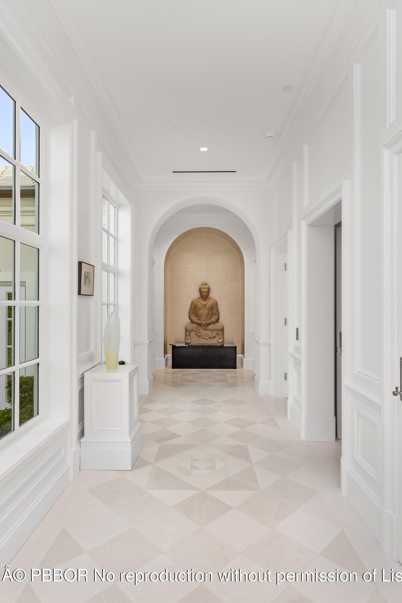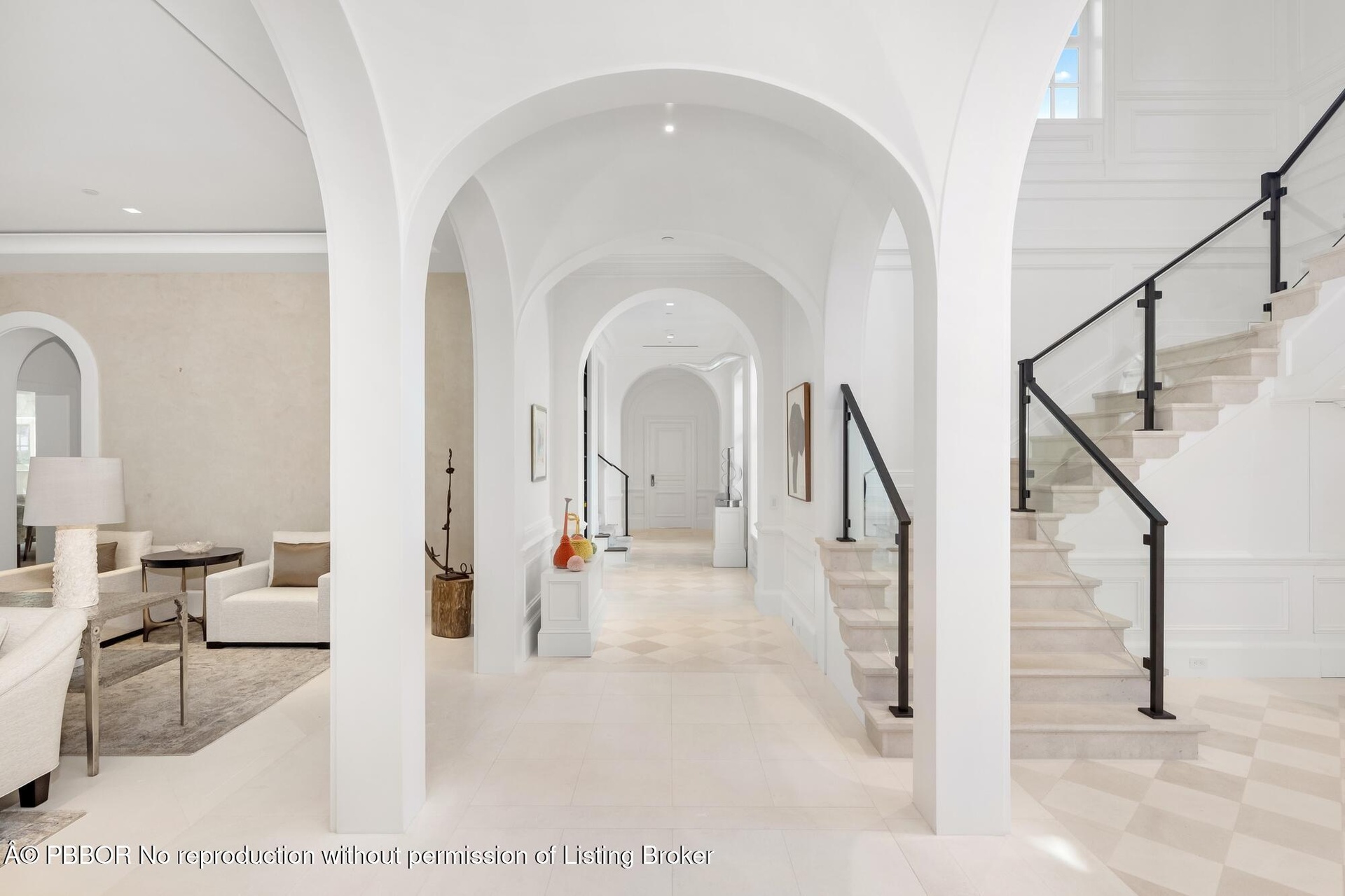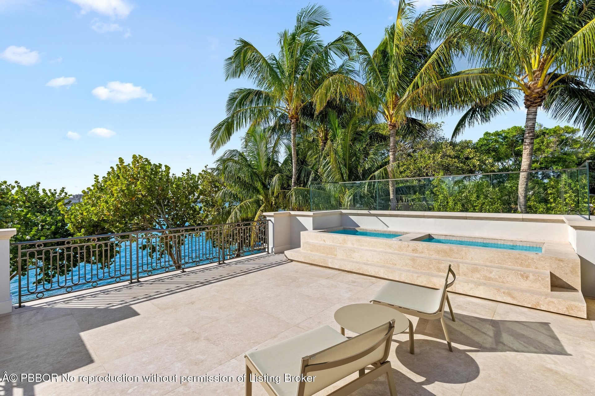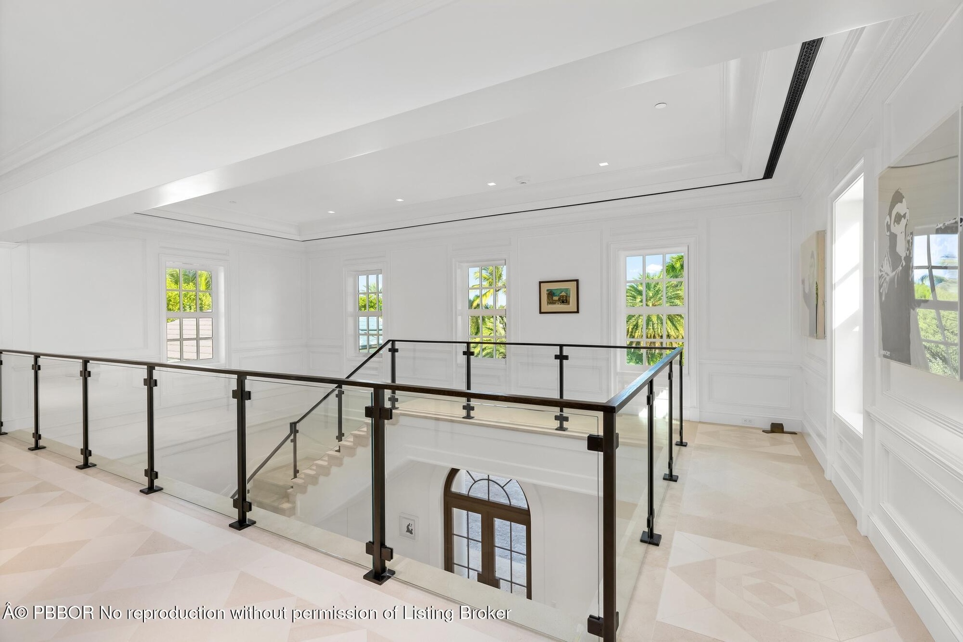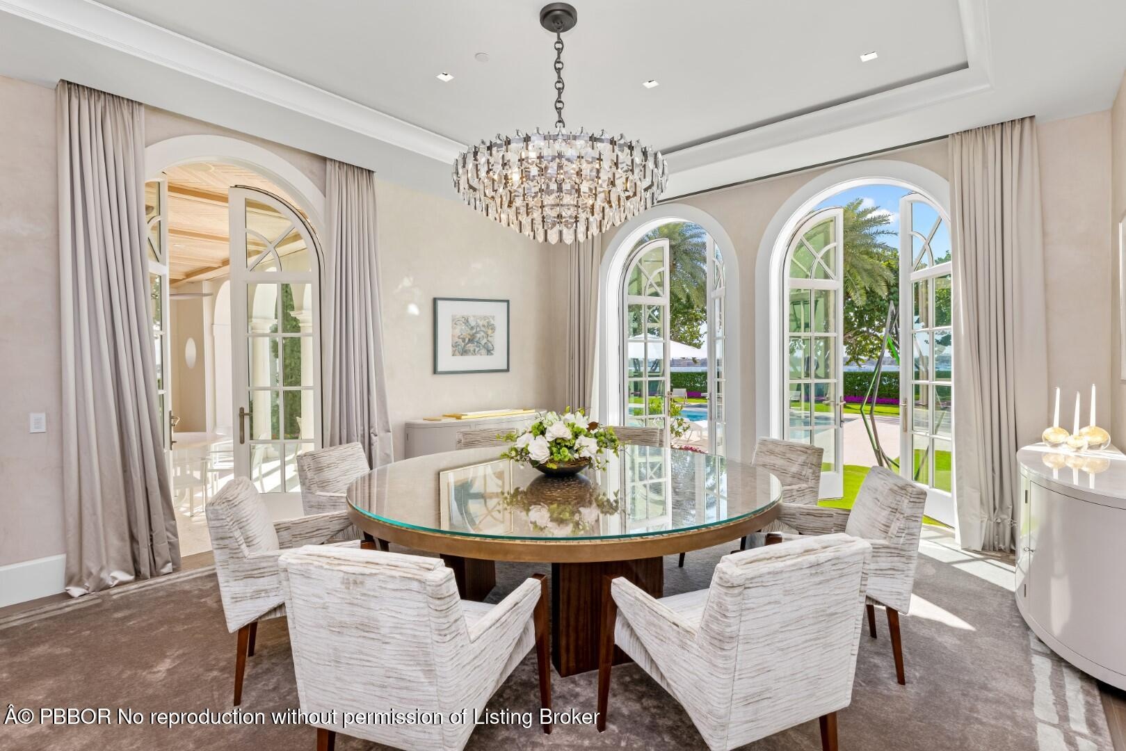 Pristine and rarely available Intracoastal front estate located in Palm Beach's serene North End. Highlights include 7BR/9.3BA, 150+/- feet of Intracoastal frontage, deep-water dock with boat lift, and over 17,000 total square feet. This rare and luxurious home boasts breathtaking lake and sunset views from all principal rooms. Gorgeous Island Colonial with stunning stone and hardwood flooring, high ceilings, and great natural light. First and second floor Primary Suites with dual baths and closets. Formal living room with fireplace and French doors leading to covered loggia. Stunning library with built-ins, formal dining room with butler's pantry, and light-filled family room. Eat-in entertaining kitchen and professional chef's kitchen both equipped with top-of-the-line appliances. The second floor Primary Wing features a large open terrace with built-in cold plunge and spa. Atop the North and South Garages are two fabulous flex spaces each with a full bath and closet - one currently set up as a staff room and the other as an exercise room. Additional highlights include two laundry rooms, elevator, and ample storage space. This home is perfect for both indoor and outdoor entertaining with multiple covered loggias and spacious terraces. Large swimming pool with sun shelf and spa are surrounded by beautifully landscaped grounds.