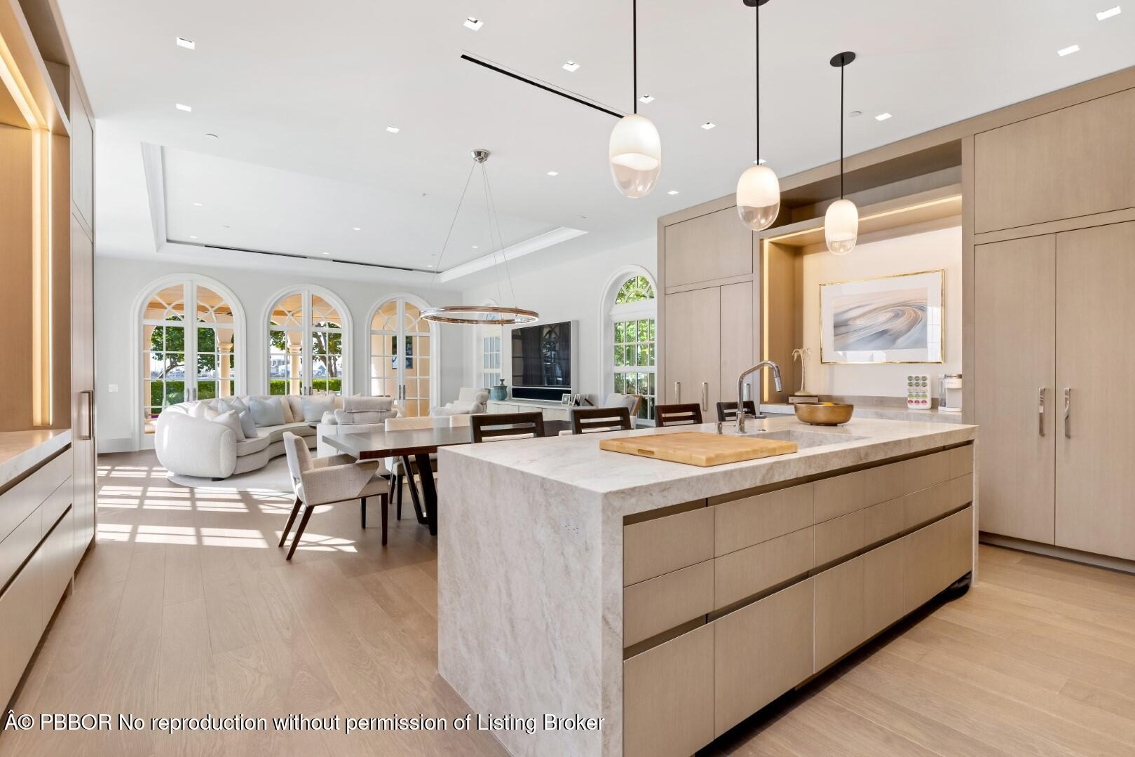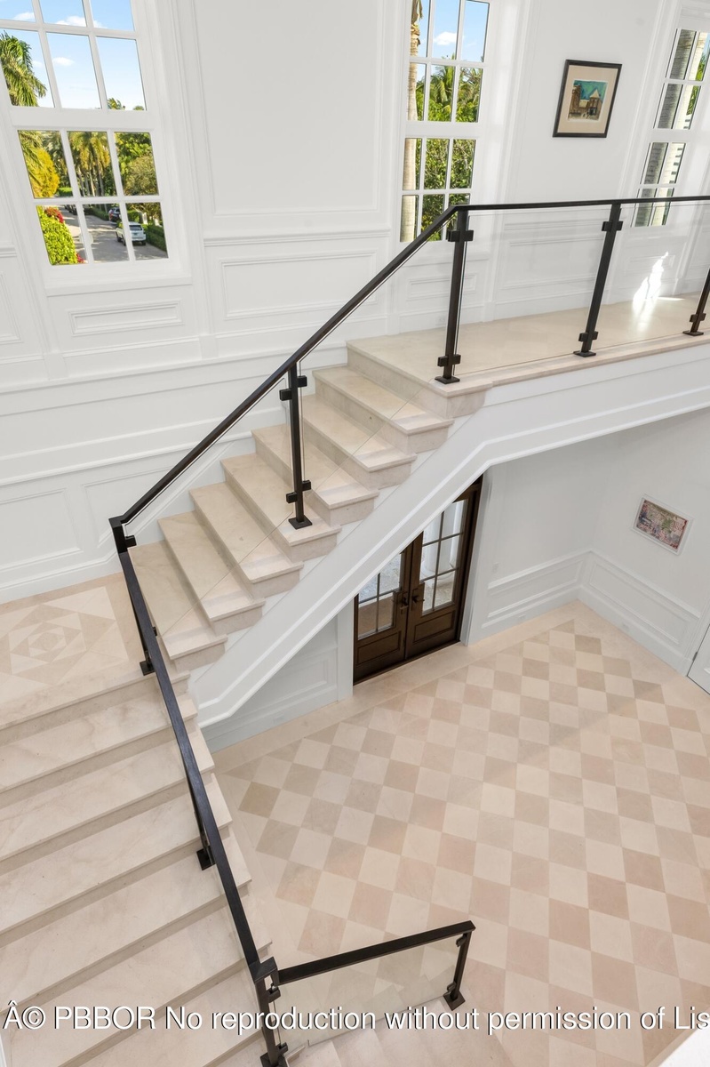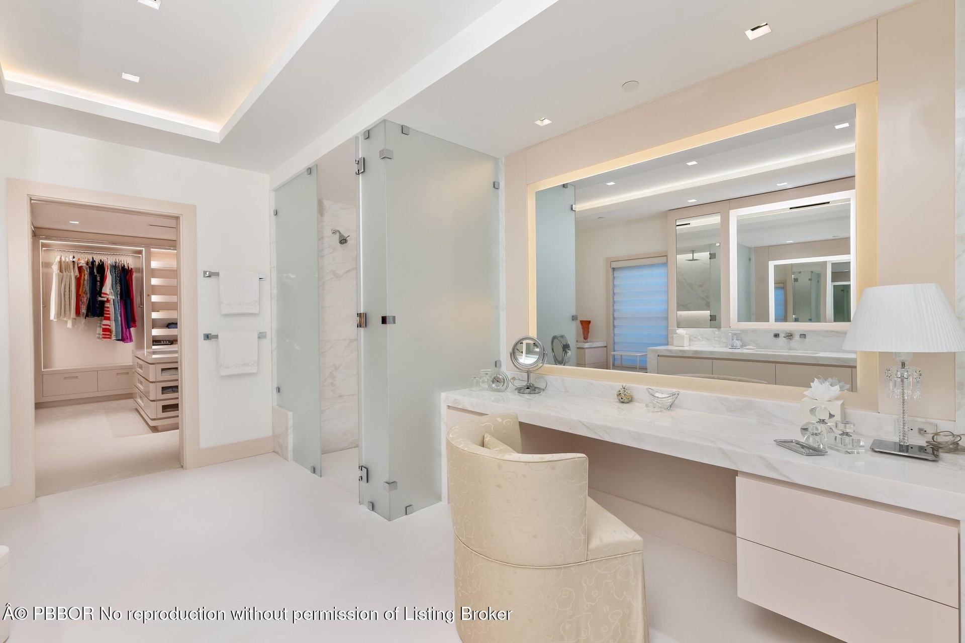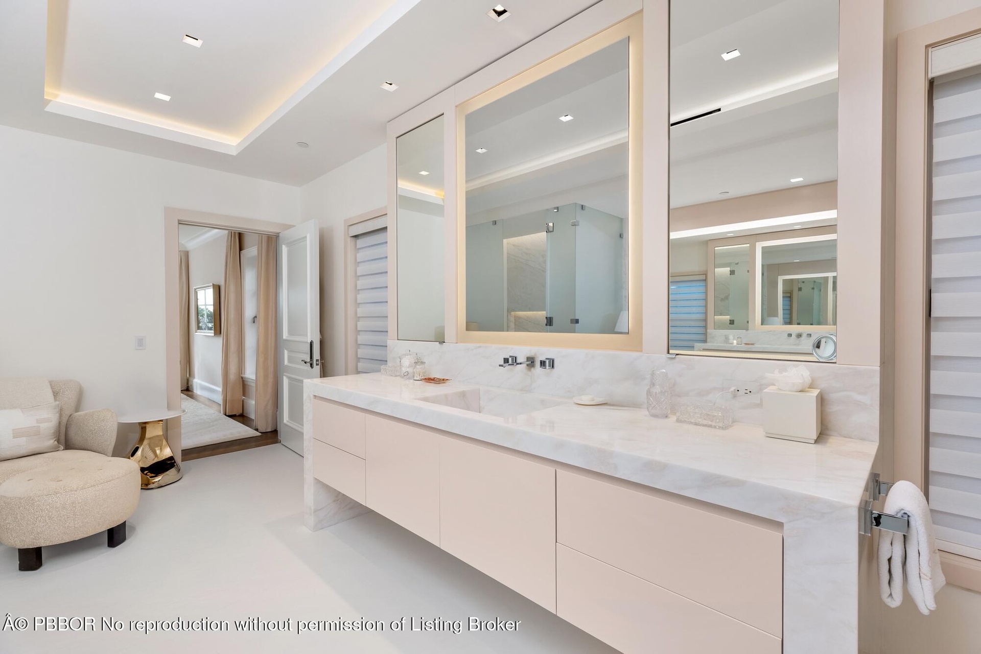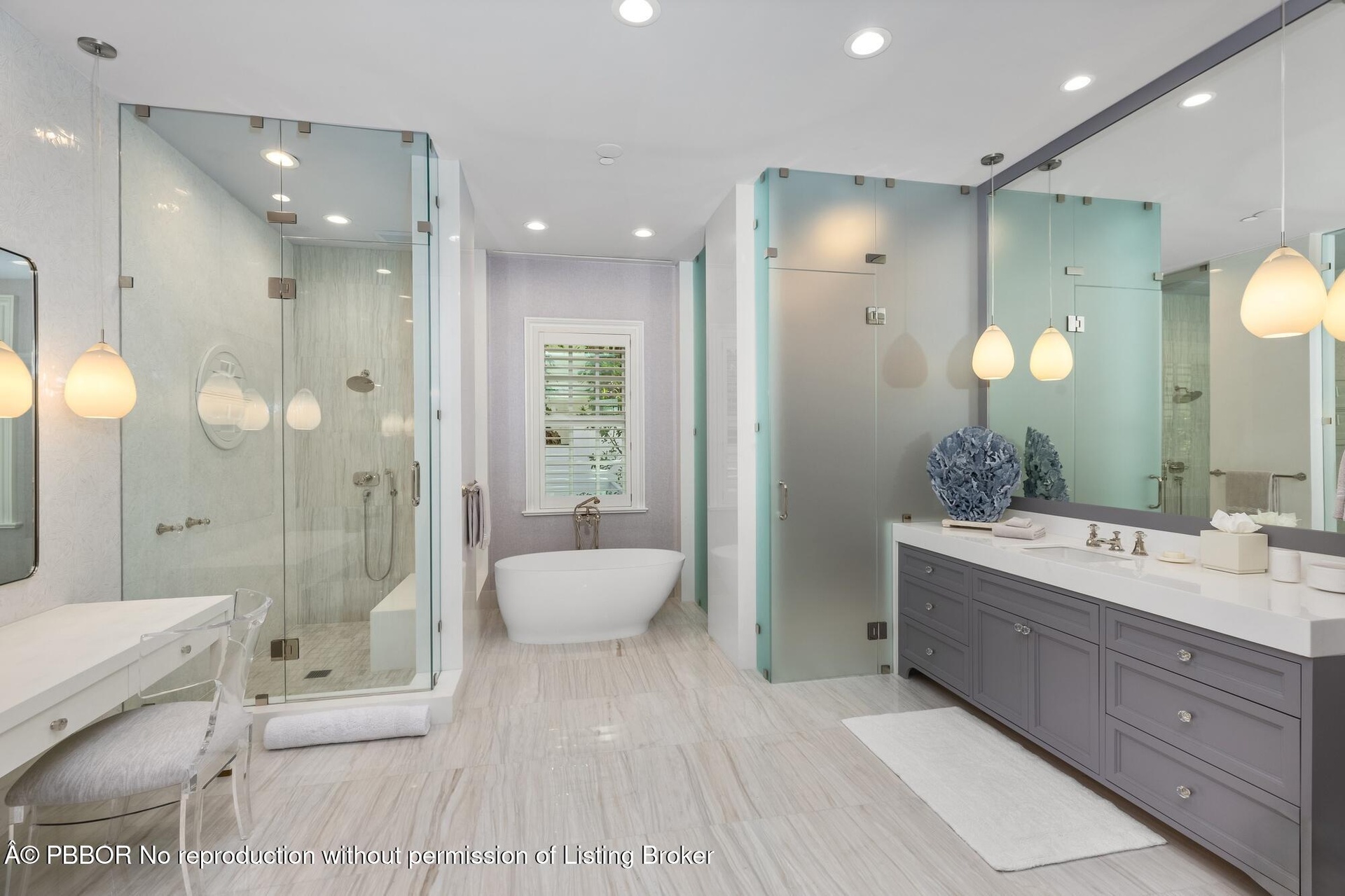 Pristine and rarely available Intracoastal front estate located in Palm Beach's serene North End. Highlights include 7BR/9.3BA, 150+/- feet of Intracoastal frontage, deep-water dock with boat lift, and over 17,000 total square feet. This rare and luxurious home boasts breathtaking lake and sunset views from all principal rooms. Gorgeous Island Colonial with stunning stone and hardwood flooring, high ceilings, and great natural light. First and second floor Primary Suites with dual baths and closets. Formal living room with fireplace and French doors leading to covered loggia. Stunning library with built-ins, formal dining room with butler's pantry, and light-filled family room. Eat-in entertaining kitchen and professional chef's kitchen both equipped with top-of-the-line appliances. The second floor Primary Wing features a large open terrace with built-in cold plunge and spa. Atop the North and South Garages are two fabulous flex spaces each with a full bath and closet - one currently set up as a staff room and the other as an exercise room. Additional highlights include two laundry rooms, elevator, and ample storage space. This home is perfect for both indoor and outdoor entertaining with multiple covered loggias and spacious terraces. Large swimming pool with sun shelf and spa are surrounded by beautifully landscaped grounds.