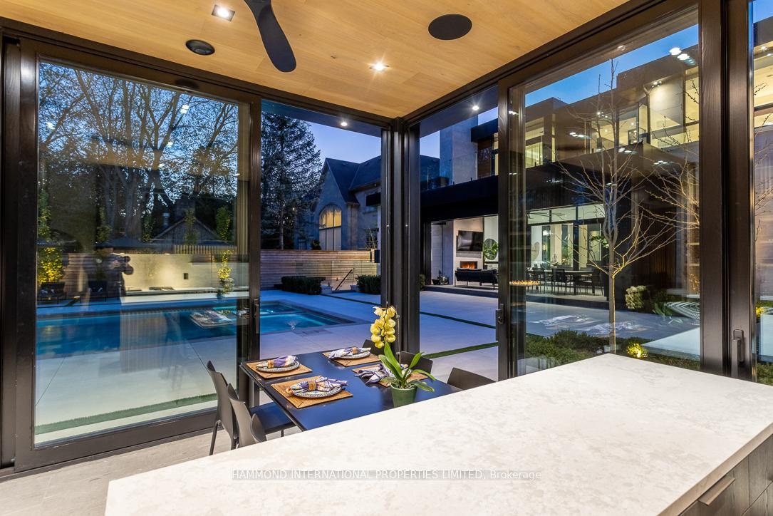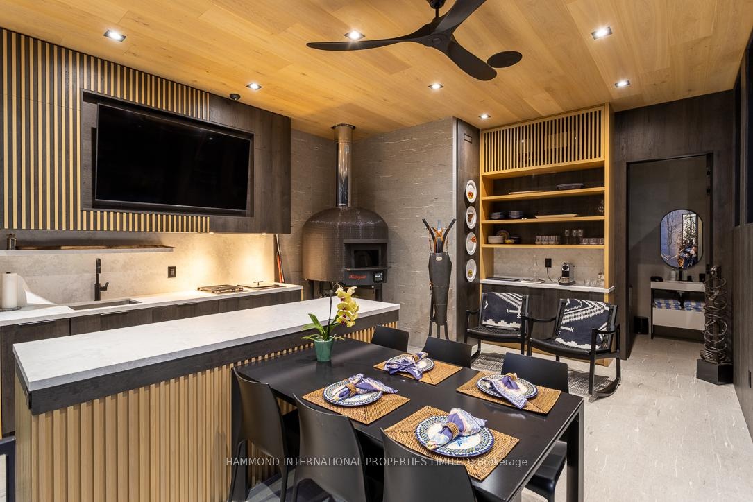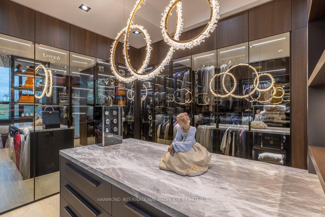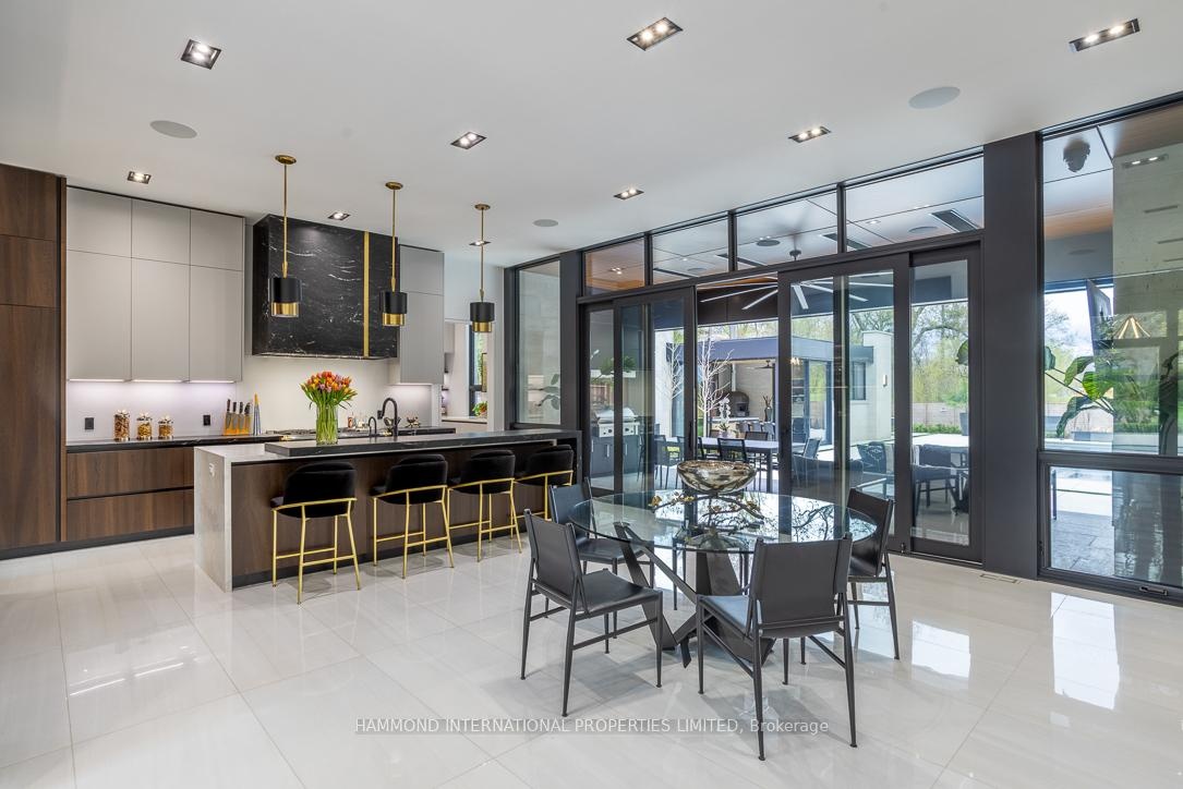 Offered fully furnished, The One presents a rare fully furnished turnkey opportunity for the most discerning buyer. Every room has been professionally designed and thoughtfully curated, allowing for a seamless transition into refined living. From bespoke furnishings to designer lighting and artful details, this residence is ready to be enjoyed from day one - simply arrive with your suitcase. The ONE - A Cutting-Edge Escape Beyond Imagination that unites architecture, innovation, and nature in flawless harmony. Designed by David Small Architects with interiors by Coz Design Inc., this modern masterpiece redefines luxury through serene sophistication and bold contemporary expression. Expansive glass, natural limestone, and seamless indoor-outdoor transitions dissolve boundaries between home and horizon.Interiors flow in a soft, neutral palette with custom Italian millwork, quarter-sawn walnut, and elegant stone detailing. The chef's kitchen, with granite waterfall island, Miele appliances, Muti cabinetry, and Bertazzoni double oven, pairs with a prep kitchen and walk-through servery for effortless entertaining. The owner's suite offers a private terrace, Large terrace with saltwater pool views, spa-inspired ensuite and fully appointed dressing room. Three additional suites feature breathtaking vistas and refined finishes. Smart home automation, private three-floor elevator, and discreet staff corridors elevate daily living. The lower level invites indulgence with a home theatre, glass wine cellar, nanny suite, fitness studio with Himalayan salt-wall sauna, and entertainment lounge. Outdoors, The One backs onto natural conservation land, so that you can naturally enjoy a covered living room with phantom screens, wood-burning fireplace, TEC grill, saltwater infinity edge pool and hot tub merging with the horizon. A year-round pool house with gourmet kitchen, pizza oven, and Kalamazoo grill completes this resort-inspired estate. A world of magnificence awaits!