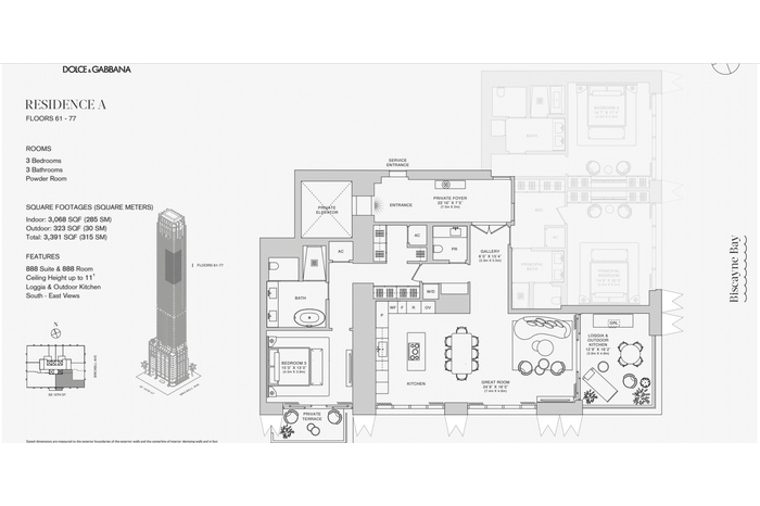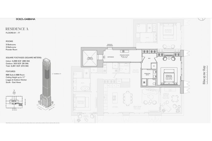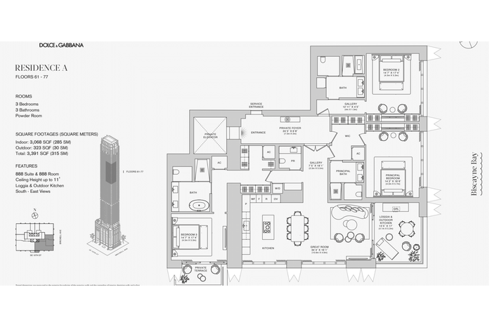 The residence offered at $6,775,000 approximately $2,208 Per SQFTis a fully furnished three-bedroom, three-and-a-half- bath home spanning 3,425 square feet of refined interior and exterior living. Entering through a private elevator and dedicated foyer, the scale and proportion set an immediate tone of quiet luxury, with 11-foot ceilings and southeast views pulling natural light throughout the home.
