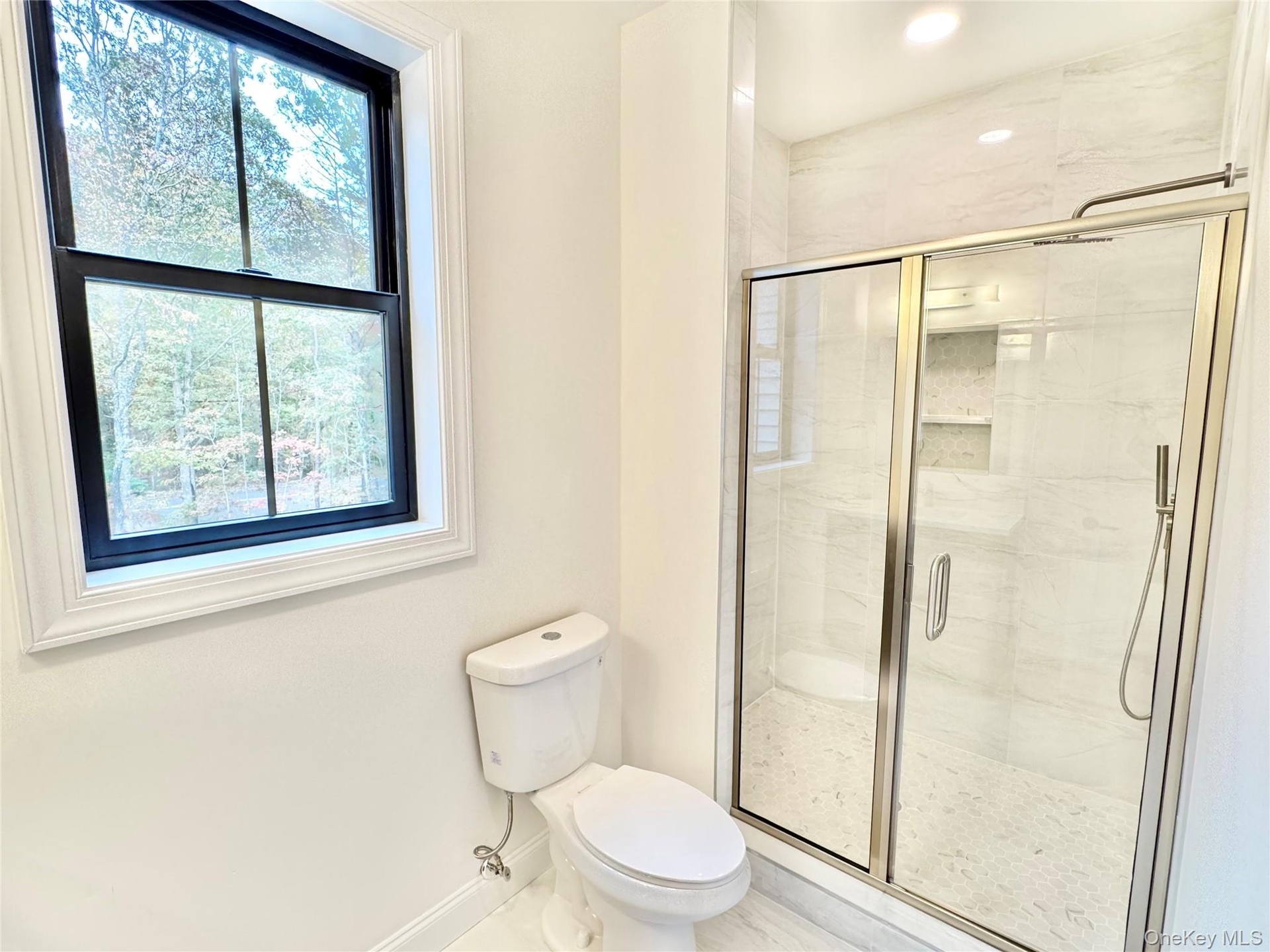 - Bathroom with a freestanding tub, marble finish flooring, and plenty of natural light
