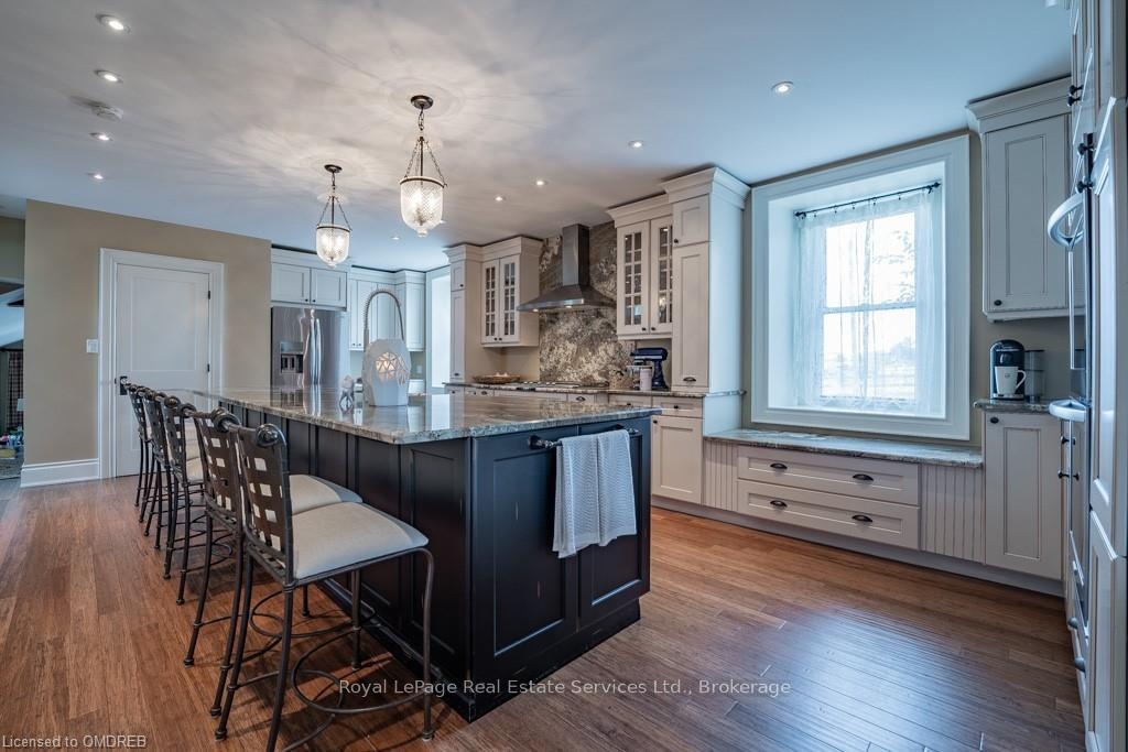 34+ Acres approx, fibre optics internet now hooked up, walk to Farm Boy, walk-in clinics, Shoppers Drug Mart, Longo's, Starbucks and great restaurants. Gorgeous escarpment views, note zoning is Escarpment Rural Area, less restrictive than Escarpment Protected Area and potential to designate the adorable stone home and receive a permit to build a second new home. Lots of options for beautiful sites set way back from the road with escarpment views to north and west, even a small forest with trails. Charming stone home, 60' X 120' indoor riding riding arena, and approx 19 stall barn, just north of Hwy 407, this beautiful home and property comprises approx 34 acres of which approx 25 acres are workable, a small wooded forest, and charming residence nicely nestled within a stately homestead setting. Rare opportunity here to own such a large parcel of land so close to all the amenities...many options here...buy and hold for multi generational planning...move in and have fun...or lease and hold! Shingles, eavestrough, energy efficient heat pumps, 2024. Seller may take back mortgage!