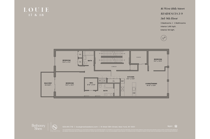 LOUIE 18 is a brand-new boutique condominium nestled in the heart of Ladies Mile Historic District, the symbol of Gilded Age architecture and New York City grandeur. Inspired by the notable loft style NYC buildings by a prominent architect Louis Korn, LOUIE 18 is the collaborative work of the strong team of New York City and European architects, interior designers, and marketing specialists. The building features a collection of 9 full floor residences available in 3-bedroom full-floor layouts and enhanced by direct elevator access and private outdoor spaces. Residents will enjoy the opulence of common spaces that include meticulously designed lobby, fitness room, spa, and a stunning rooftop with endless city views, lush planters, lounge chairs and grills.