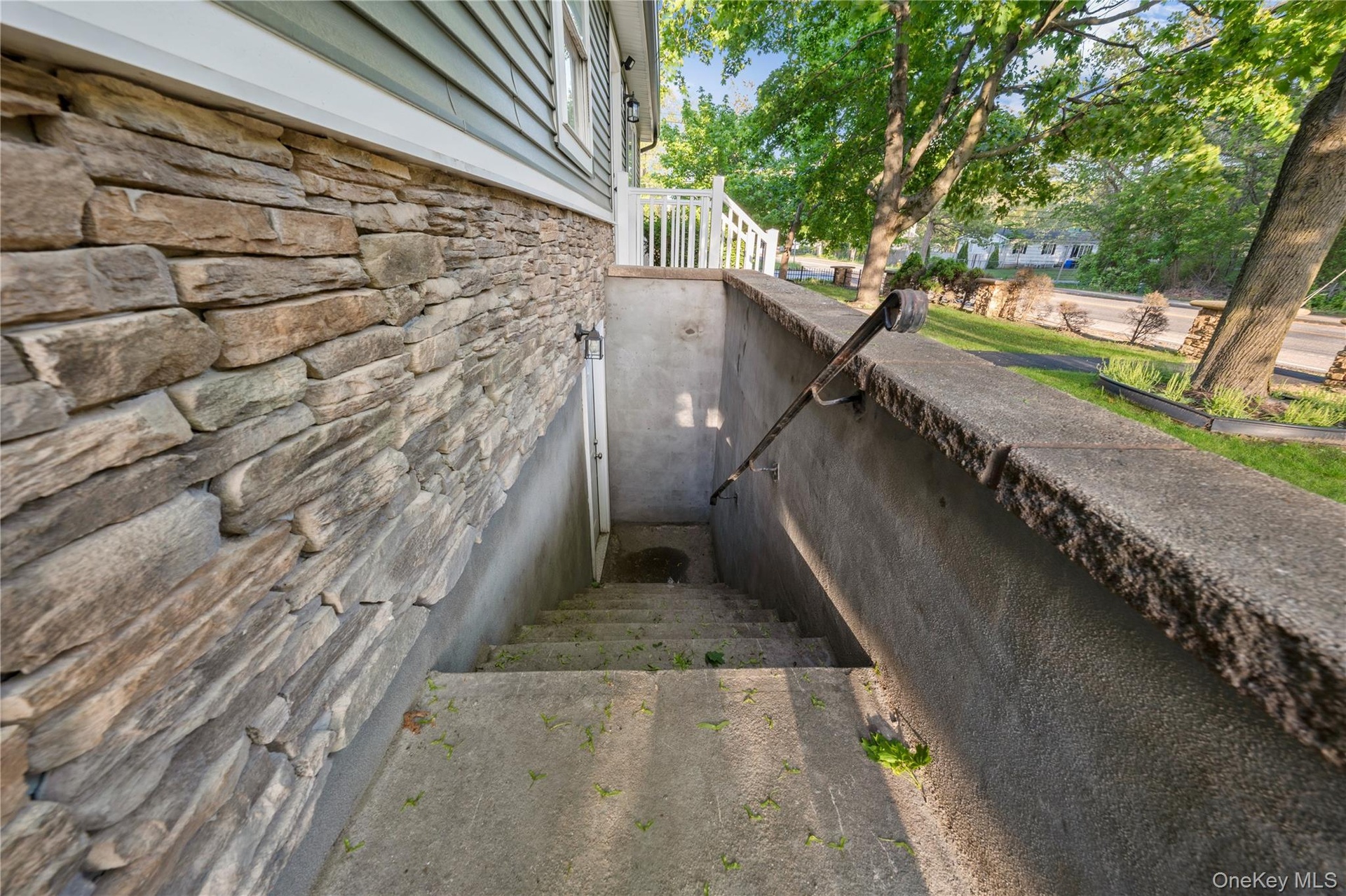 - Property entrance with stone siding