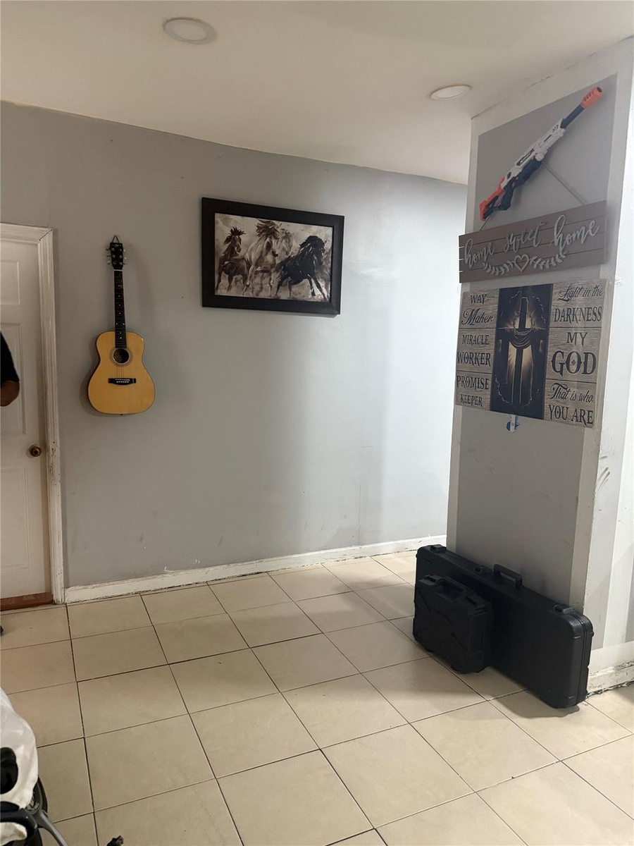 - Hall featuring tile patterned floors and baseboards