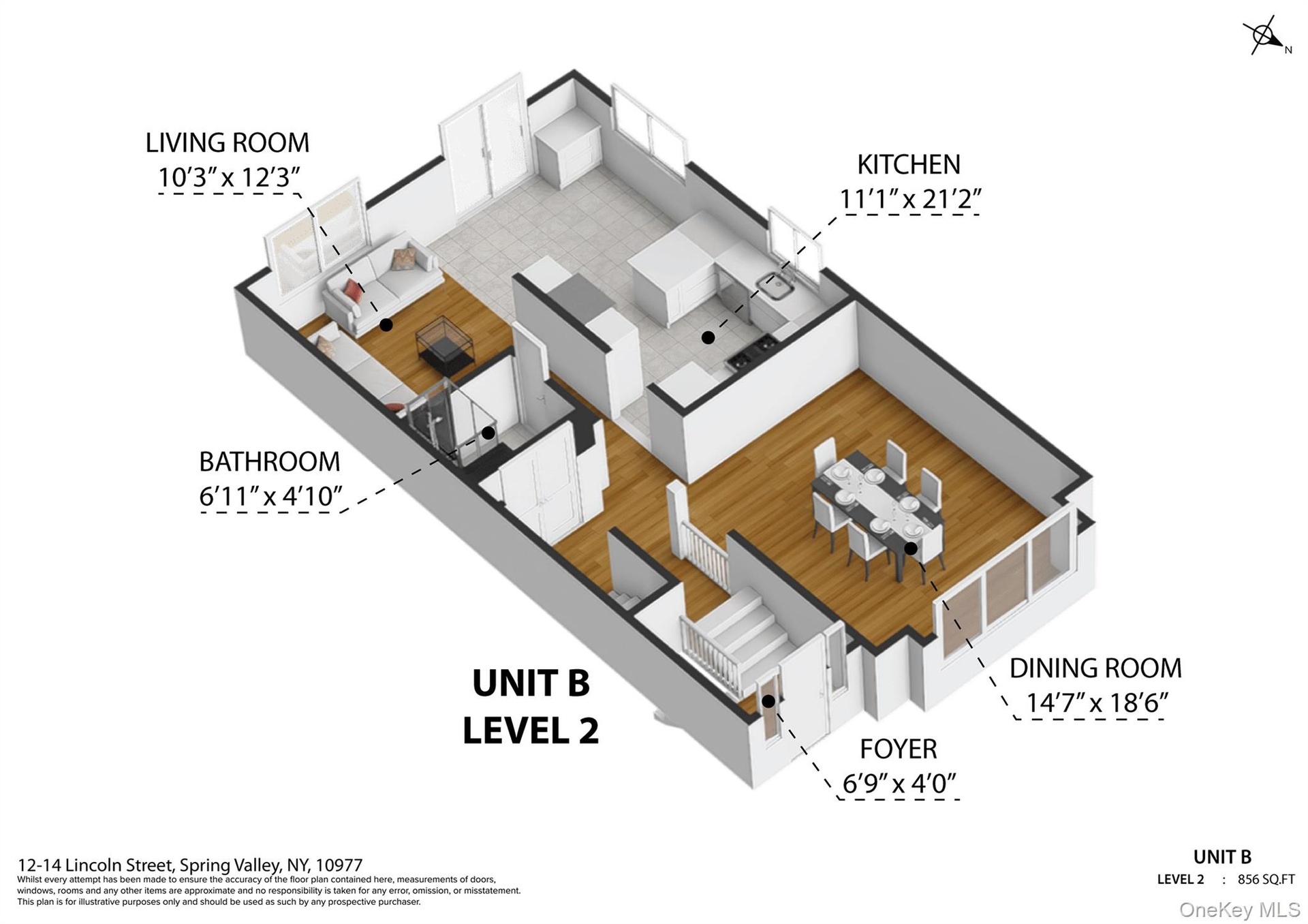 - Unit B, Level-2,Living room, light wood-style floors