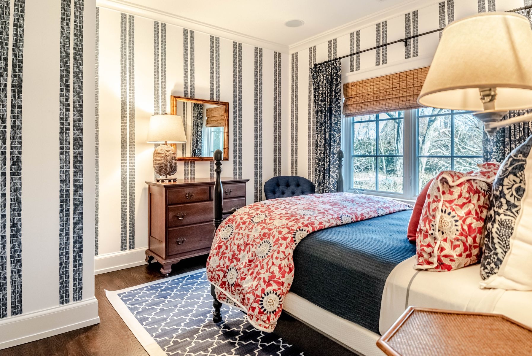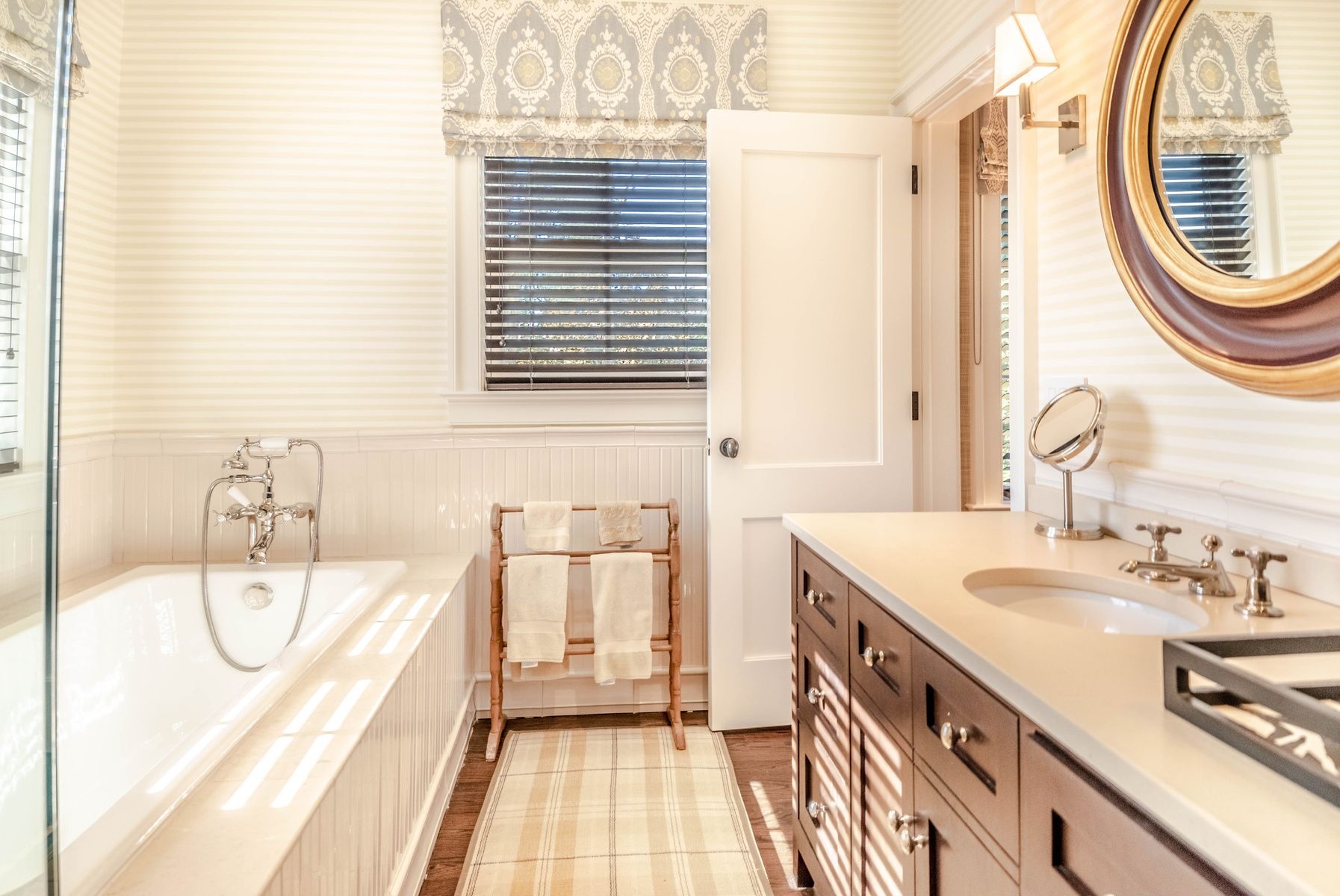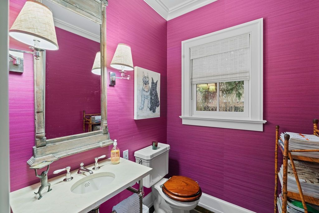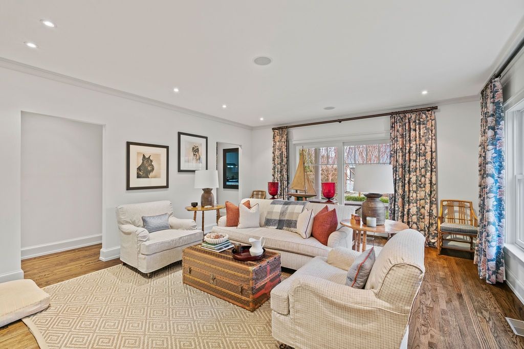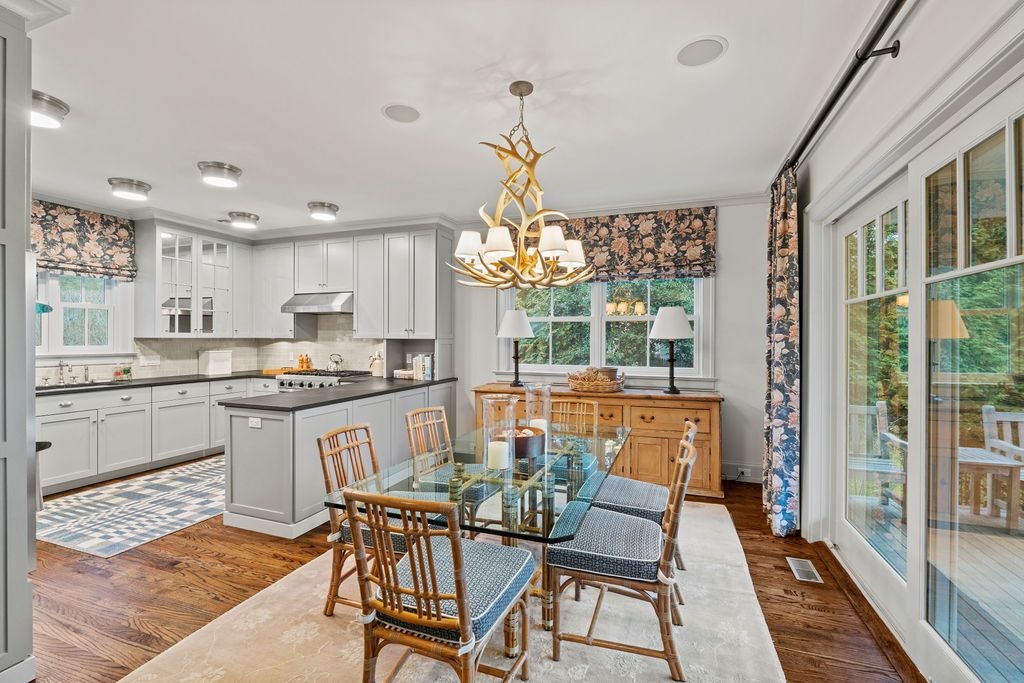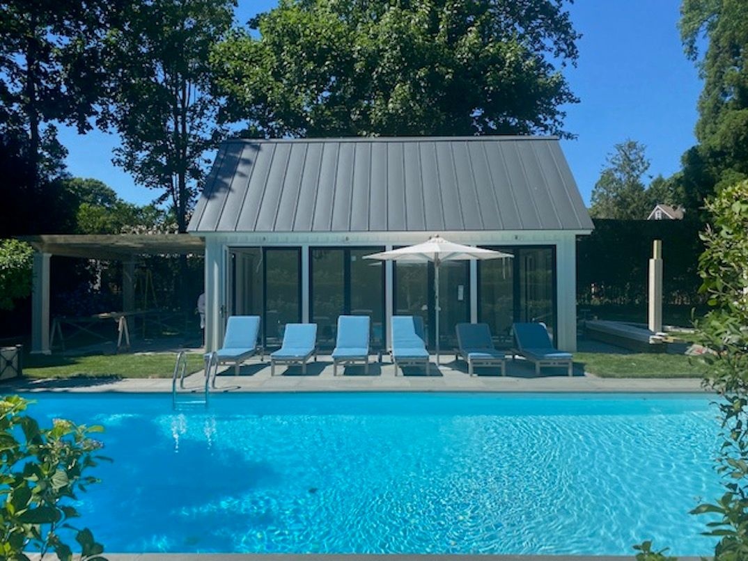 Impressive Bruce Nagel designed and professionally decorated Bridgehampton Village home with dramatic entry foyer with sweeping stairway, 2 master bedrooms overlooking the expansive rear yard and 2 guest bedrooms with an exquisitely outfitted bath, formal living room with fireplace, family room with flat screen TV and a professional kitchen with adjacent dining. Enjoy entertaining on the stone patio off of the formal living area or relax on the covered rear porch and pool all while enjoying the indoor/outdoor audio system. A newly added pool house and two pergolas round out this offering. Near to ocean beaches and village restaurants and shops!