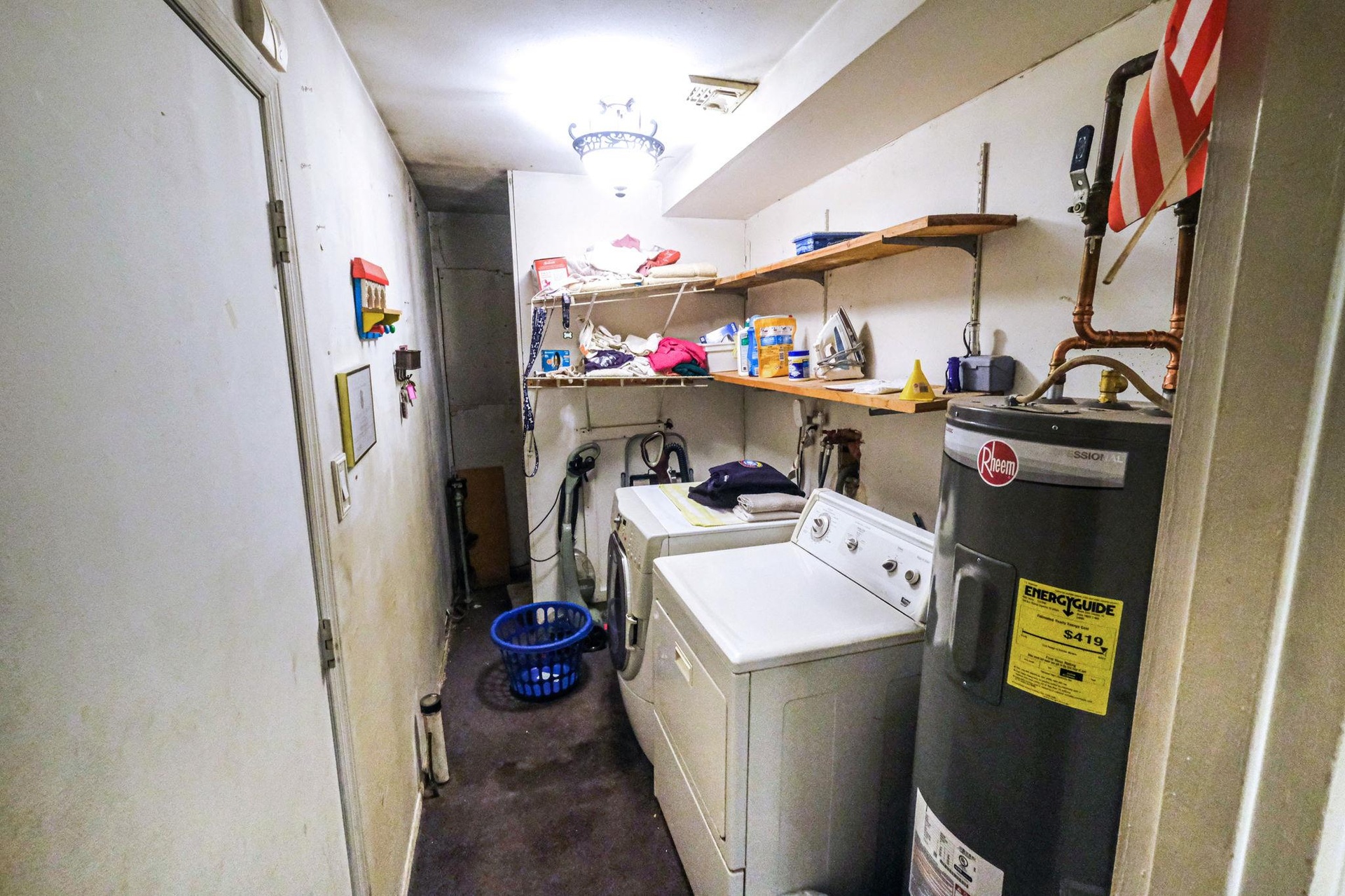 - Laundry area featuring water heater and washing machine and clothes dryer
