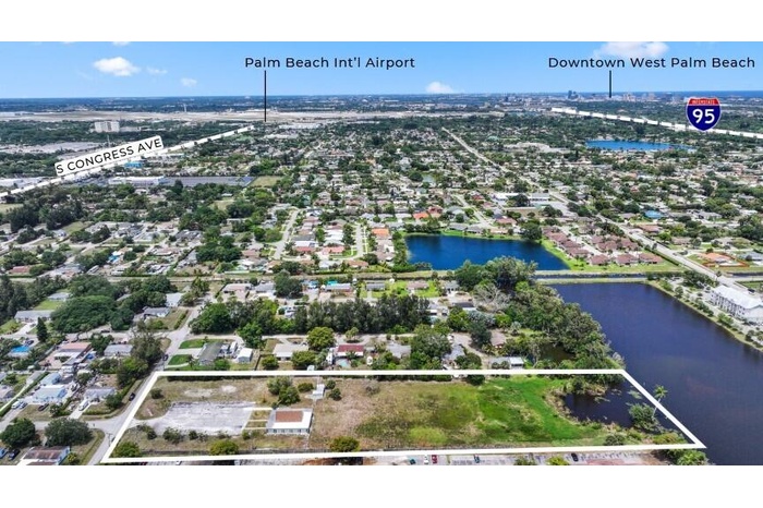 Rare opportunity to own a large 3.81-acre lakefront parcel of residential land in West Palm Beach, Florida at 1580 Prairie Rd, located just off Forest Hill Blvd and Congress Ave. Priced at $2,950,000 (approx. $77,4278an acre). I-95 is only 0.9 miles away, Palm Beach International Airport and vibrant Downtown West Palm Beach less than 5 miles away. Zoned Single Family Residential (unincorporated) with Current Use as Religious (2,880 SF Structure onsite). Electric, PBC public water and septic tank onsite. City sewer available along Prairie Rd for potential hookup. Just minutes from major grocery stores, Walmart, Hospitals, top-rated golf courses, and more! Belvedere AADT 47,500 for 2024. See Documents Tab for Survey and Permitted Uses.