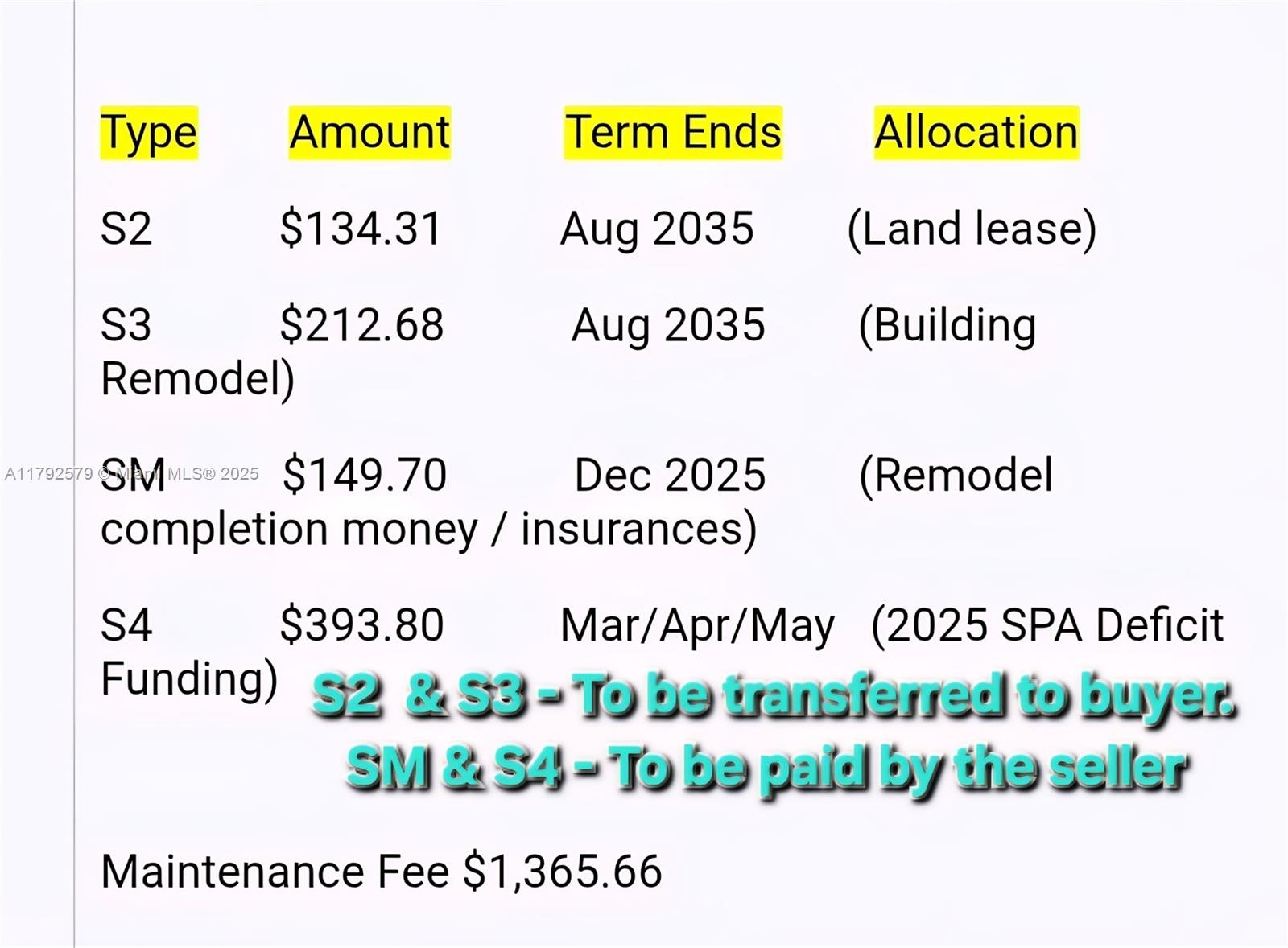 Common charges:$1,365