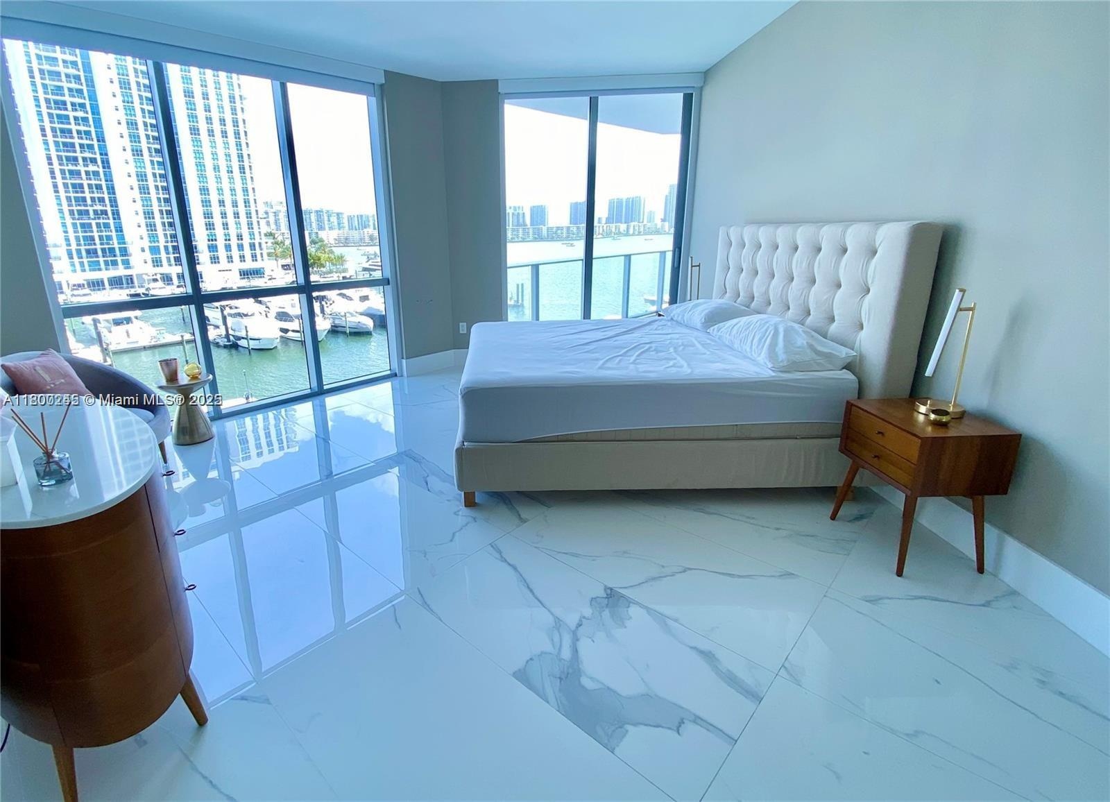 Luxury 2bed/2bath in the prestigious Marina Palms. Modern & bright Fully furnished apartment with Absolutely breathtaking views overlooking the bay and marina! Experience luxury living in this professionally decorated unit! Built in closets. Amenities include a fully guarded complex, high class gym, yoga/Pilates room, waterfront pool, children's playrooms, a business lounge, sauna and steam rooms, a club room, and a dog park. One assigned parking spot, valet parking, and storage included. Marina access on premises. Located just minutes from Aventura Mall, fine dining and Sunny Isles. Most see!