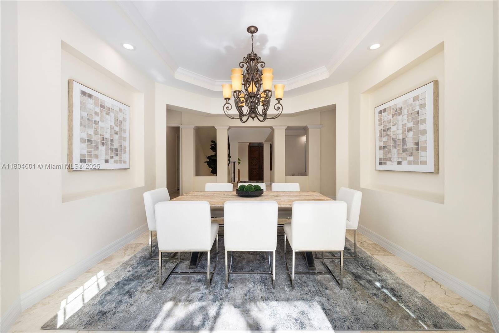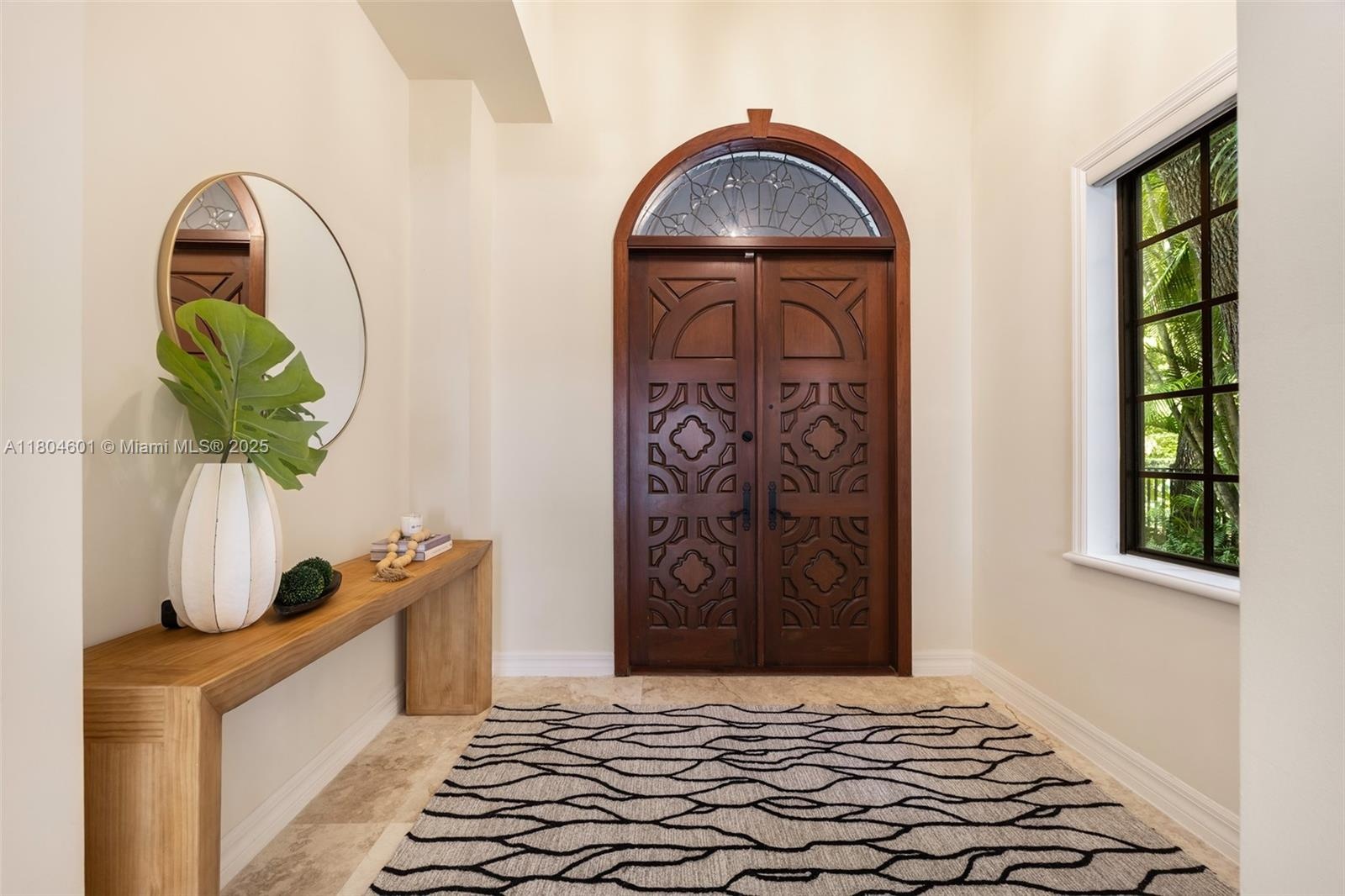 Stunning 5BD/4.5BA residence in the coveted Platinum Triangle, ideal for families & zoned for top-rated Sunset Elementary. This elegant home offers 4,188 SF of total living space on a beautiful tree-lined lot. Spacious layout with formal & informal living areas, volume ceilings, large kitchen with bar seating, and French doors leading to the sparkling pool and patio. The expansive primary suite features dual walk-in closets and a spa-like bathroom. All bedrooms have en-suite baths for comfort & privacy. Separate glass-enclosed office/den. Hardwood & marble floors, impact windows/doors, and central A/C offer style and peace of mind. Landscaped outdoor areas are ideal for relaxing or entertaining. Ample parking plus 2-car garage. Prime location near parks, schools, dining & shopping.