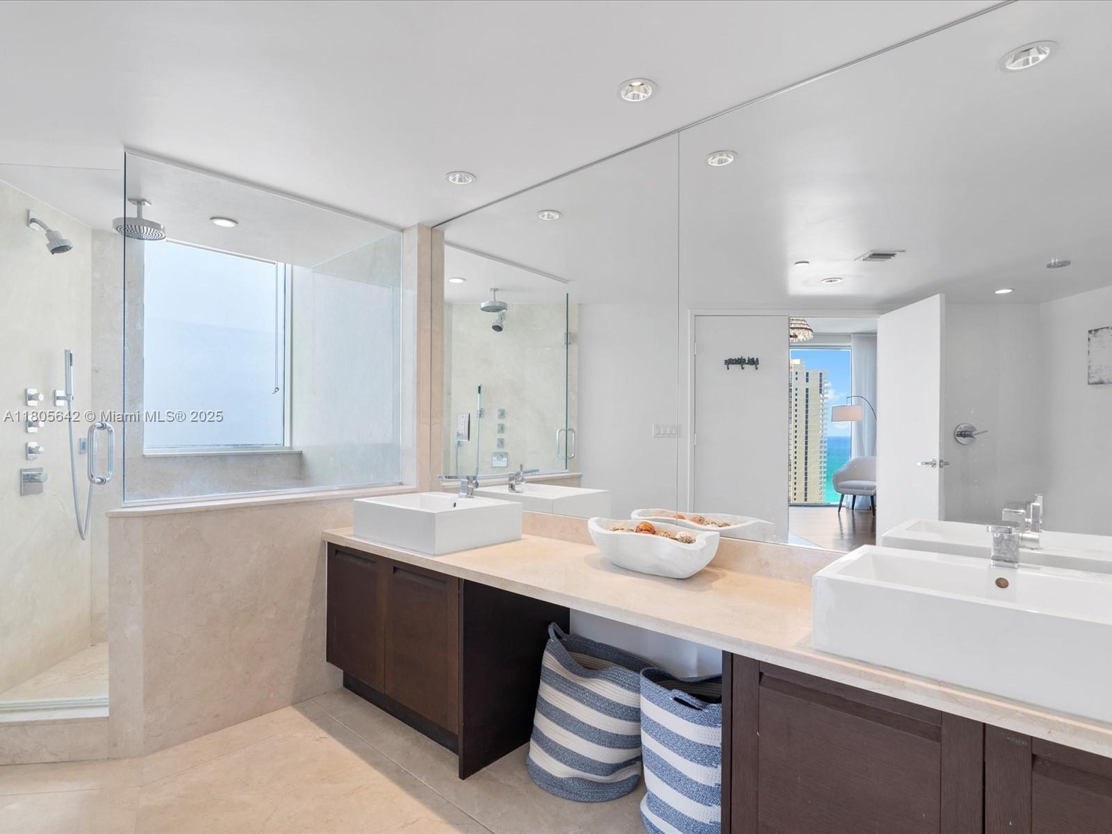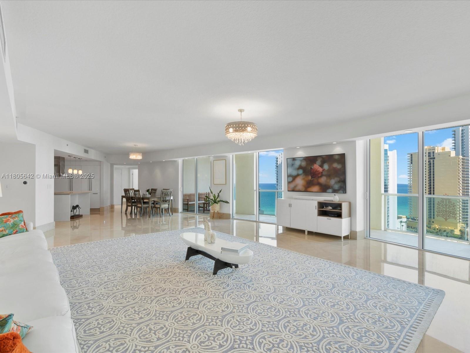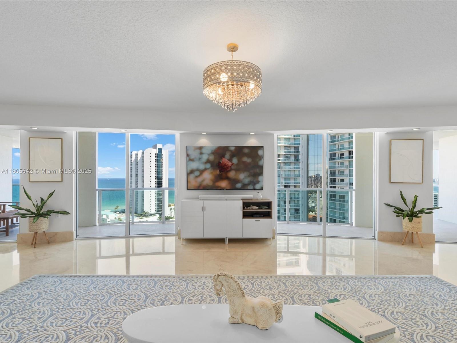 Coastal modernism welcomes you to this luminous penthouse spanning nearly 50 feet of direct ocean and Intracoastal frontage, culminating in a 600 sq ft sky-framed terrace. Every room is a portrait of water and light. The 1,500 sq ft great room flows between dual master suites—each a private sanctuary with spa-like en-suites. Marble and wood floors, bespoke millwork, motorized shades, and a European kitchen anchored by SubZero appliances complete this elevated living experience.