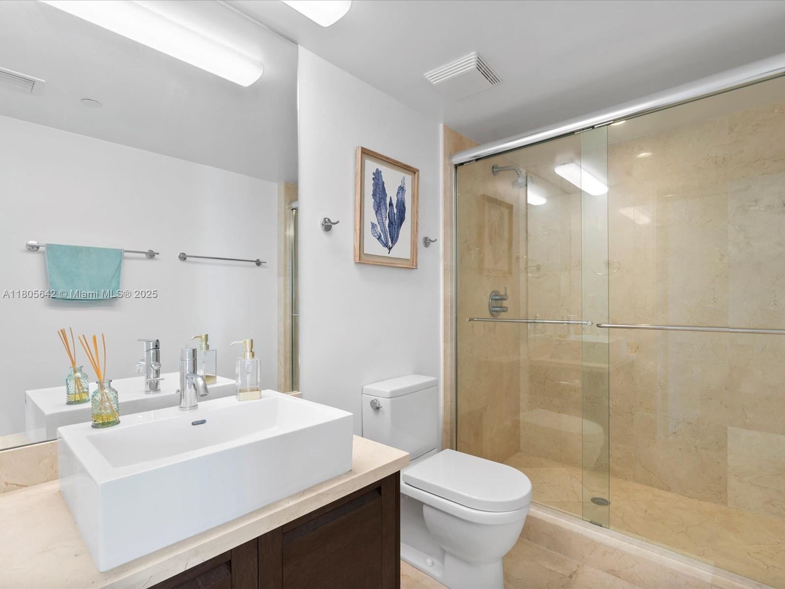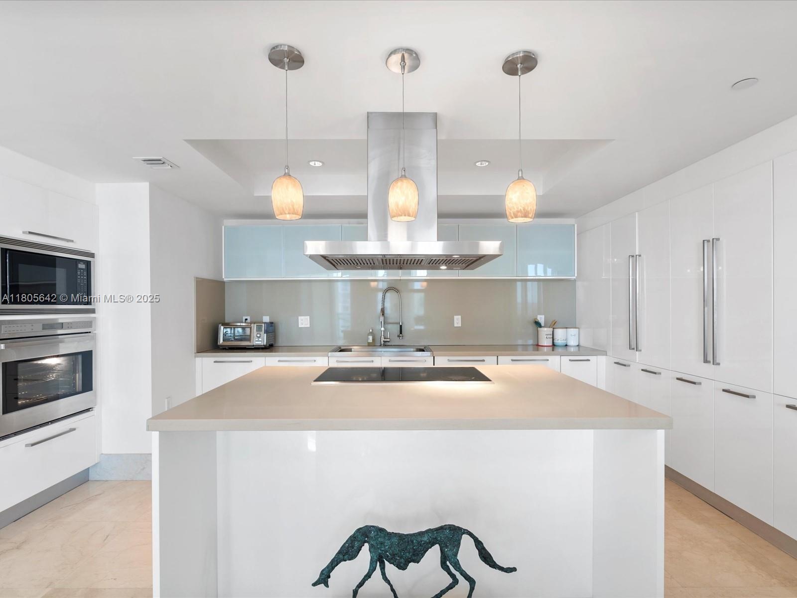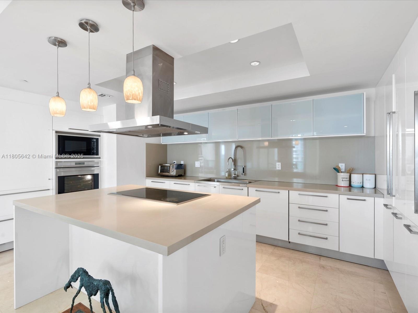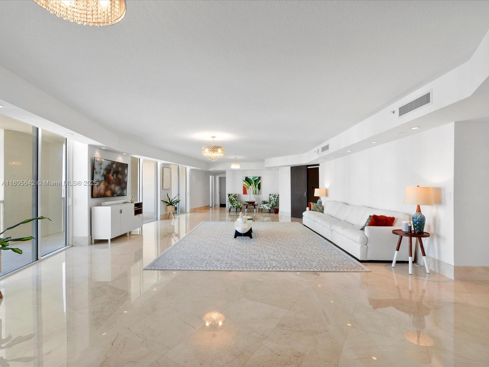 Coastal modernism welcomes you to this luminous penthouse spanning nearly 50 feet of direct ocean and Intracoastal frontage, culminating in a 600 sq ft sky-framed terrace. Every room is a portrait of water and light. The 1,500 sq ft great room flows between dual master suites—each a private sanctuary with spa-like en-suites. Marble and wood floors, bespoke millwork, motorized shades, and a European kitchen anchored by SubZero appliances complete this elevated living experience.