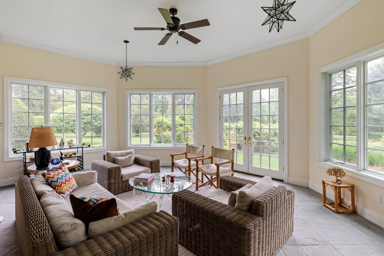 Outside, resort-style amenities await: a heated swimming pool, Har-Tru tennis court, and extensive gardens designed for both beauty and seclusion. A three-bay attached garage provides ample space and convenience. Buttonball Hill is a rare offering—an impeccably maintained estate where historic grace meets modern comfort, ideal for today’s discerning buyer seeking space, privacy, and a home built for elegant living and memorable entertaining. Nestled in a prime location, this property offers unbeatable convenience—just moments from top-rated schools, vibrant town amenities, and easy access to the train for effortless commuting.