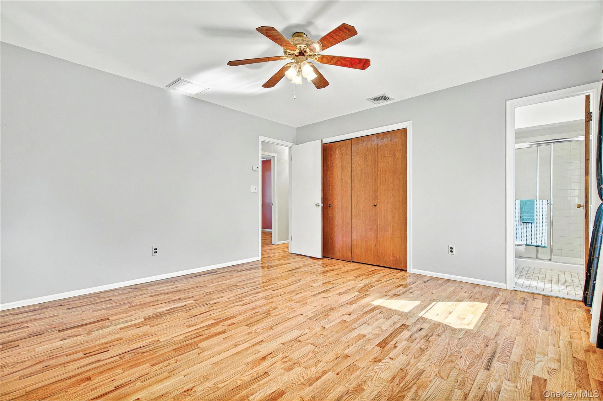 Down the hall, you’ll find a full bathroom with a soaking tub, a primary bedroom with its own ensuite bath and walk-in shower, plus two additional bedrooms.
