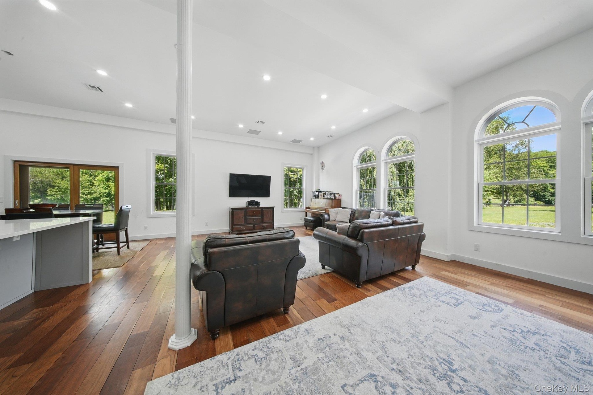 - Living room with healthy amount of natural light, hardwood / wood-style flooring, recessed lighting, and baseboards