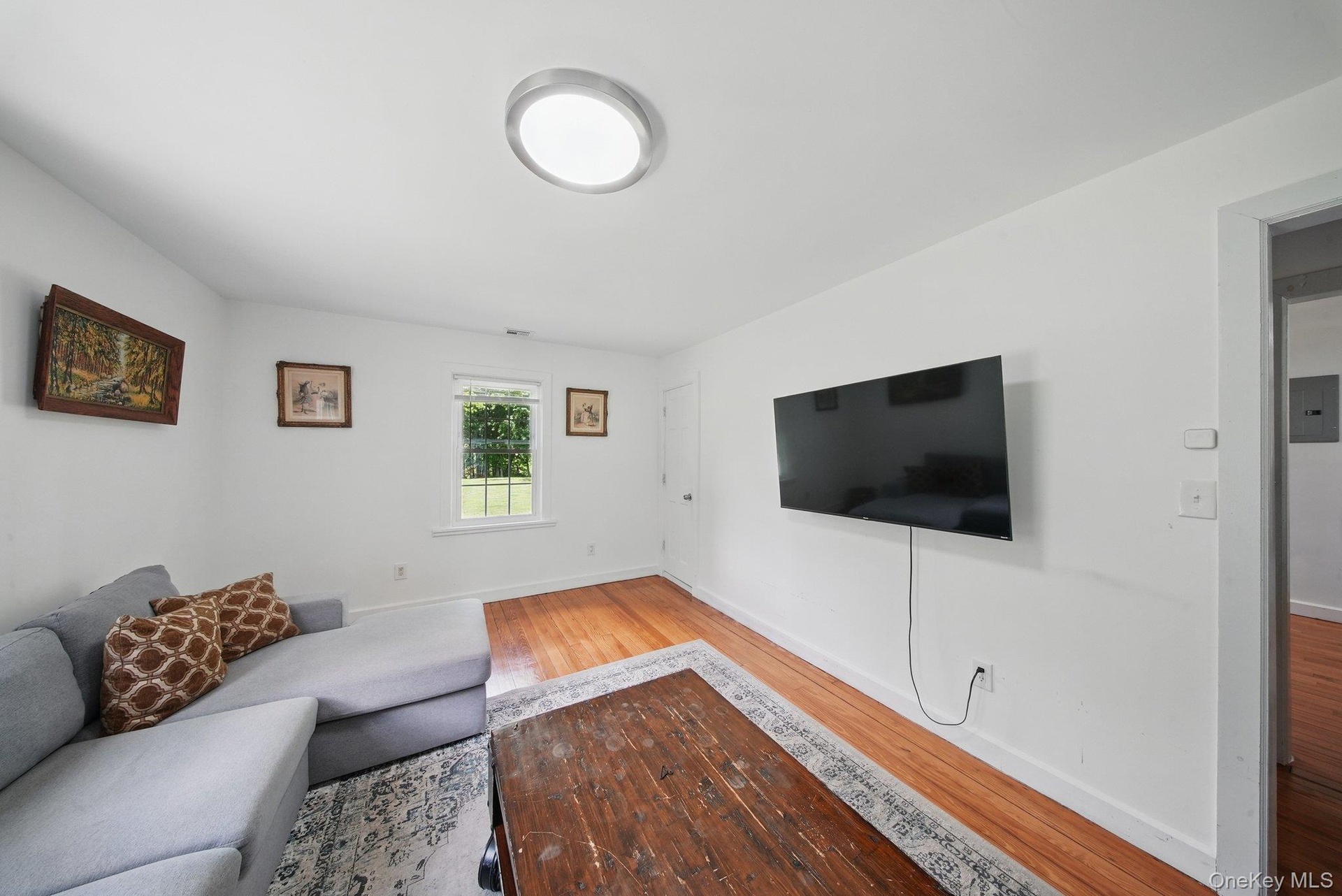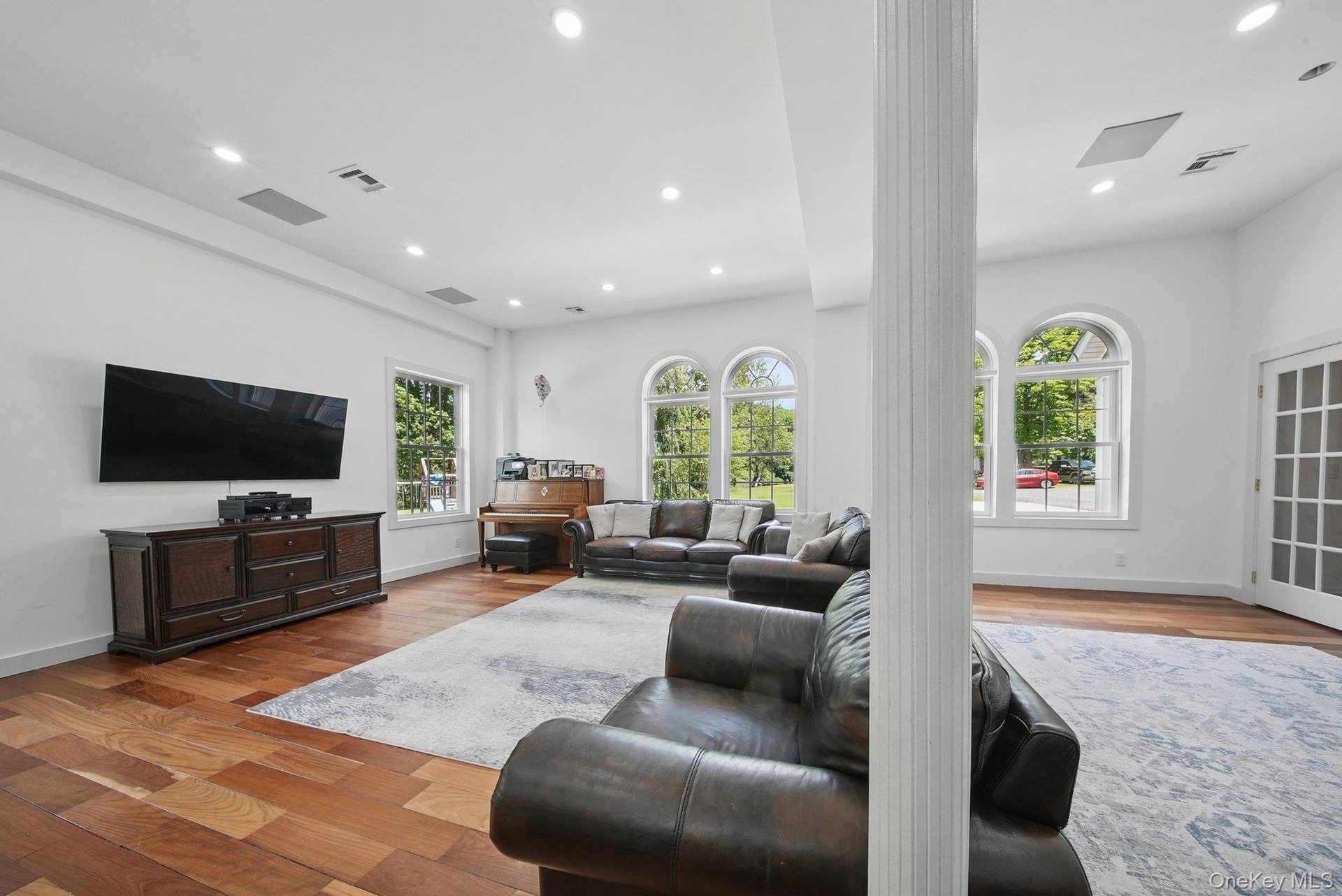 - Living area with wood finished floors, recessed lighting, and baseboards