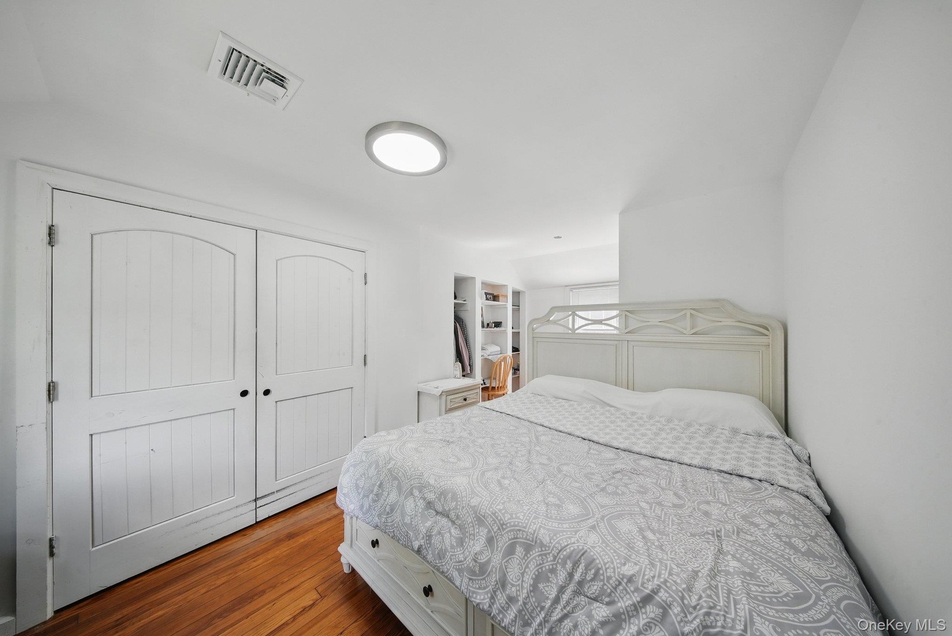 - Bedroom with wood finished floors, recessed lighting, and baseboards