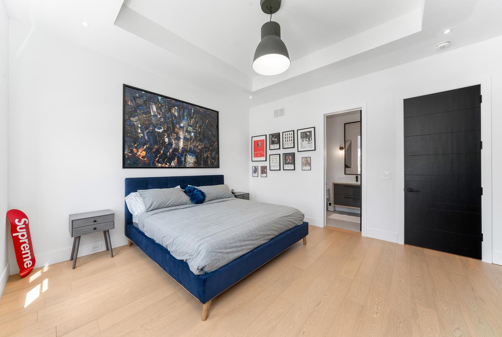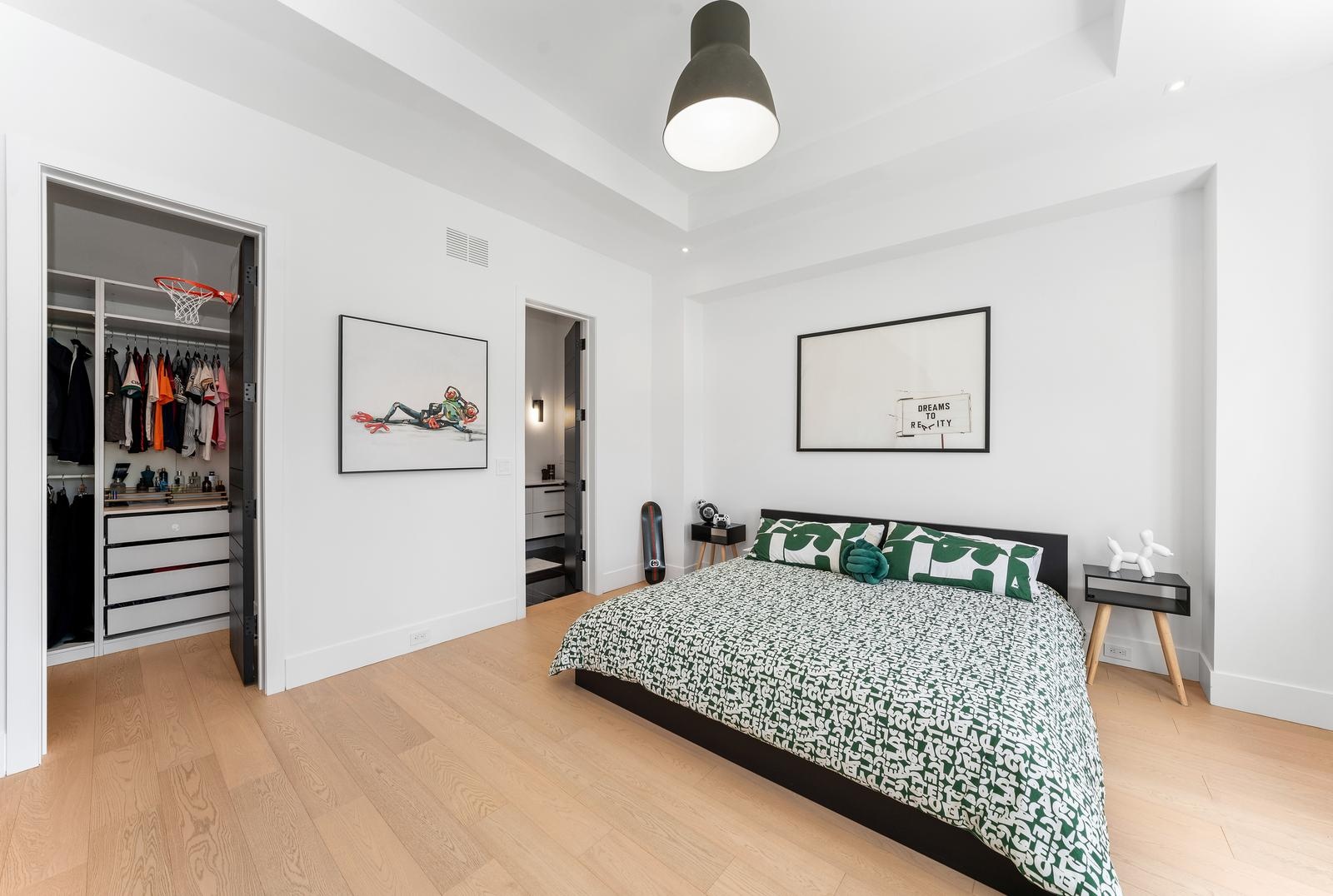 The show-stopping primary suite offers a penthouse-style retreat complete with a cozy gas fireplace, a mini bar, a lavish spa-inspired ensuite, and a jaw-dropping two-storey wardrobe closet fit for a fashion connoisseur.