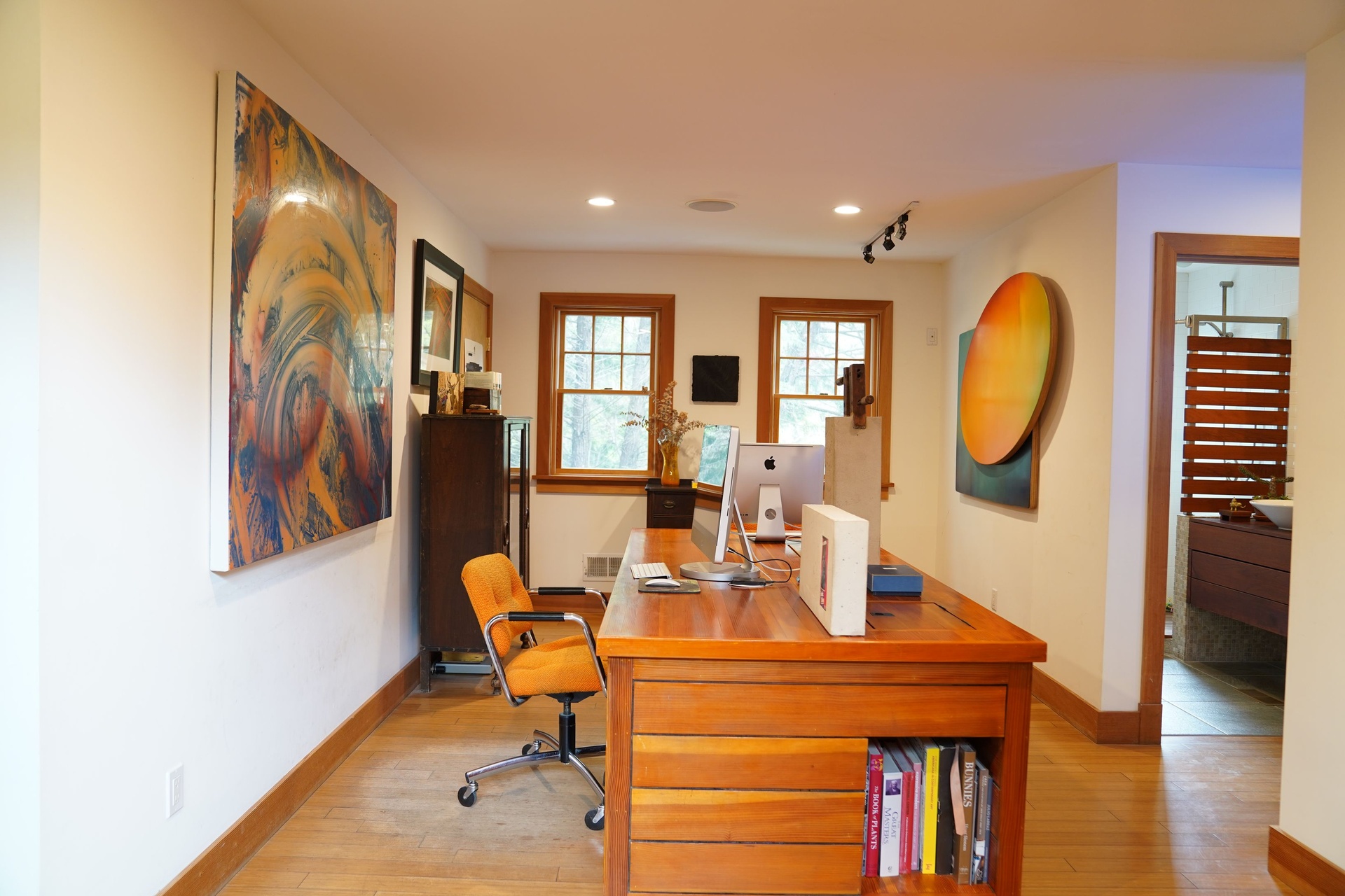 From the moment you enter, you know you’ve arrived somewhere extraordinary. A sun-drenched gallery entry sets the tone, showcasing the owner's curated art collection. The open-concept main living space features a custom kitchen with breakfast bar seating, a formal dining area, and a spacious living room with fireplace—perfect for both quiet moments and effortless entertaining.