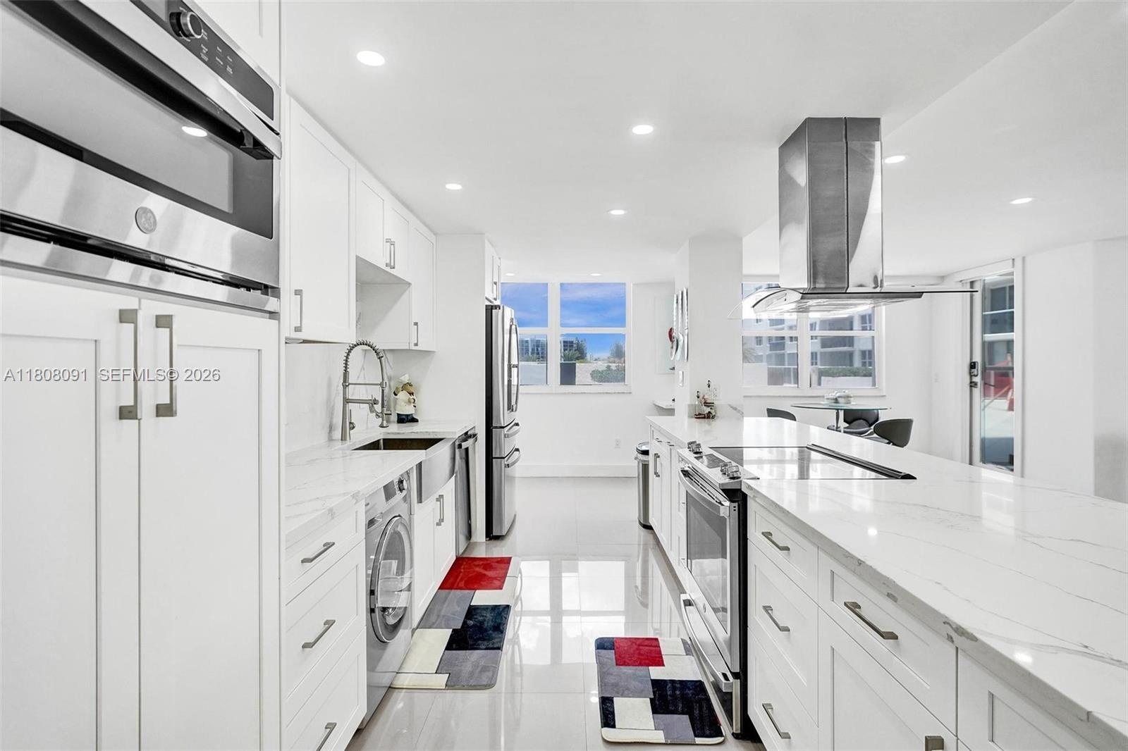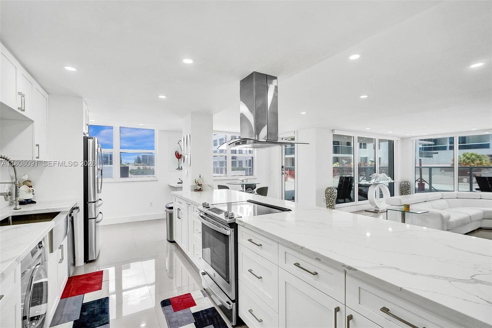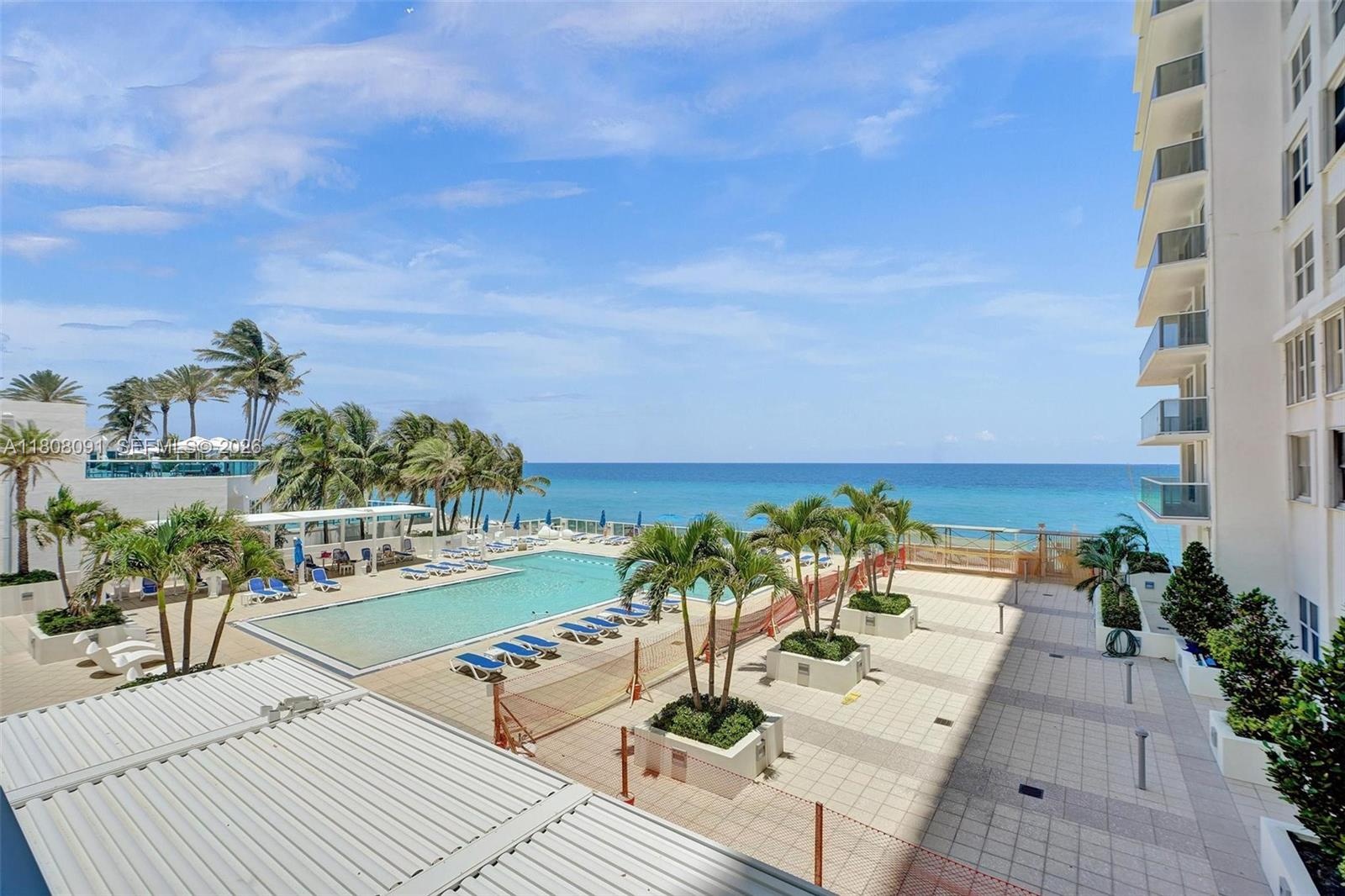 The BEST VALUE ON HOLLYWOOD BEACH. Rare walk-out lanai residence at Aquarius. This fully remodelled Beach-Villa 2-bed, 2-bath corner unit offers 1,768 sq ft of effortless indoor-outdoor living with direct access to the sunset pool deck and gym, no elevators, just step outside barefoot and enjoy the resort lifestyle. Designed for a lock-and-leave second home, the open-concept layout flows seamlessly from the living area to a semi-private lanai, perfect for relaxing or entertaining. Northwest exposure fills the home with afternoon sun and glowing sunsets. Features include a custom kitchen, white porcelain floors throughout, floor-to-ceiling windows with motorized zebra blinds, and a spacious primary suite with two walk-in closets and a spa-style bath featuring a glass shower and freestanding tub. Offered fully furnished with modern furniture. Assessments paid in full. Garage parking included. Aquarius amenities include two pools, an oceanfront BBQ area, an on-site restaurant, a fitness center, valet, and 24/7 security. Vacant and easy to show, this walk-out layout is a rare opportunity. Seller is ready to entertain your offer.